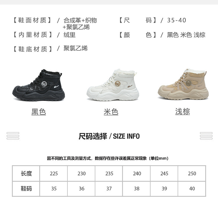 Warrior shoes with plush snow boots for women, new popular winter thick soled casual sports warm cotton shoes for women, Z