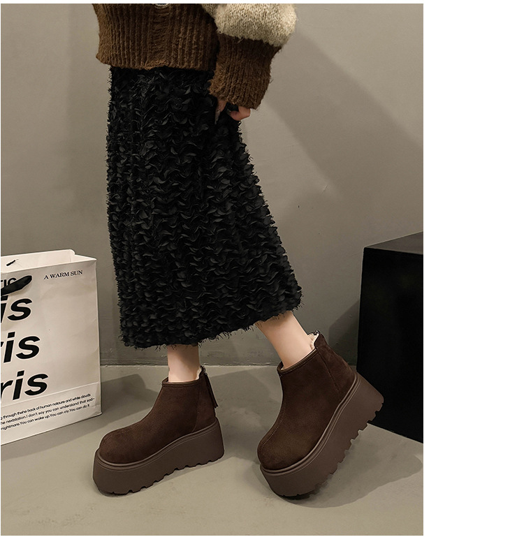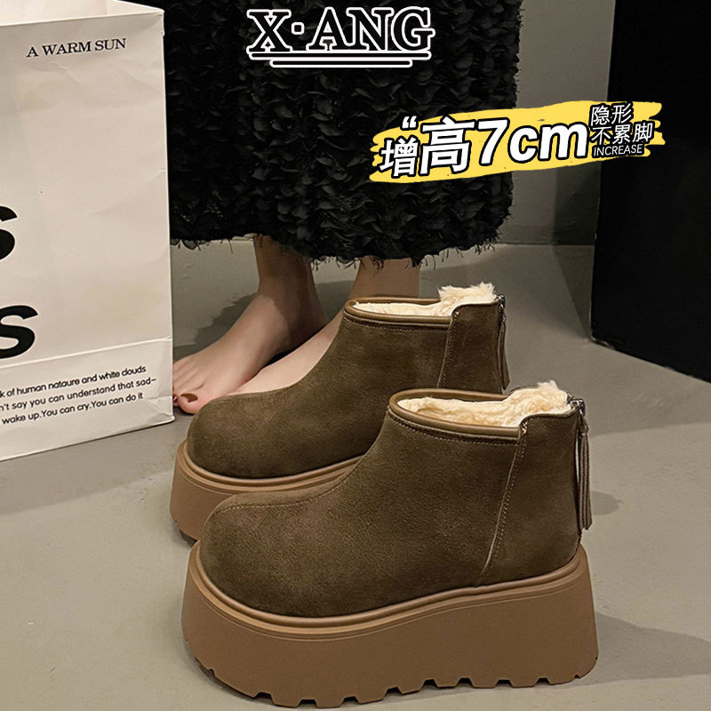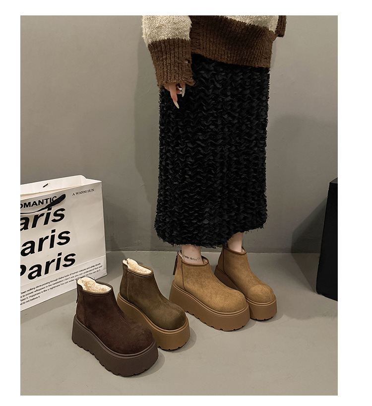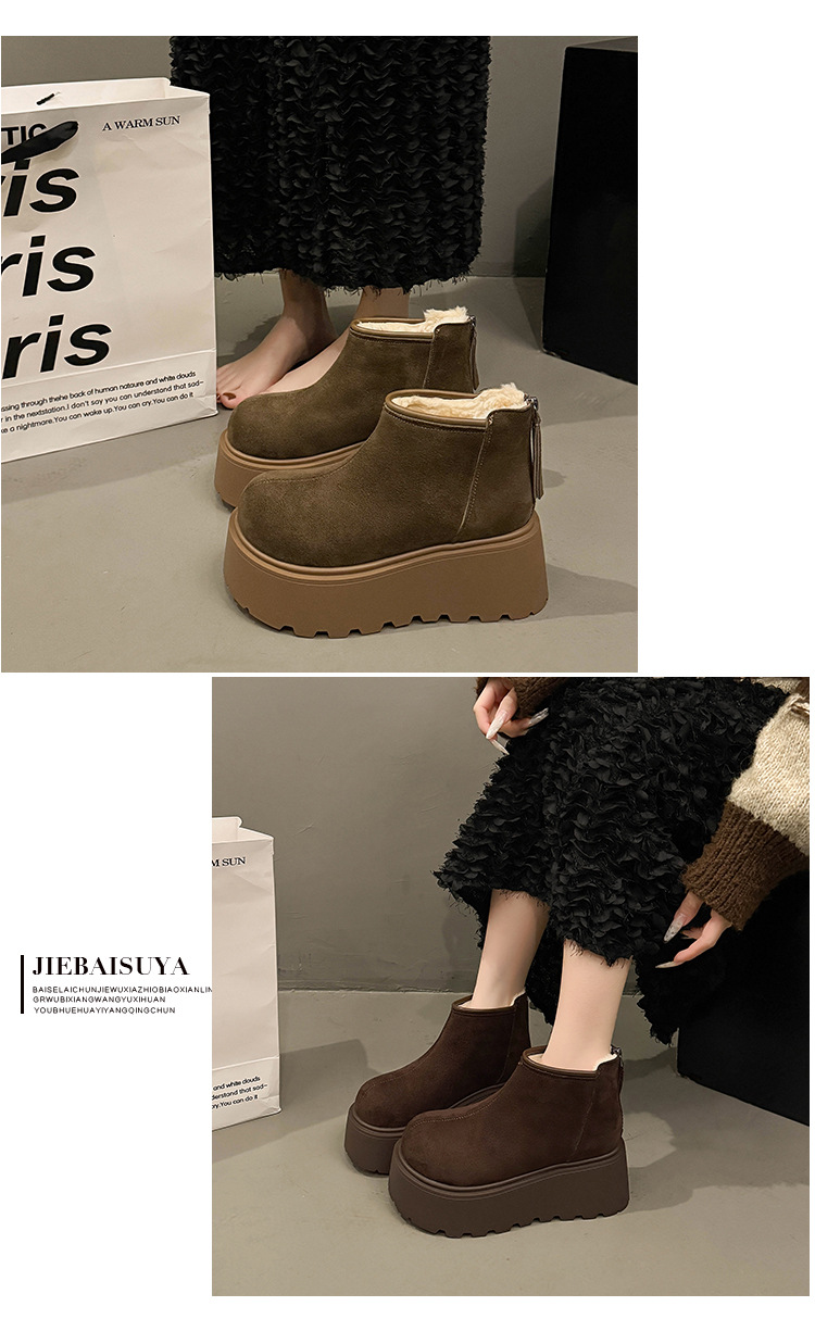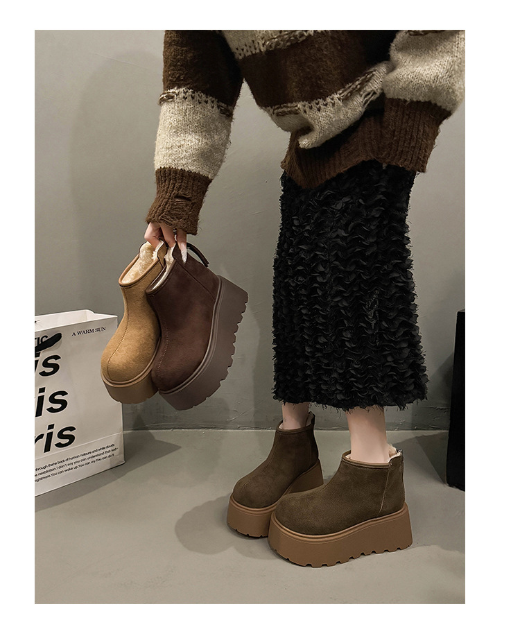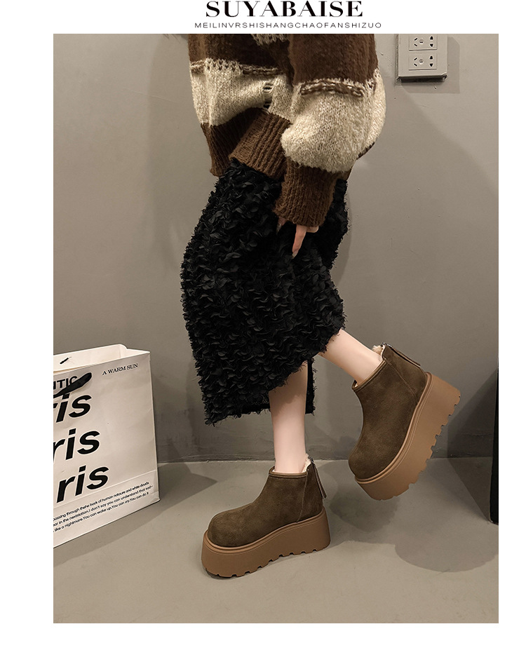Cowhide and wool snow boots for women, thickened and warm Northeast cotton shoes with thick sole and increased height, Martin boots, Boken short boots