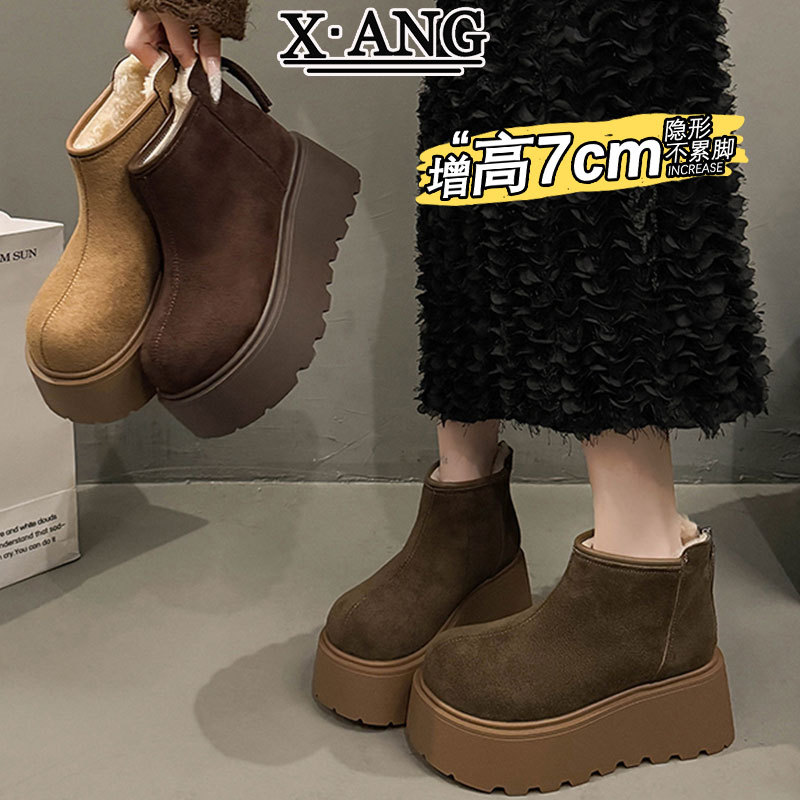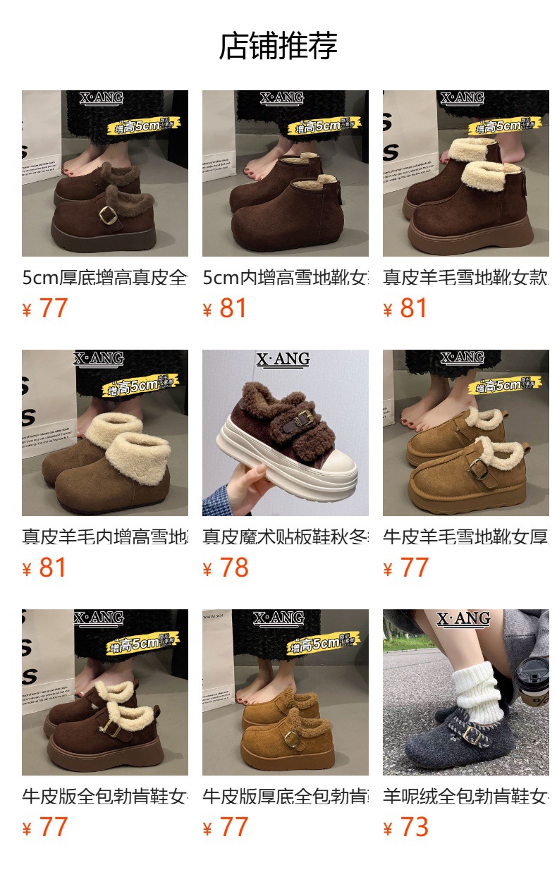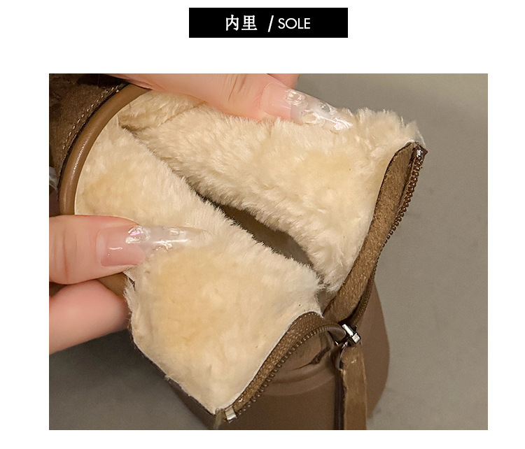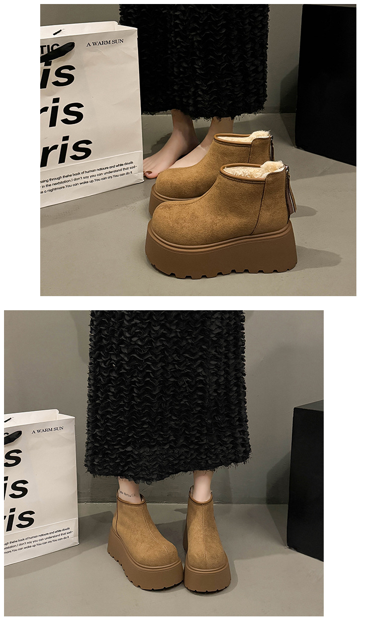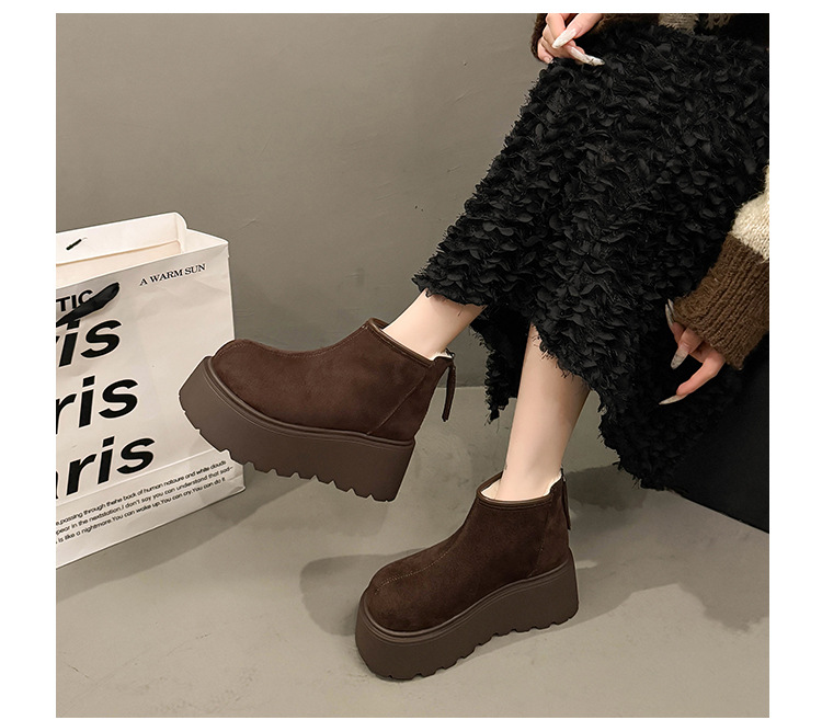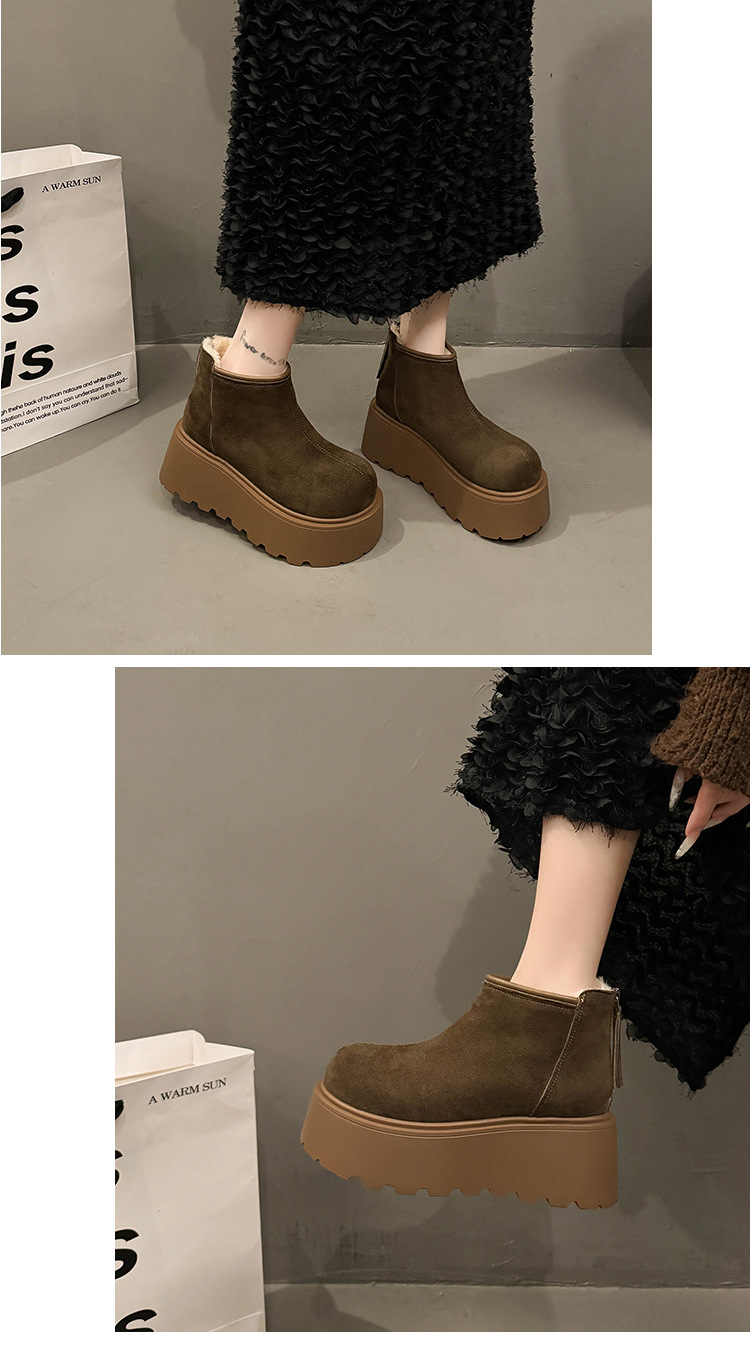 Cowhide and wool snow boots for women, thickened and warm Northeast cotton shoes with thick sole and increased height, Martin boots, Boken short boots