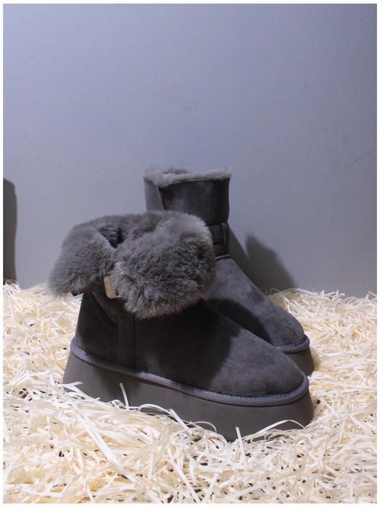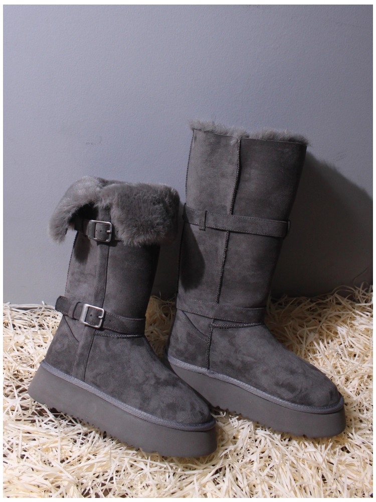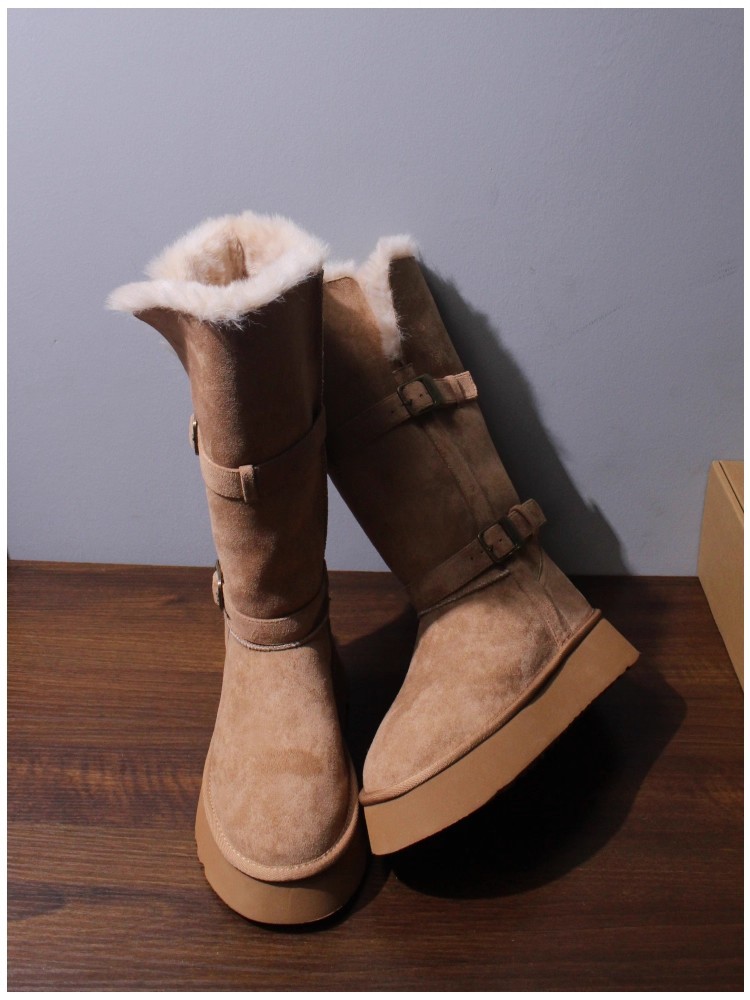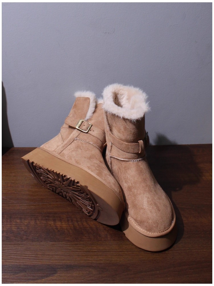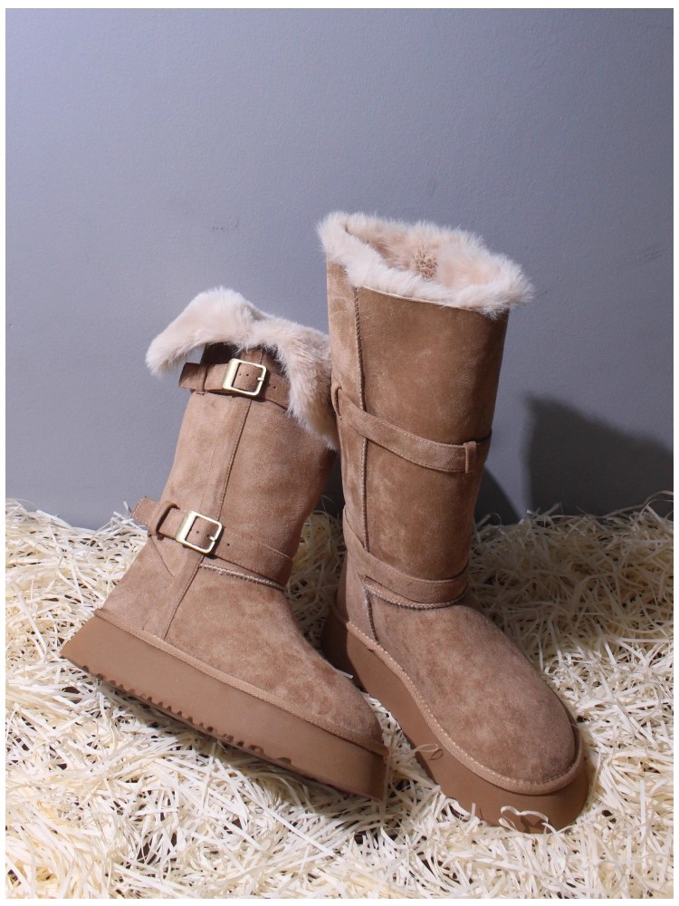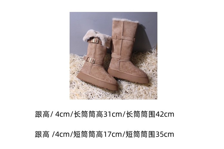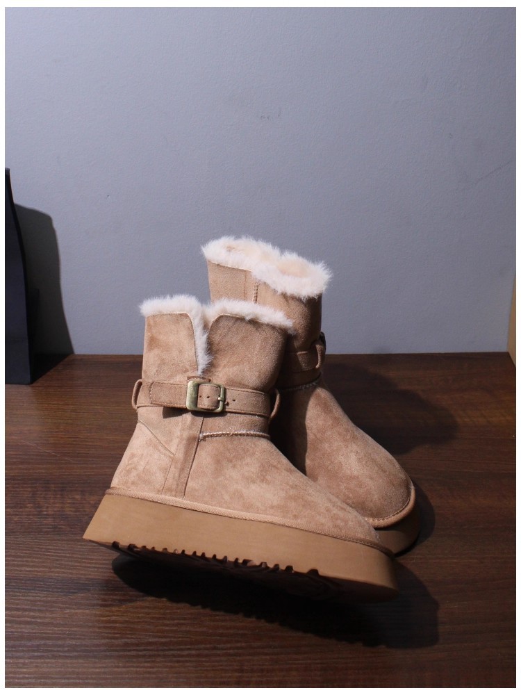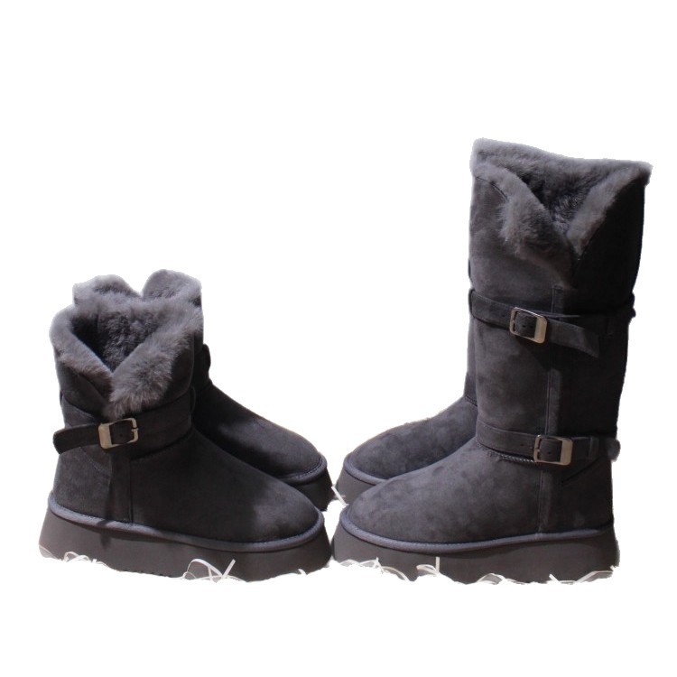 Sangpo genuine leather wool integrated snow boots for women, thick soled anti slip and plush thickened warm Northeast cotton shoes, mid length boots