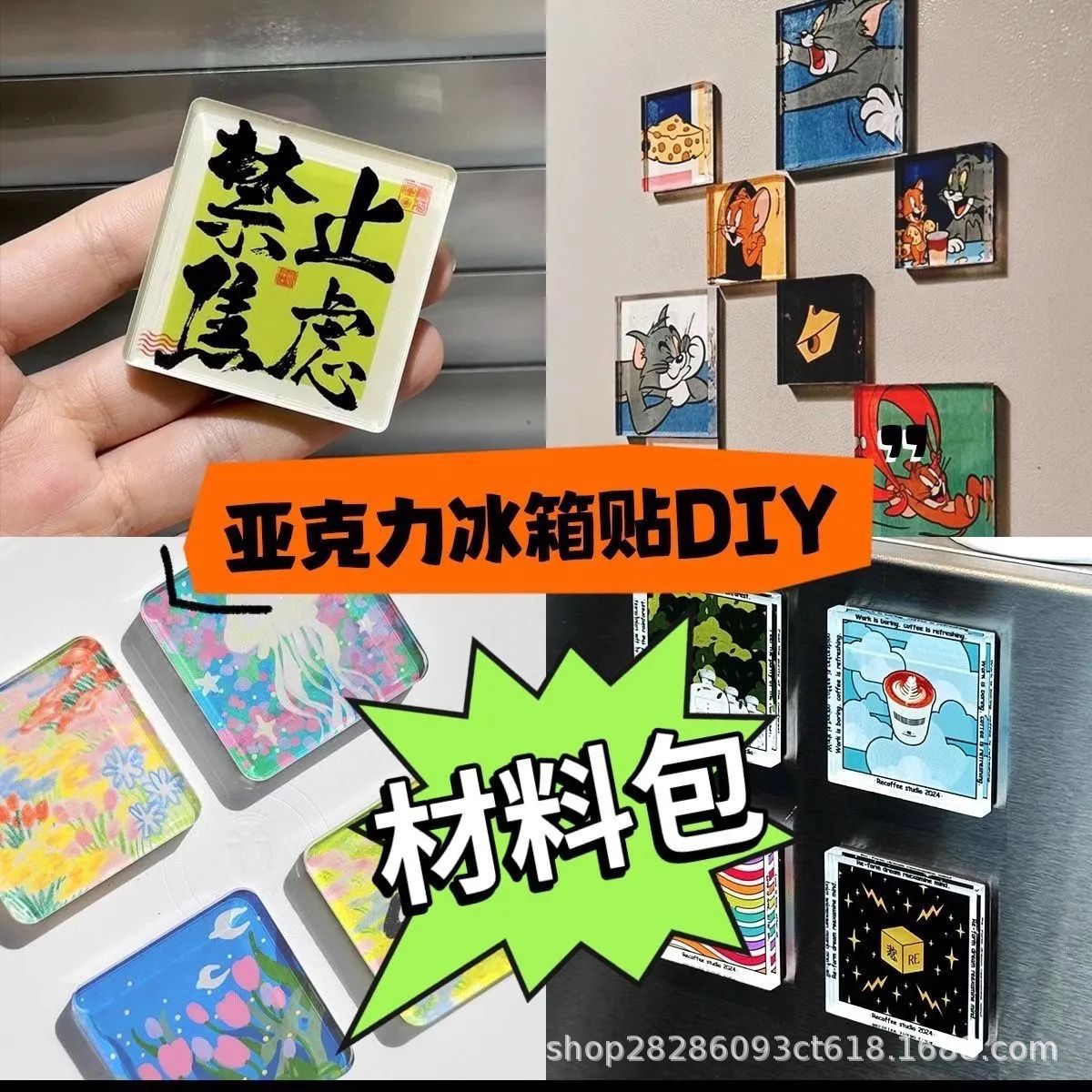 Homemade handmade refrigerator with transparent ins square tape, magnetic sheet, high transparency acrylic DIY material package, high aesthetic value