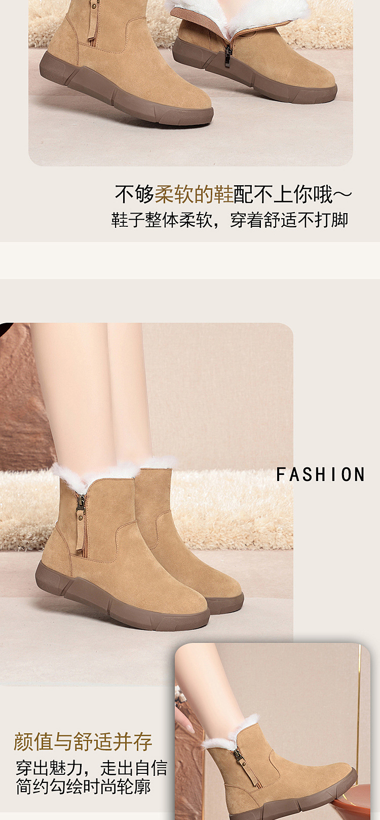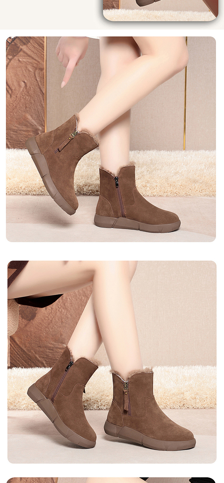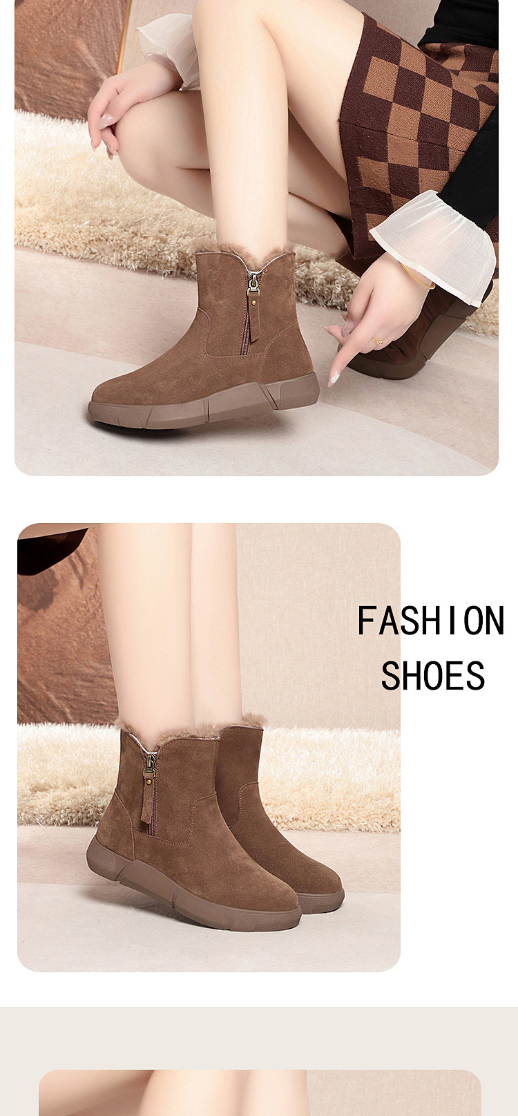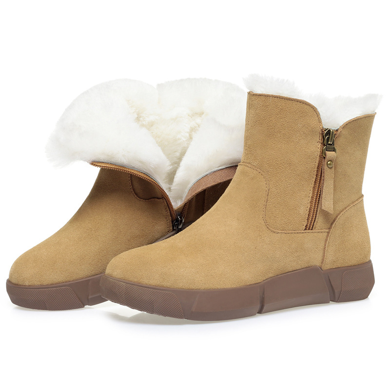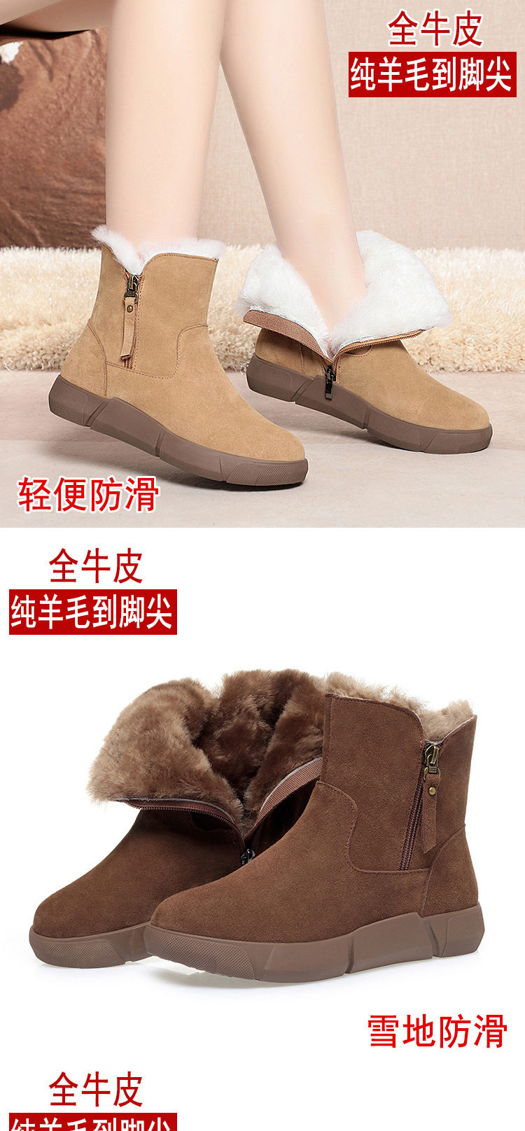 Genuine leather snow boots, winter boots with fur and plush, thick cotton shoes, cowhide thick sole, anti slip wool integrated short boots for women