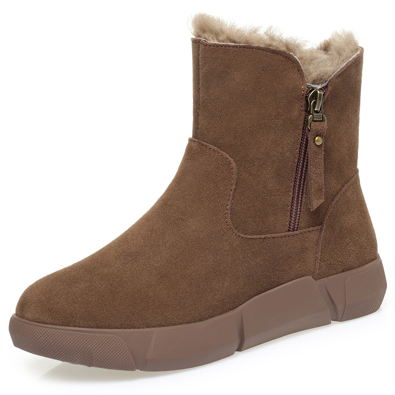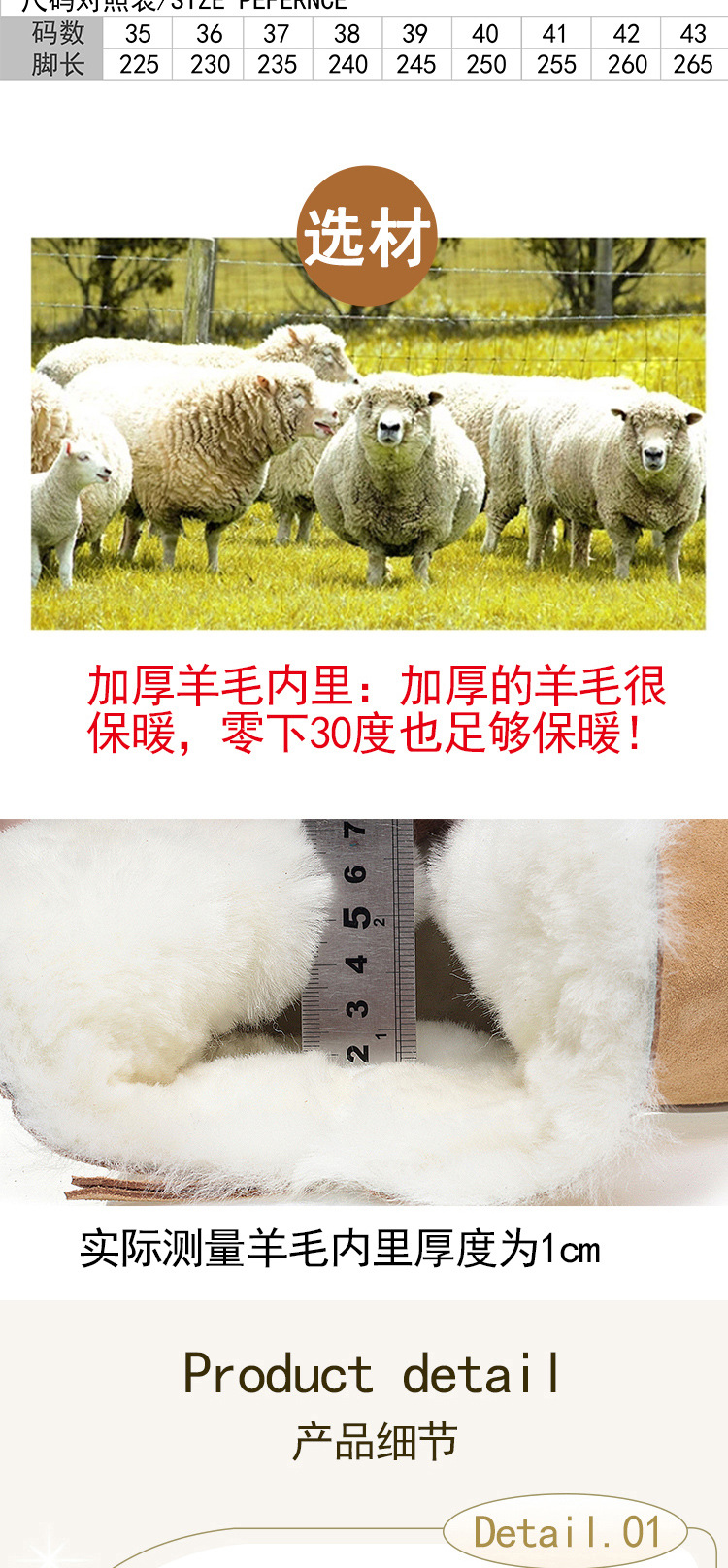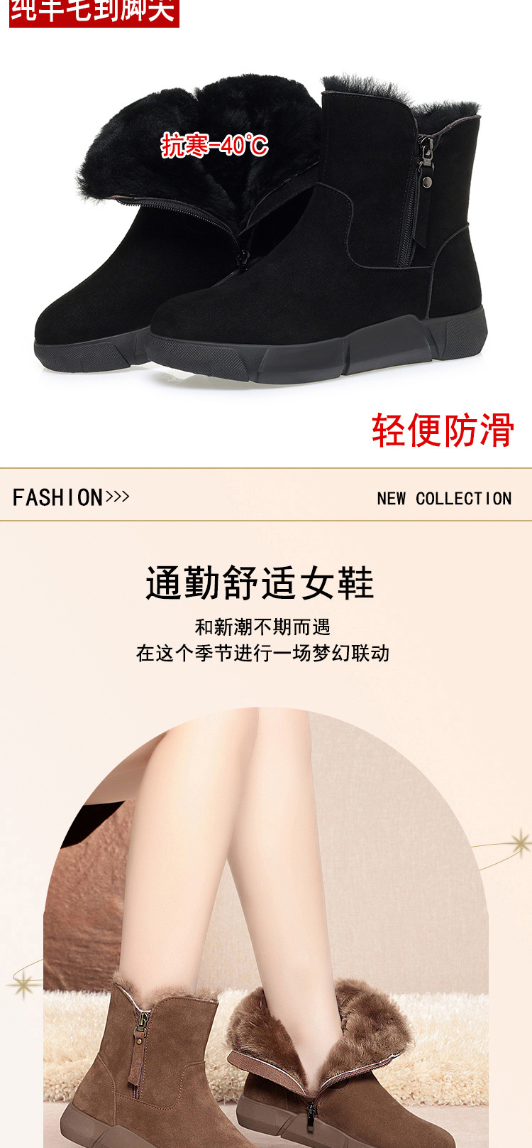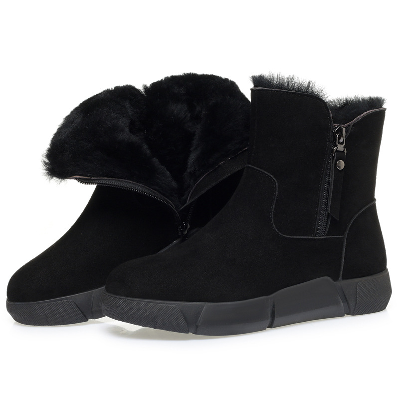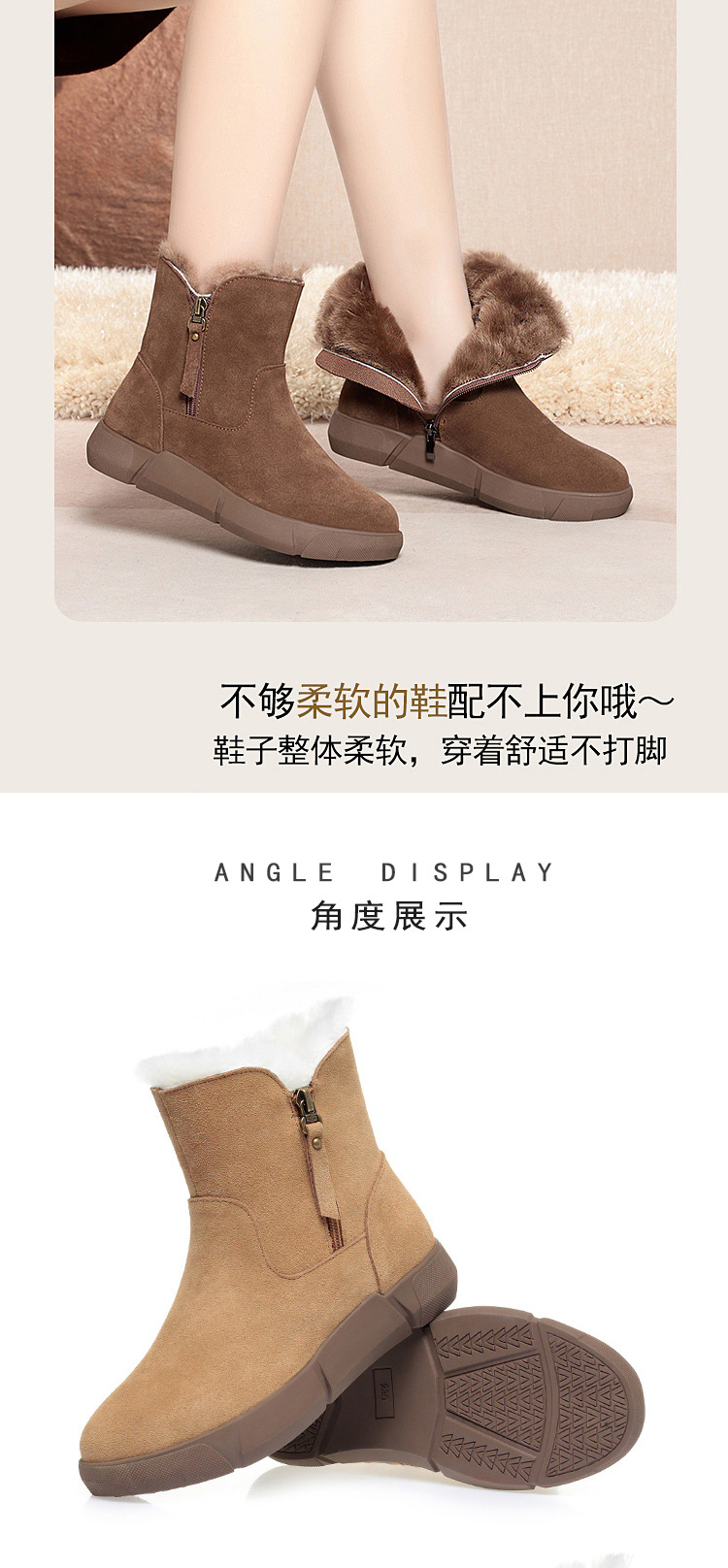 Genuine leather snow boots, winter boots with fur and plush, thick cotton shoes, cowhide thick sole, anti slip wool integrated short boots for women