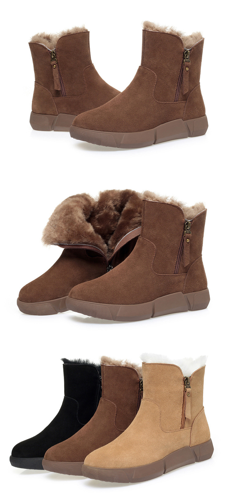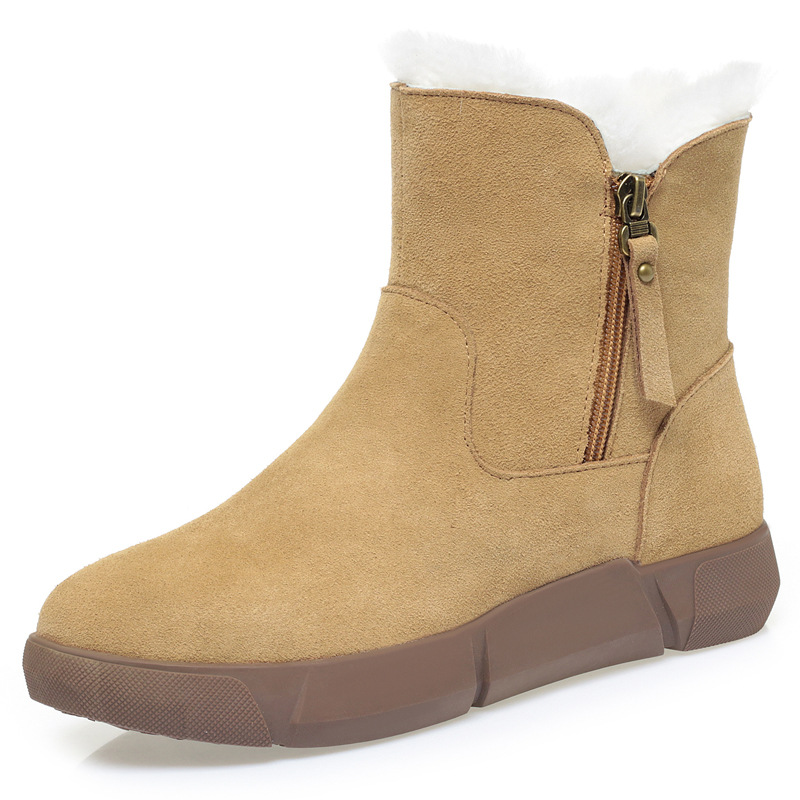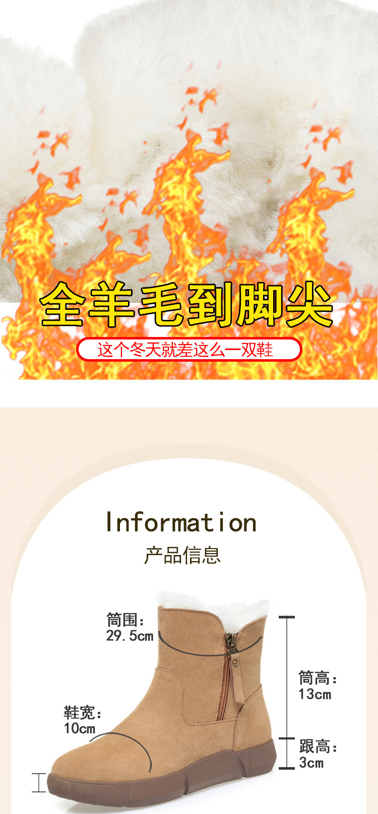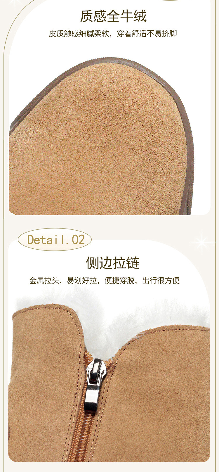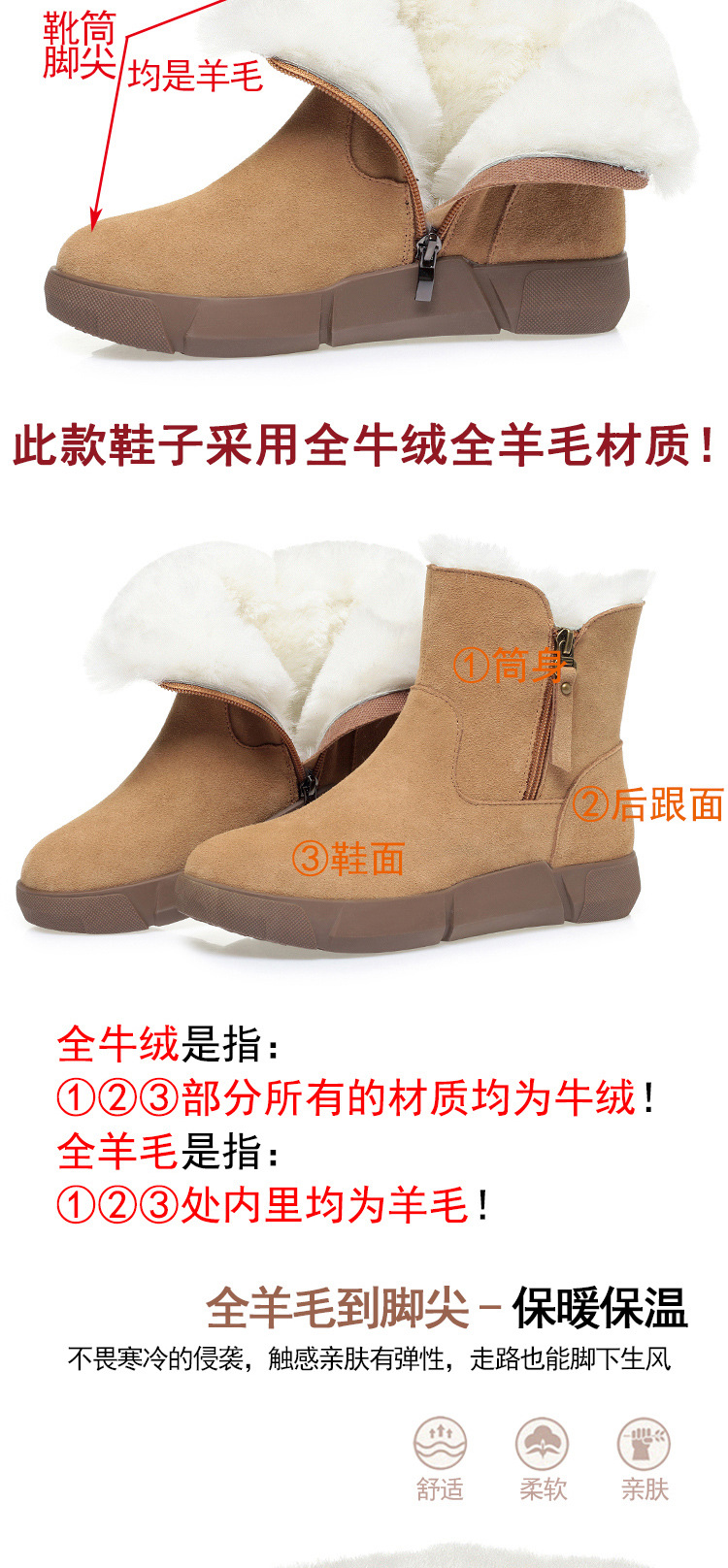 Genuine leather snow boots, winter boots with fur and plush, thick cotton shoes, cowhide thick sole, anti slip wool integrated short boots for women