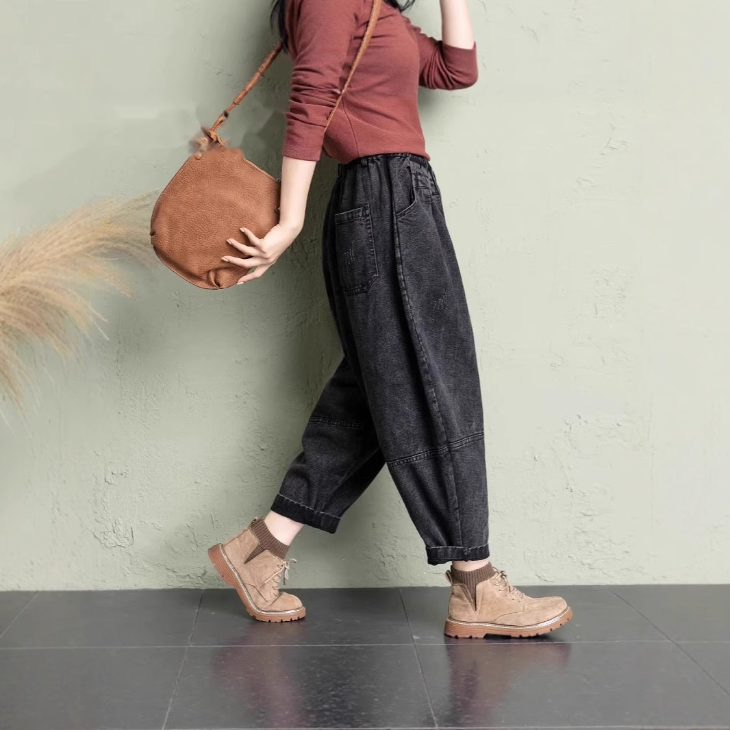 Cowboy Carrot Pants, Women's Wide Legs, Nine Cents Autumn New Style, Large Size, Loose Harun Pants, Thin Style, Look Thin, Summer Dad Pants