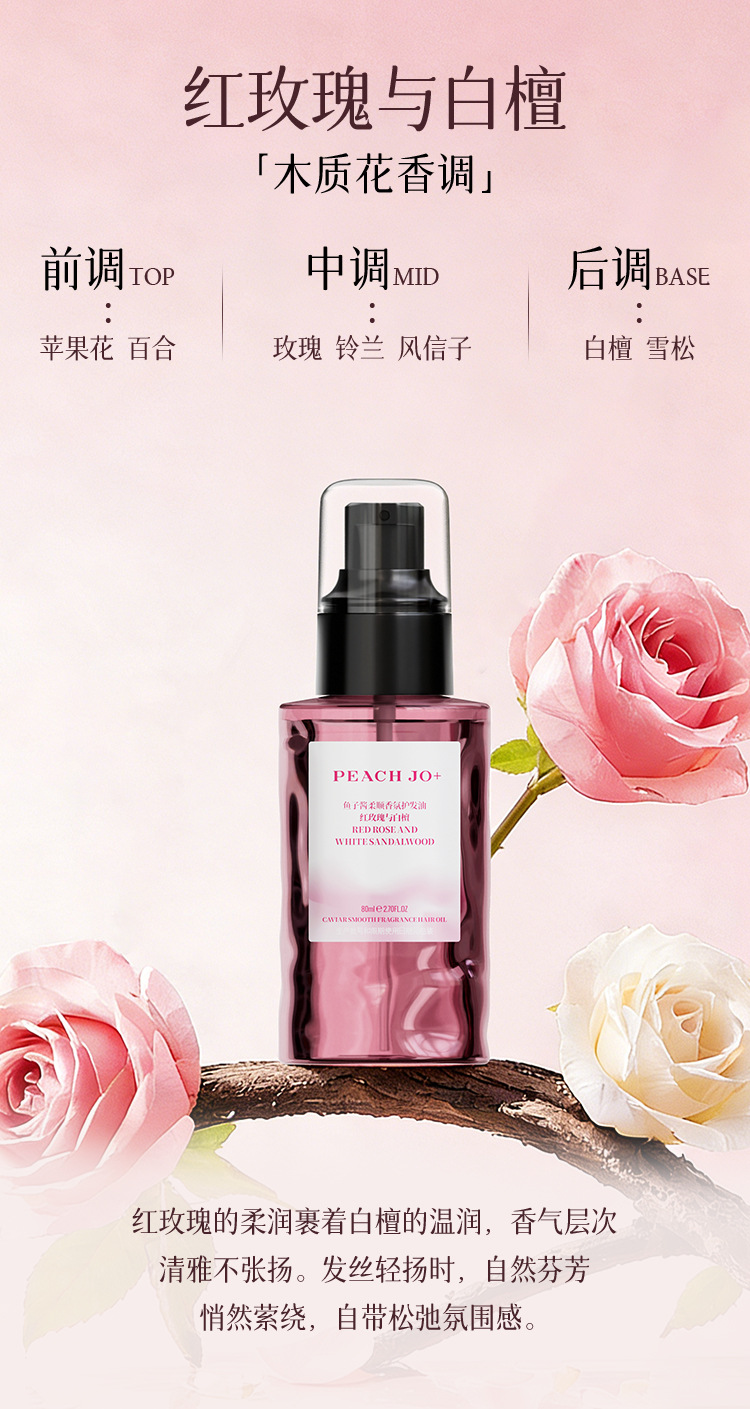 PEACH JO+鱼子酱红玫瑰白檀护发精油喷雾香水发香柔顺补水留香女