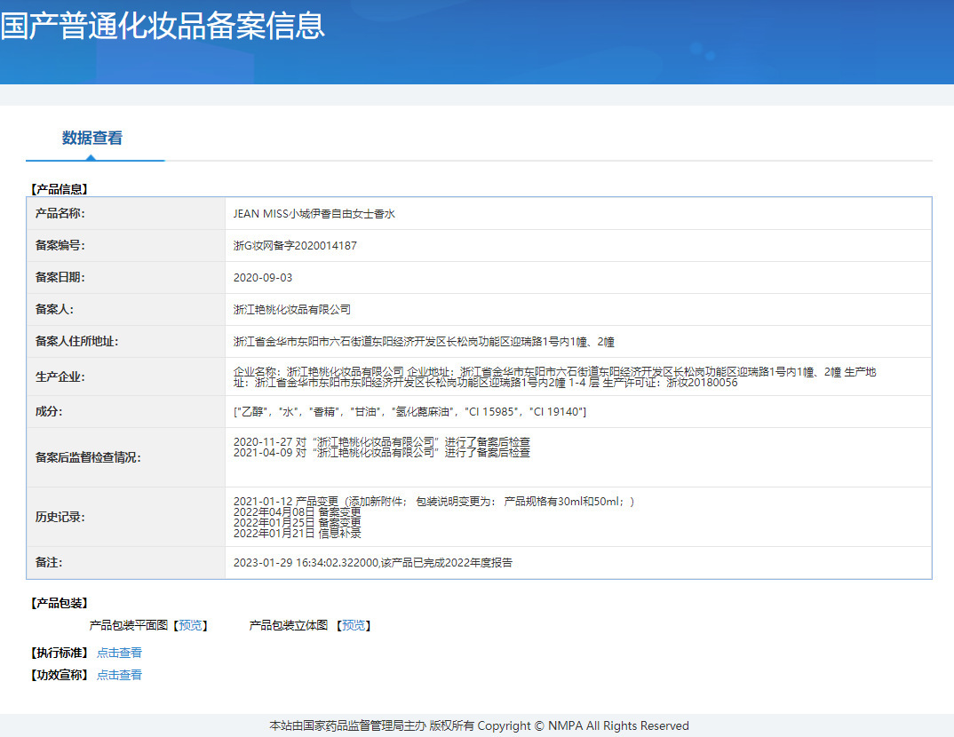 | 非特化妆品备案证号 | 浙G妆网备字2020014187 |