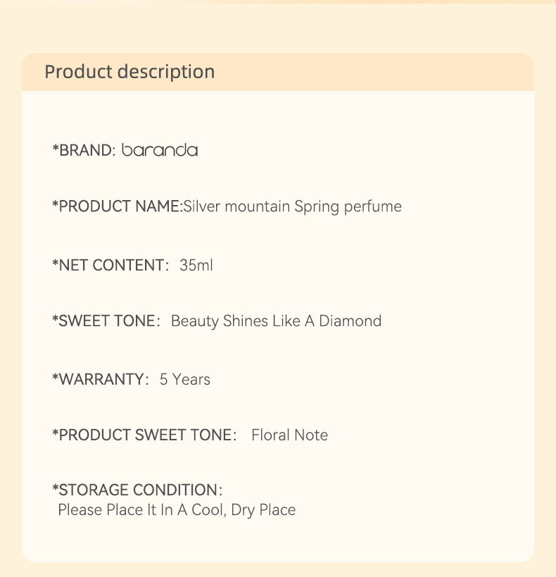 | Product Name | BARANDA BRAN Silver Mountain Spring perfume |