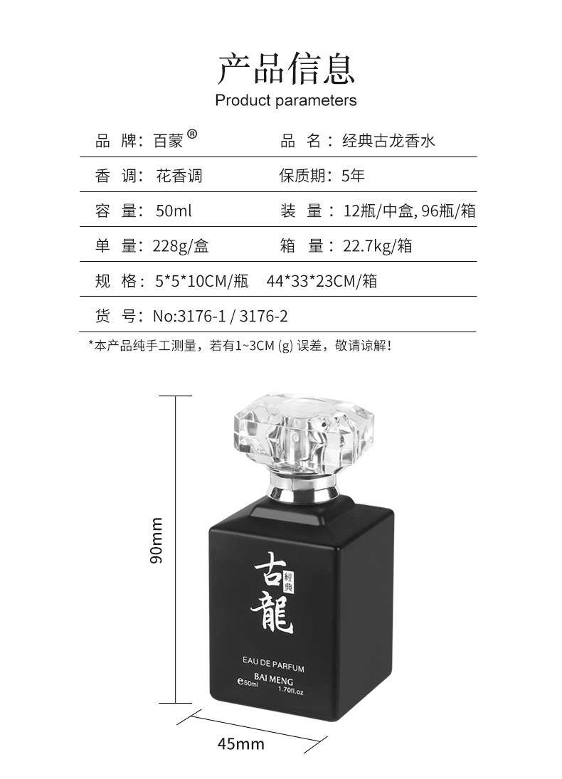 Baimenggulong Poison perfume Fresh Fragrance Charm Male perfume Female Oriental Flower Tone Gulong Lasting Fragrance