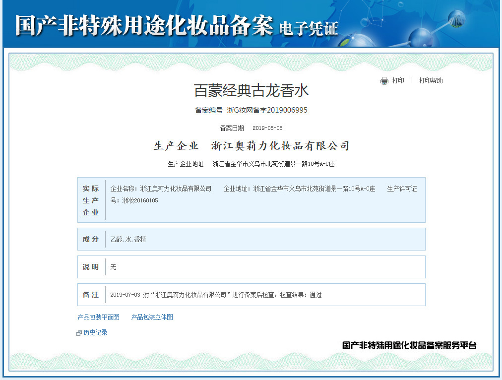| Non cosmetic registration certificate number | Zhejiang G Makeup Network Preparation Letter 2019006995 |