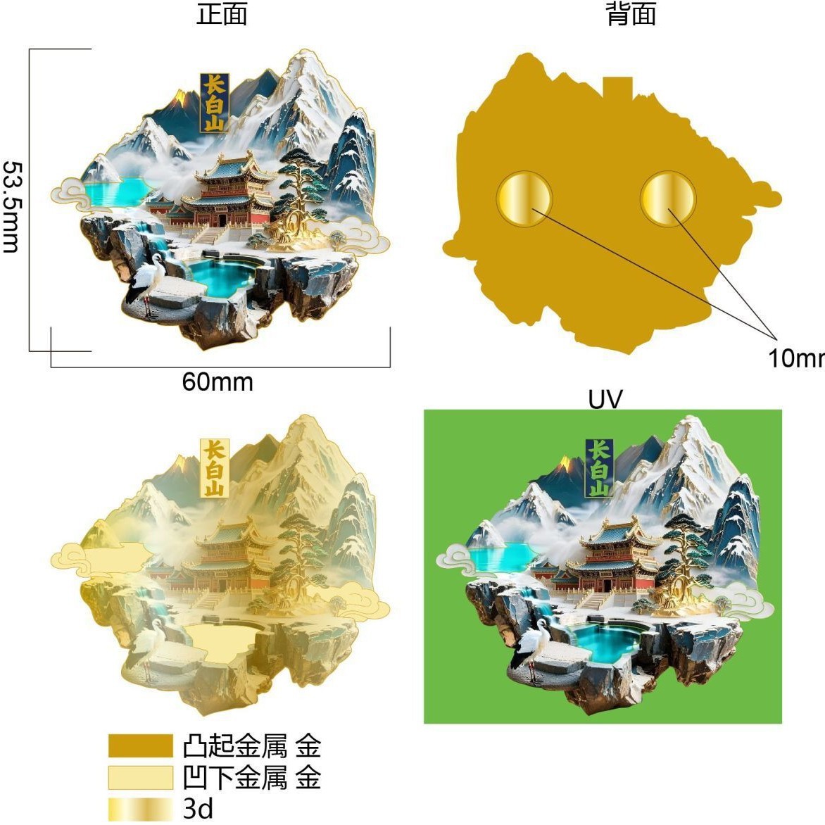 [Changbai Mountain] Metal relief three-dimensional refrigerator stickers, scenic spots, tourist souvenirs, cultural and creative gifts, souvenirs, souvenirs, souvenirs