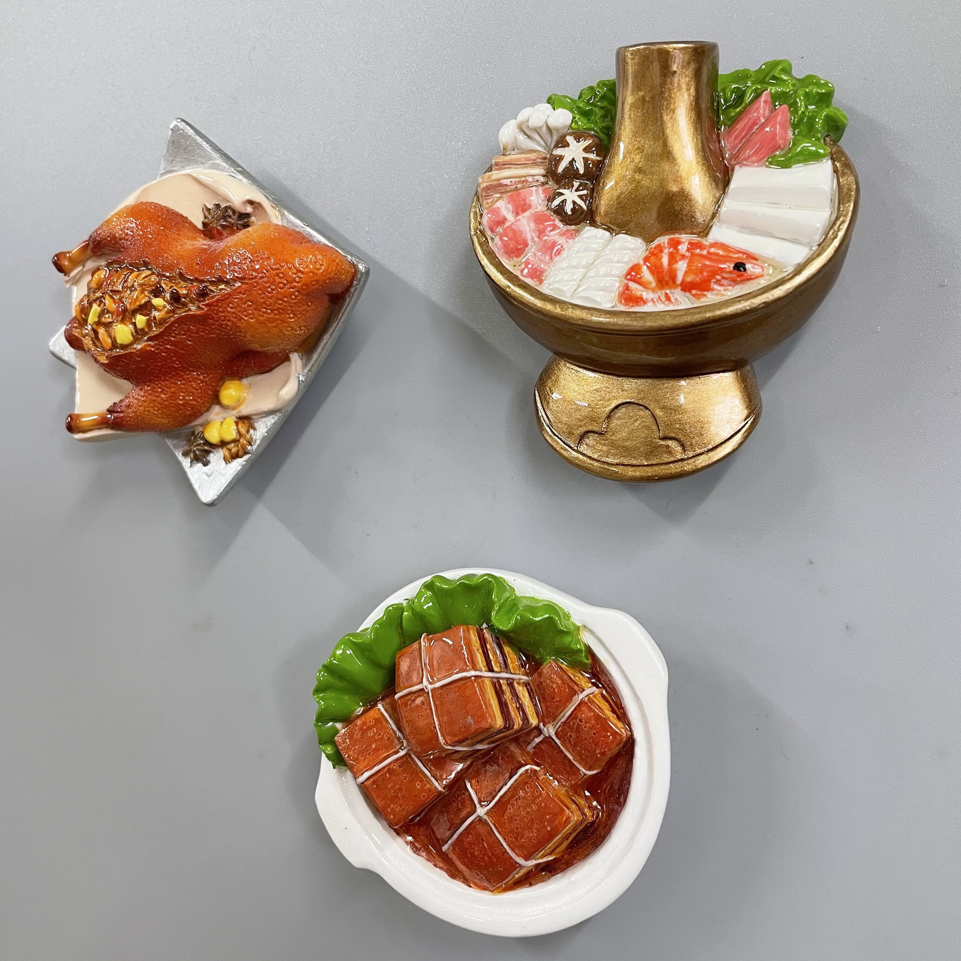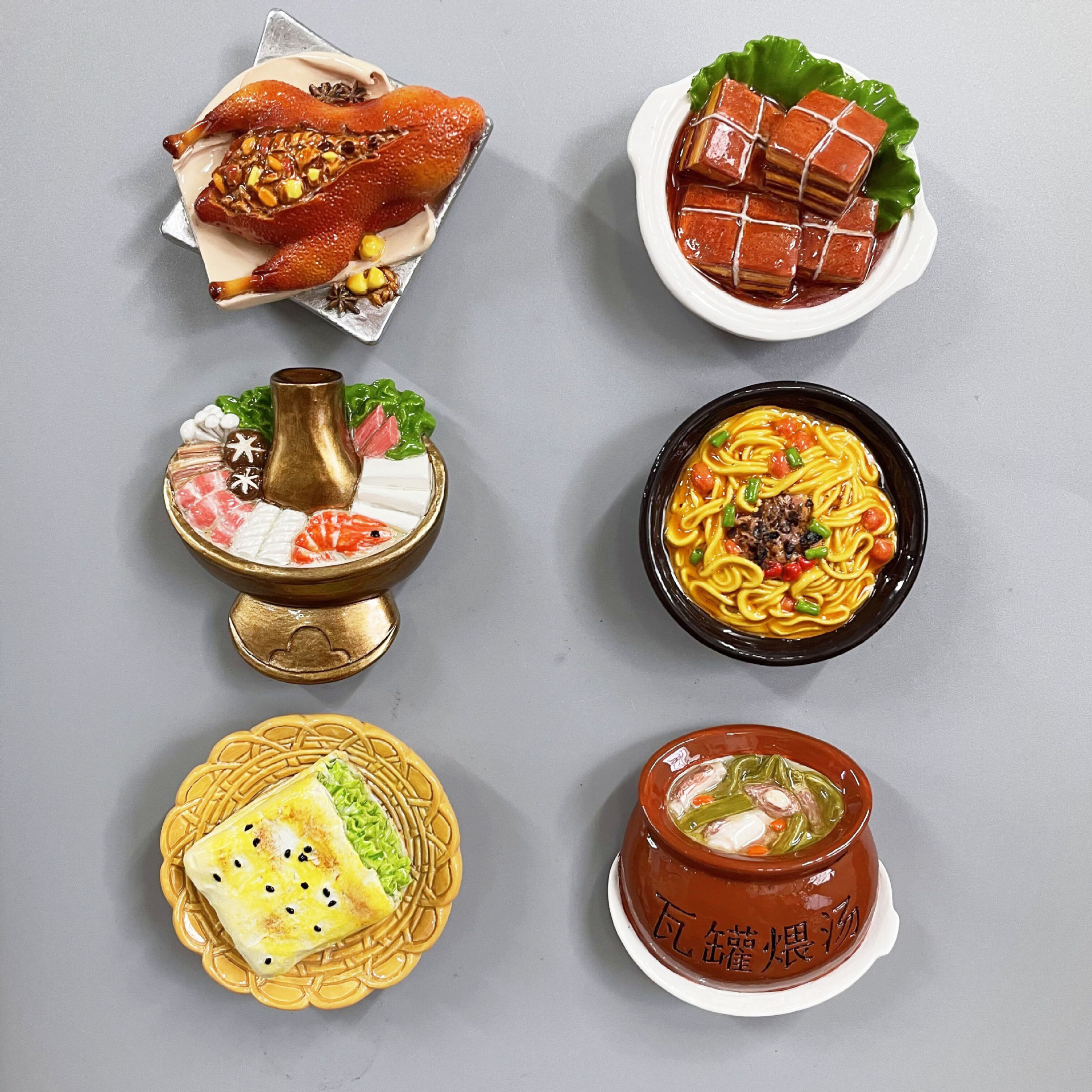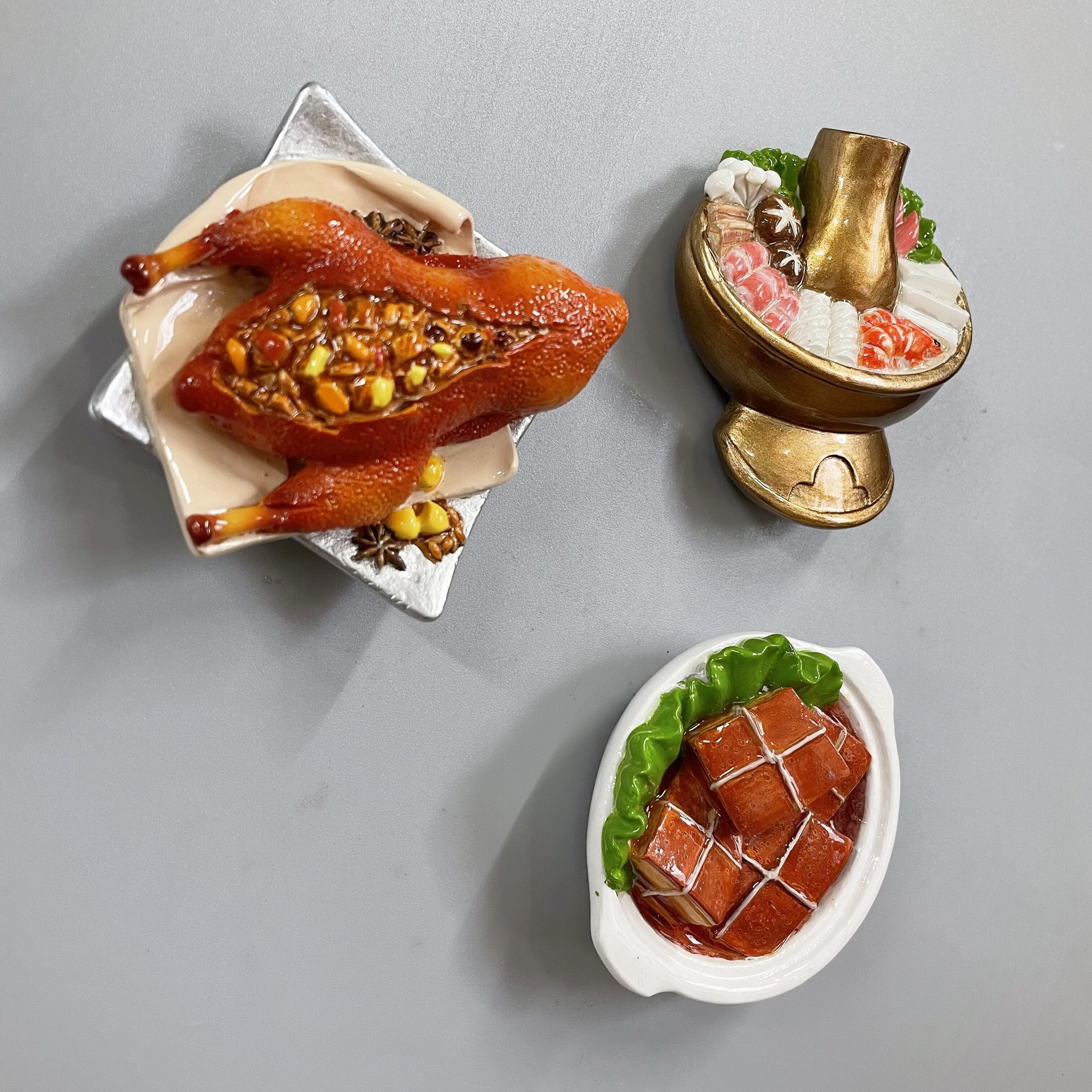 New Year's Creative 3D Magnetic Decorations Resin Simulation Food Old Beijing Hotpot City Cuisine Refrigerator Stickers