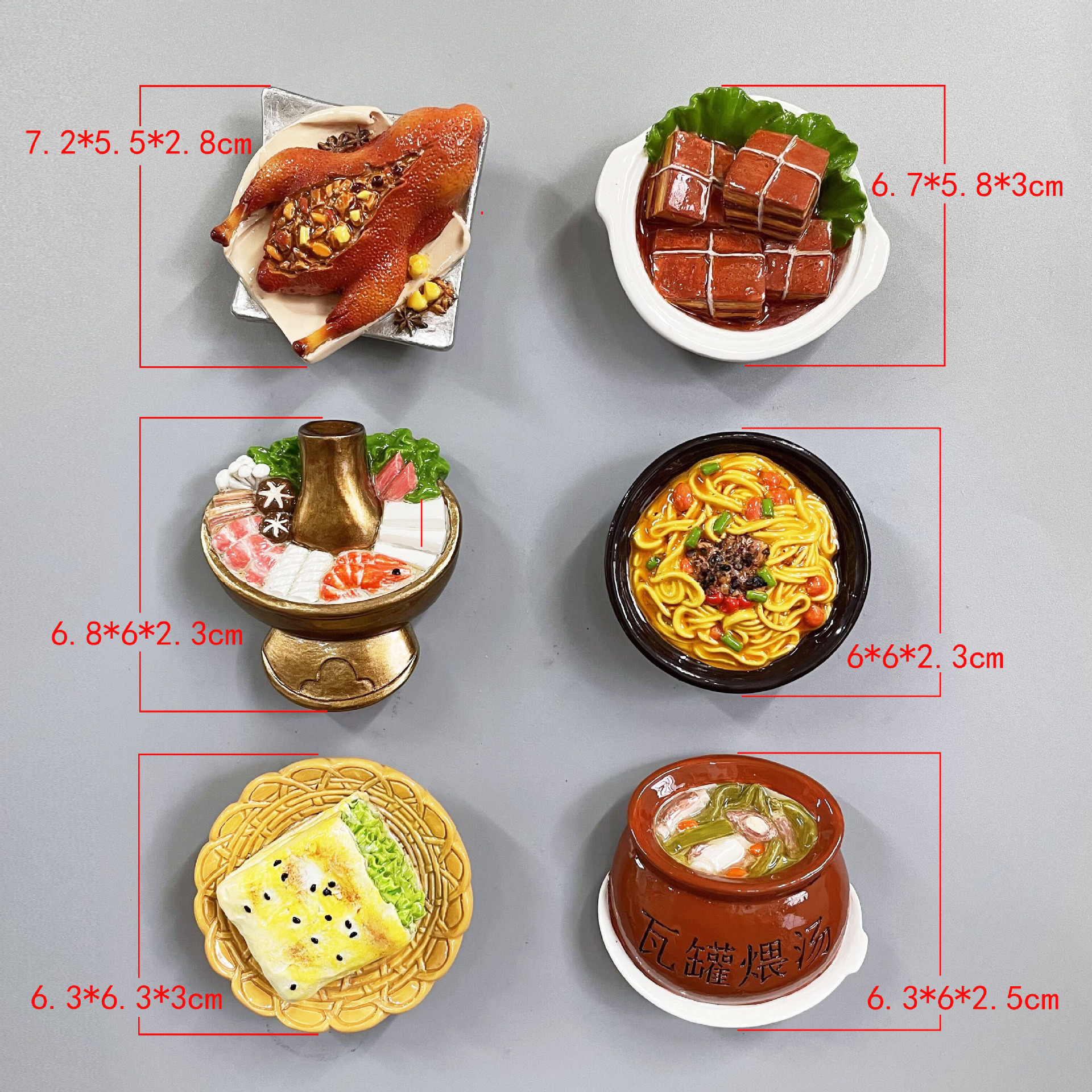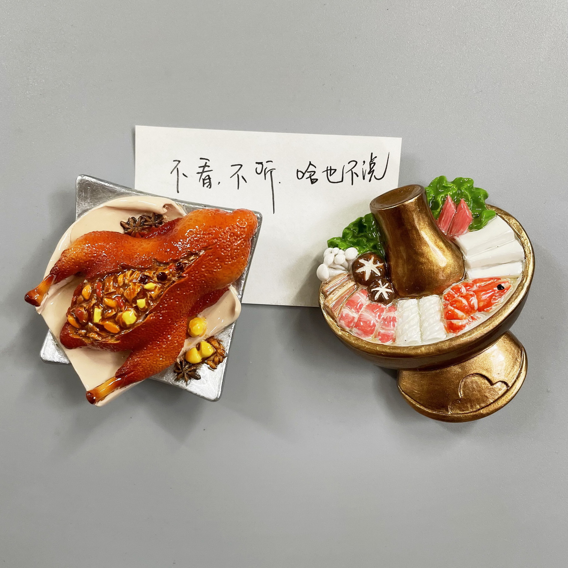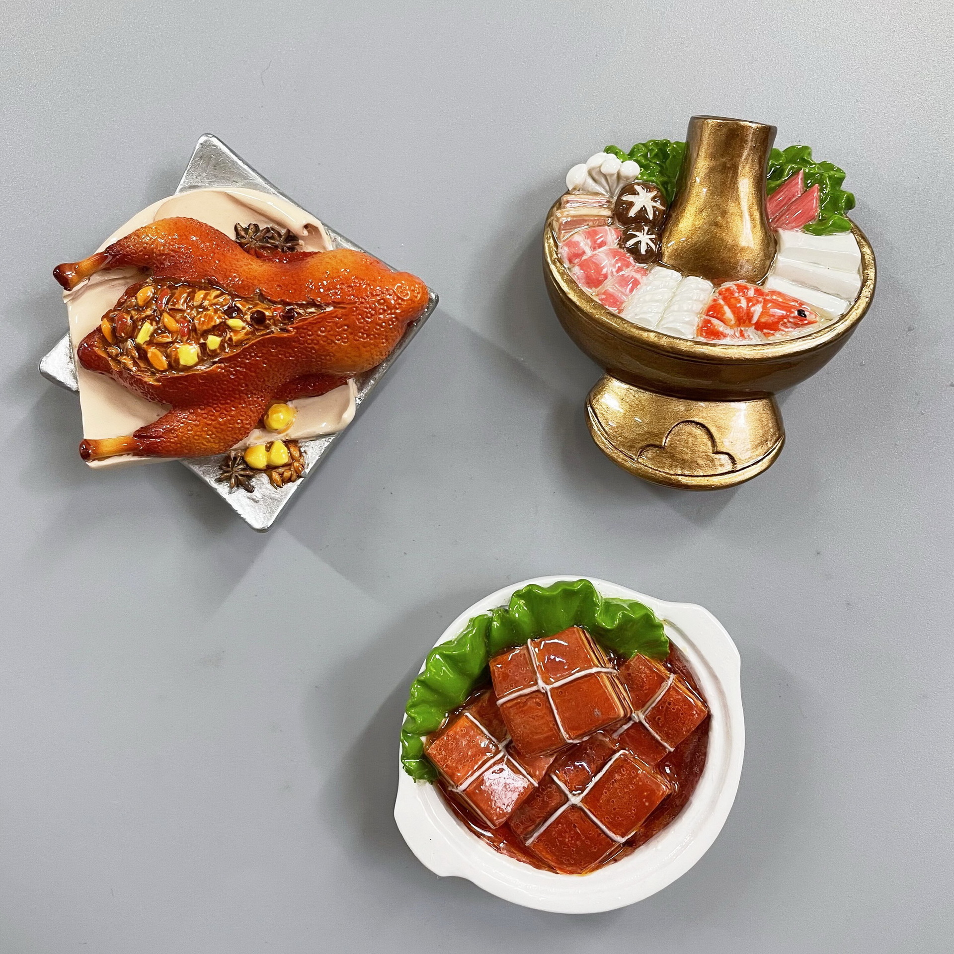 New Year's Creative 3D Magnetic Decorations Resin Simulation Food Old Beijing Hotpot City Cuisine Refrigerator Stickers