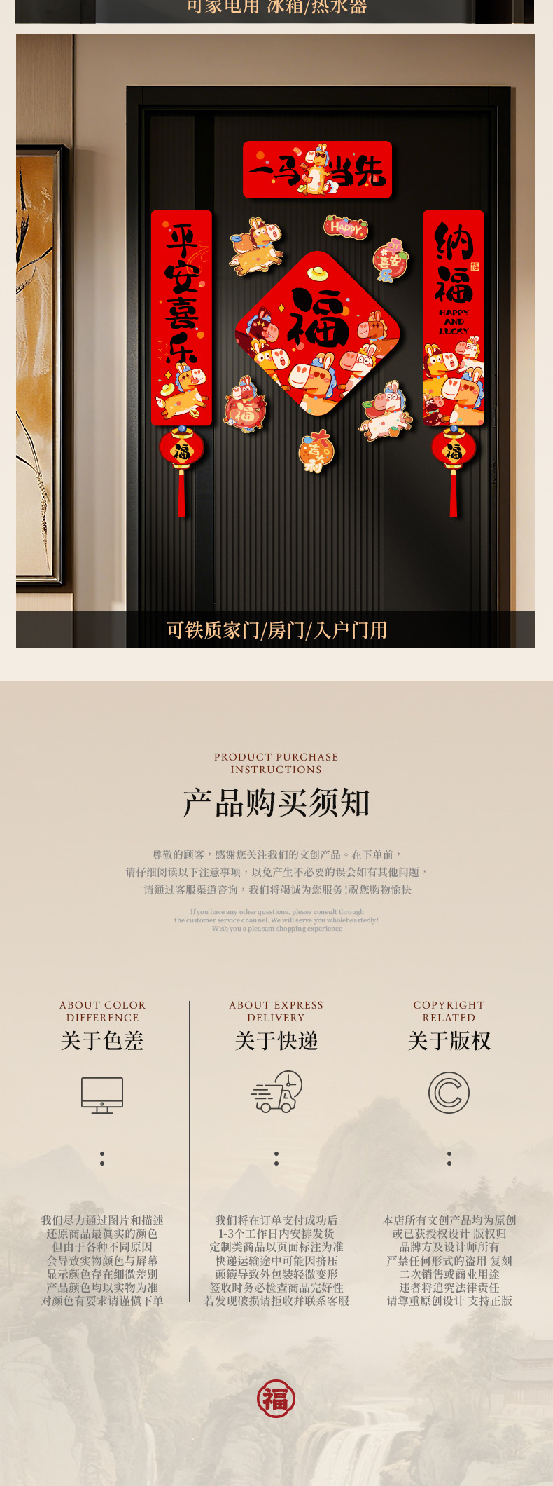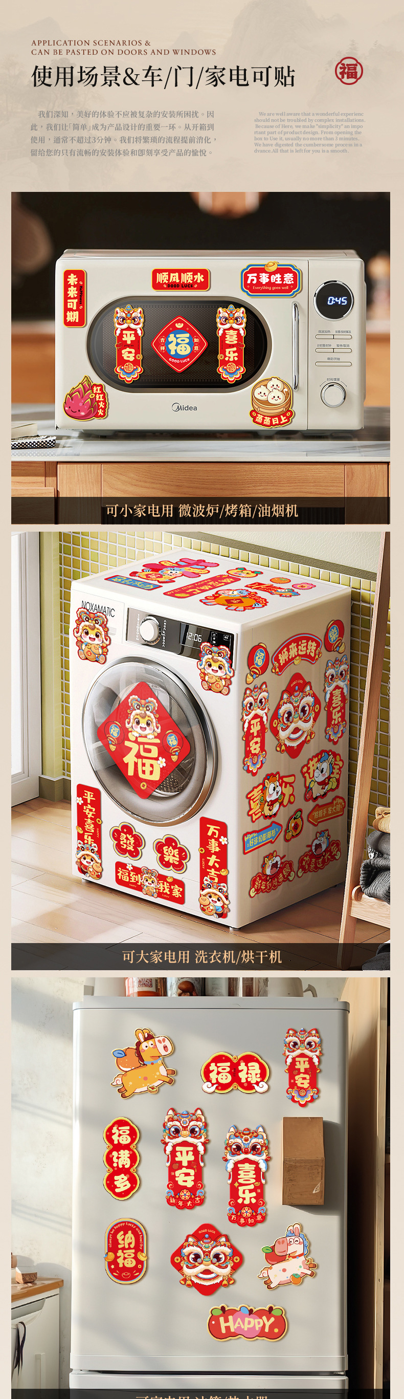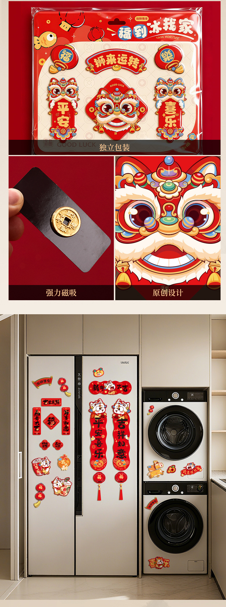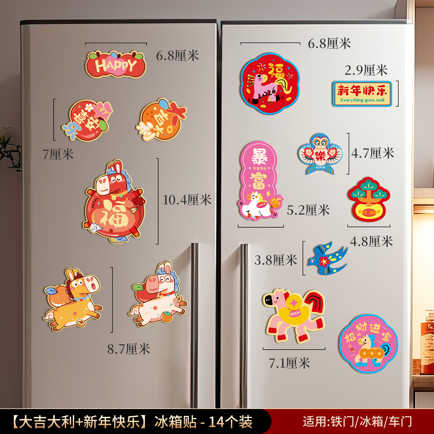 新年装饰品磁吸冰箱贴2026年新款春节马年过年创意福字贴气氛布置