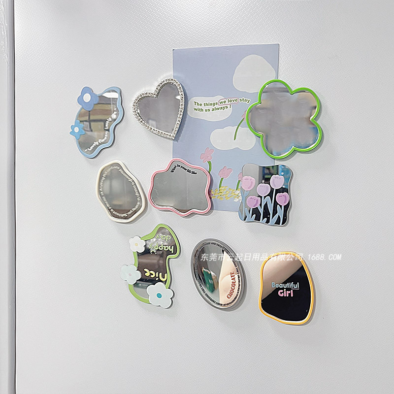 Alien mirror magnetic suction refrigerator sticker refrigerator decoration magnetic sticker personality irregular small mirror magnetic magnet stone creative