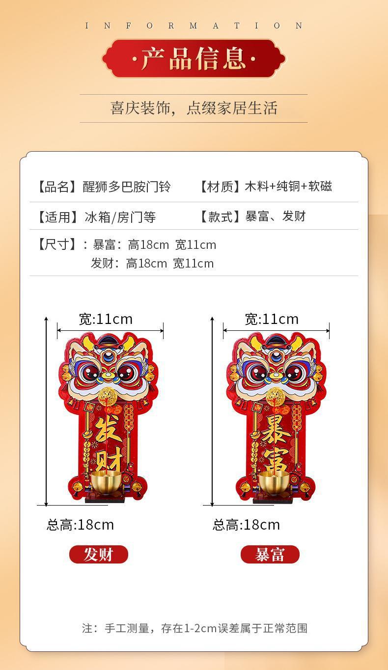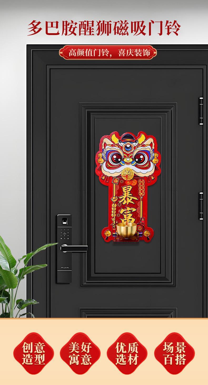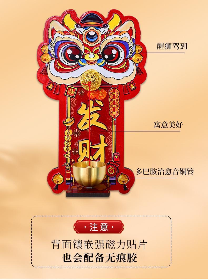 Dopamine lion awakening magnetic doorbell New Year entrance door decoration copper bell refrigerator sticker New Year atmosphere decoration pendant