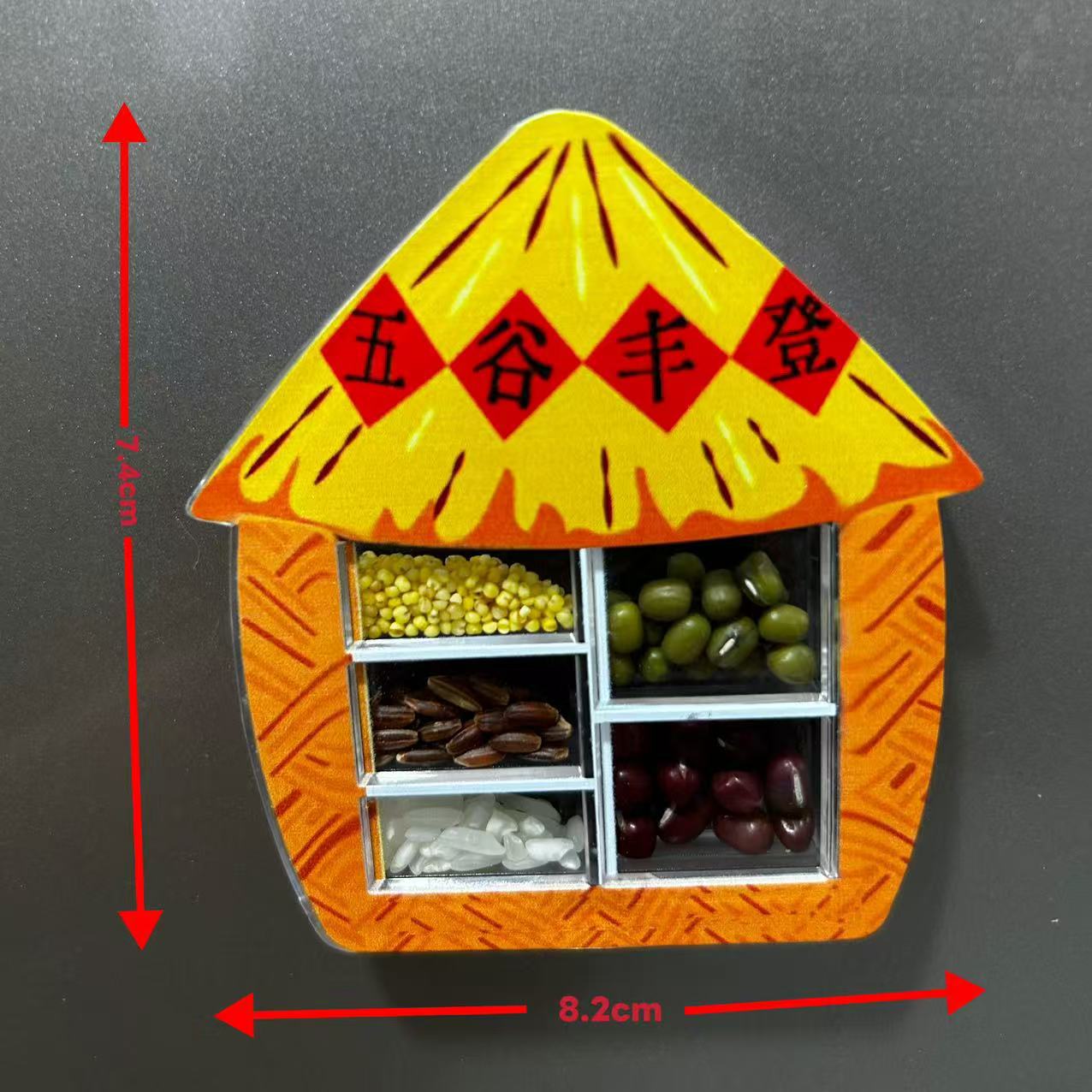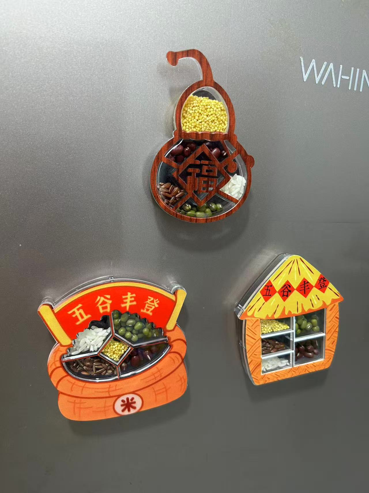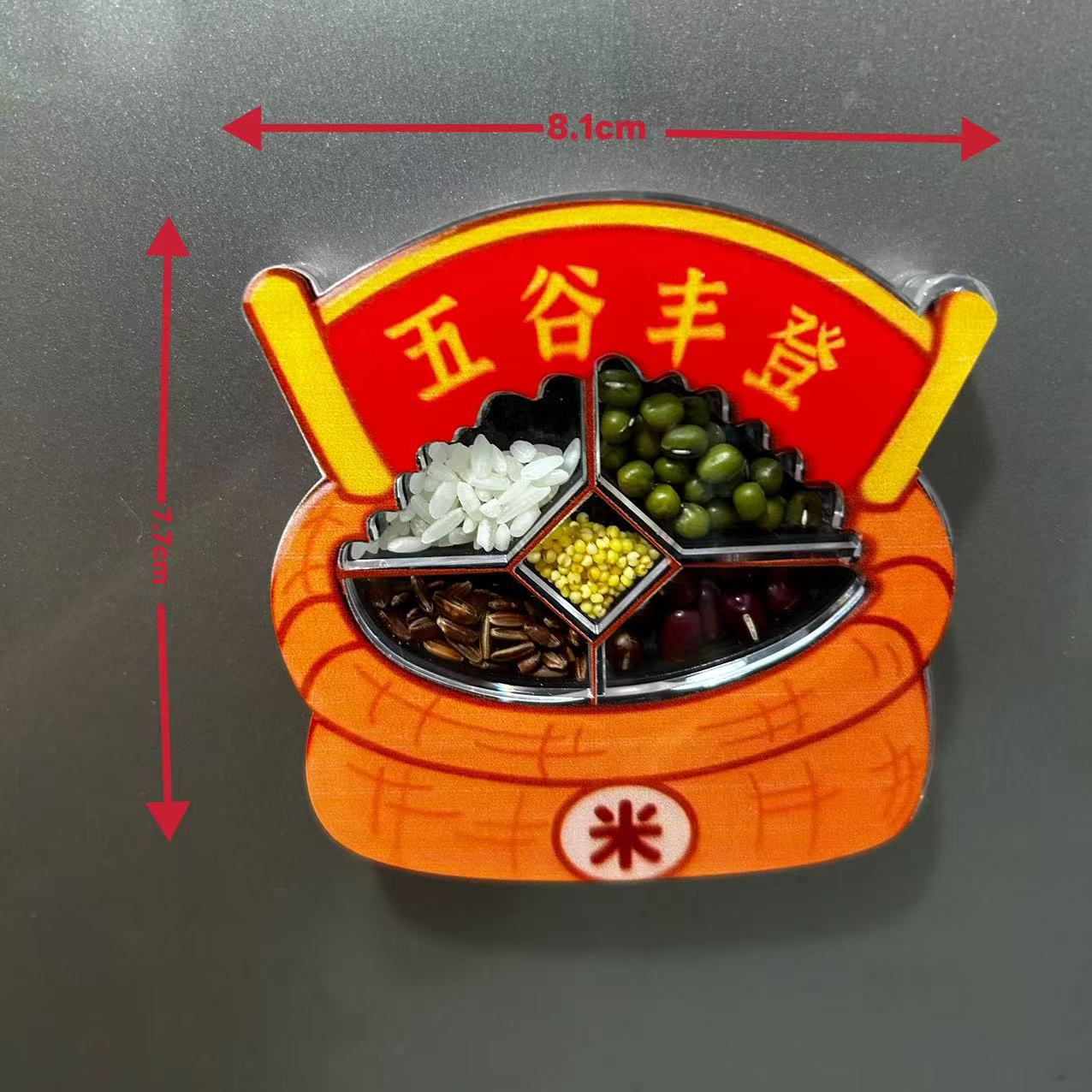 国潮五谷丰登亚克力冰箱贴木纹创意乔迁礼物原创磁吸磁贴工艺品