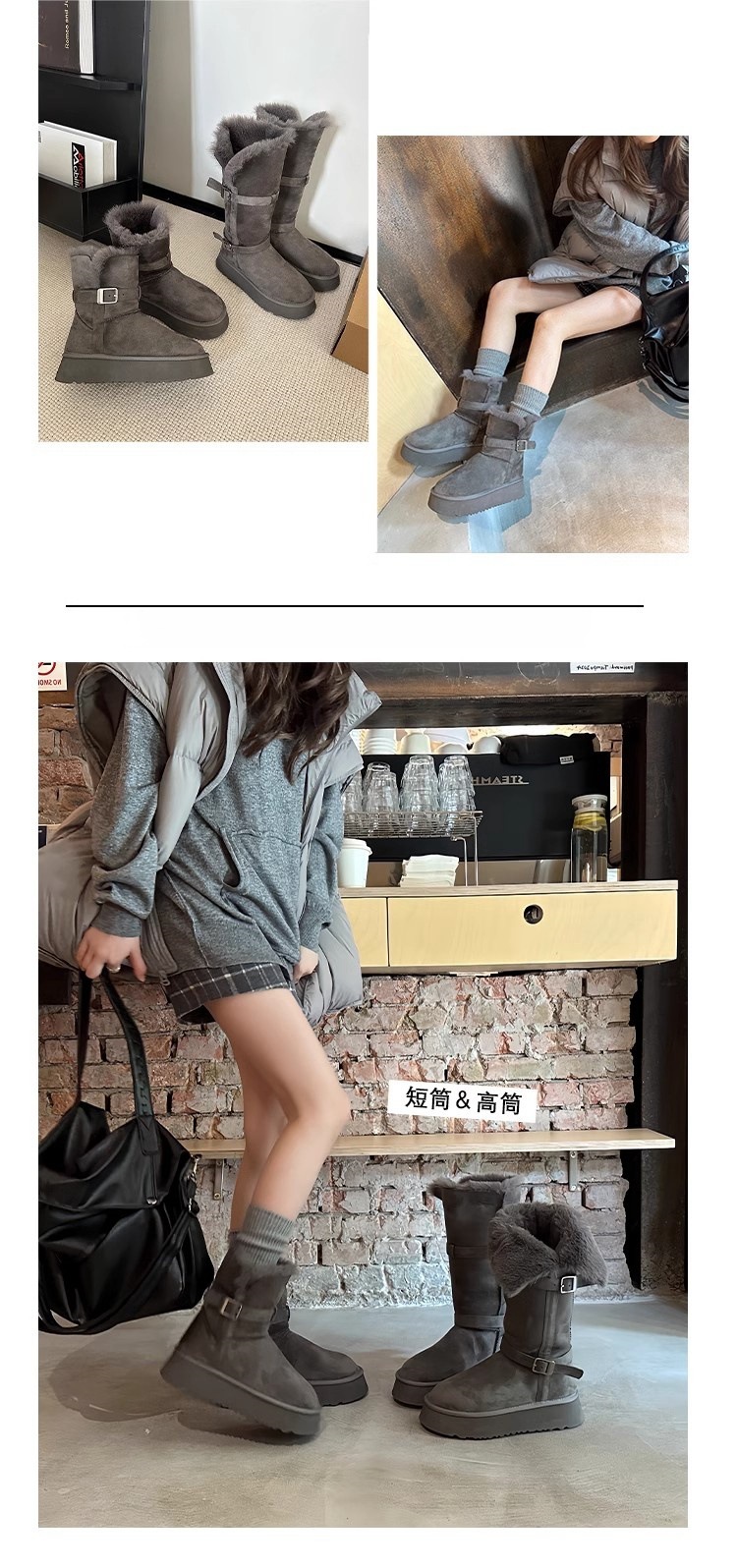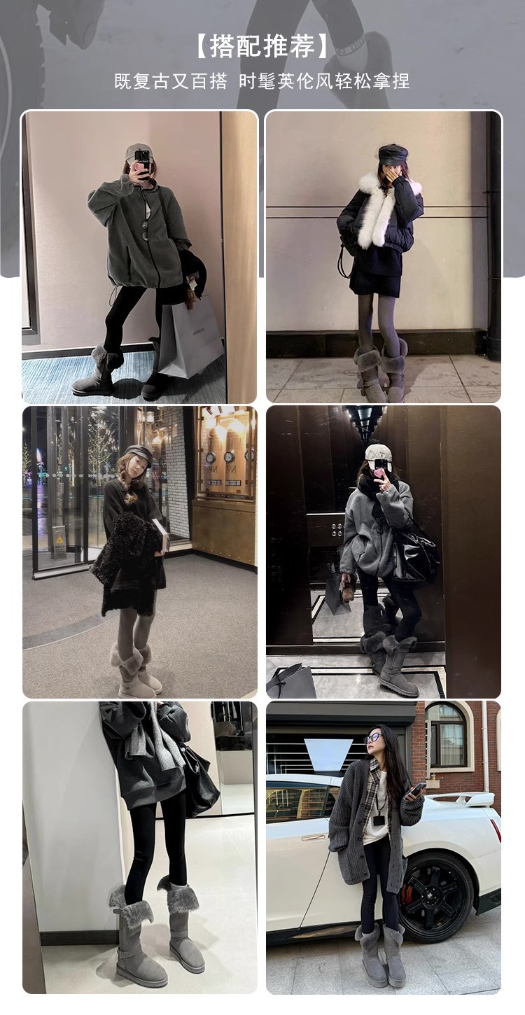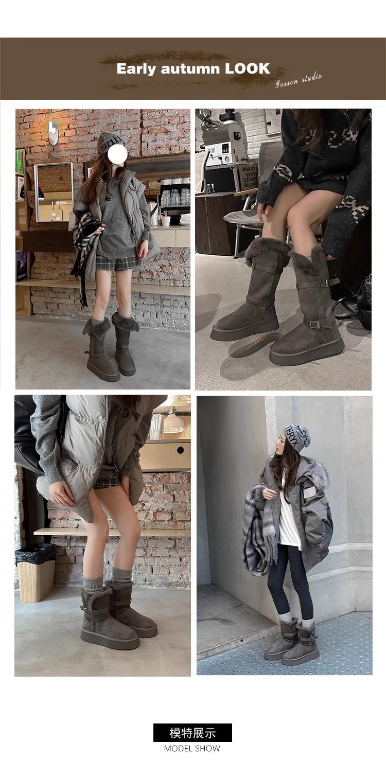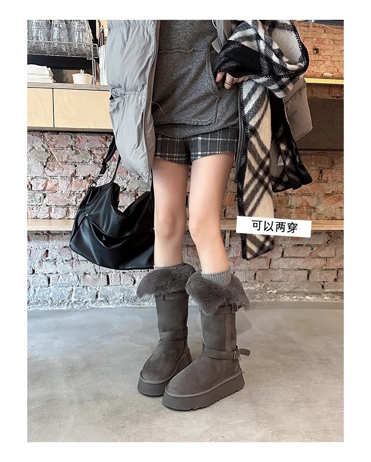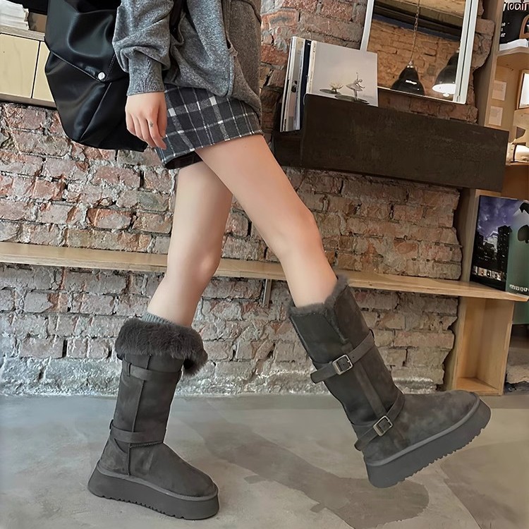 Шерсть в серых снежных сапогах Woman Зимой 2024 Новые толстые подошвы с плюшевым толстым стволом