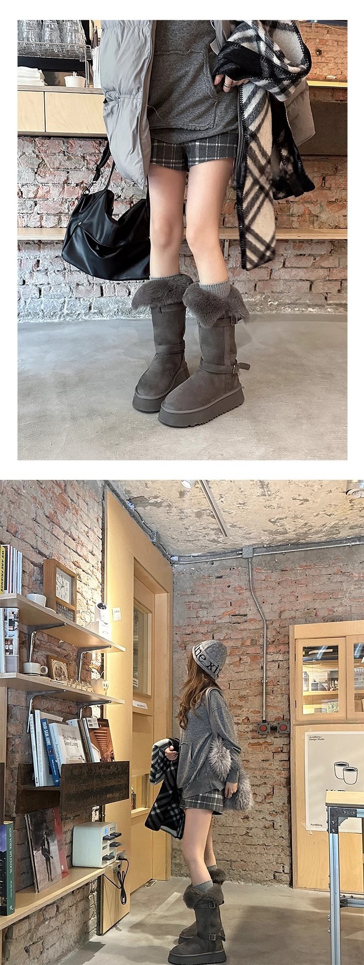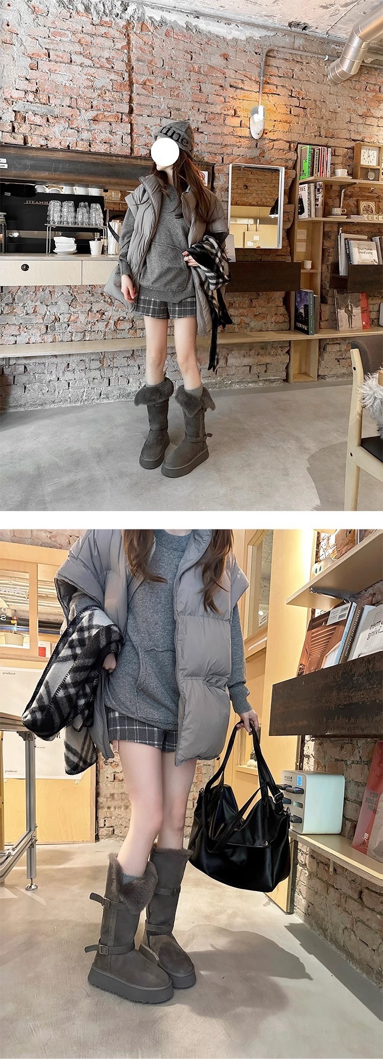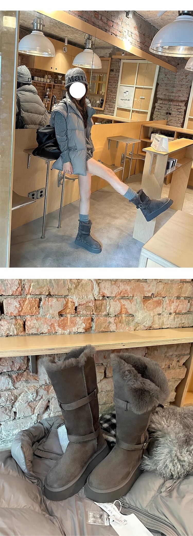 Шерсть в серых снежных сапогах Woman Зимой 2024 Новые толстые подошвы с плюшевым толстым стволом