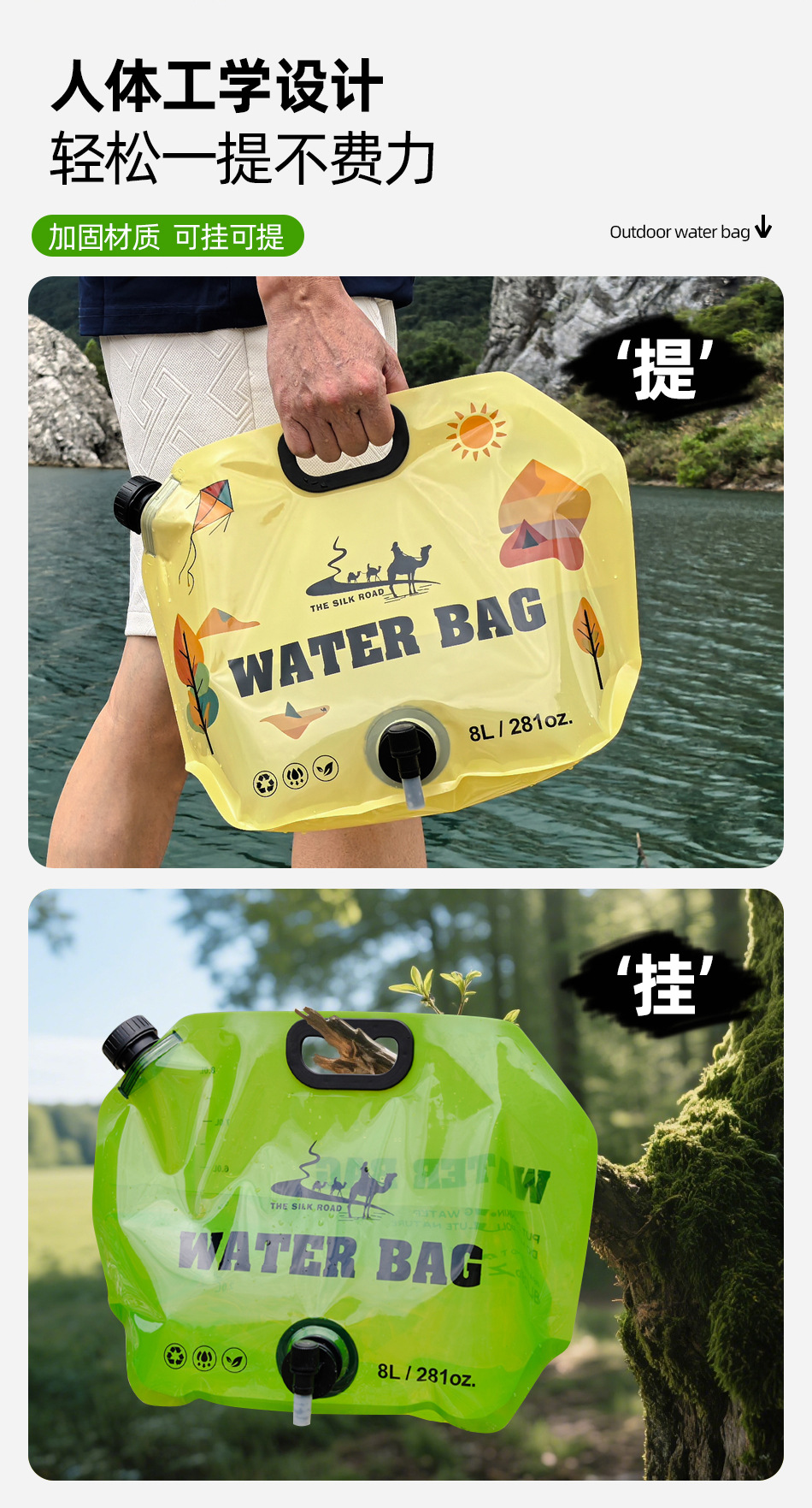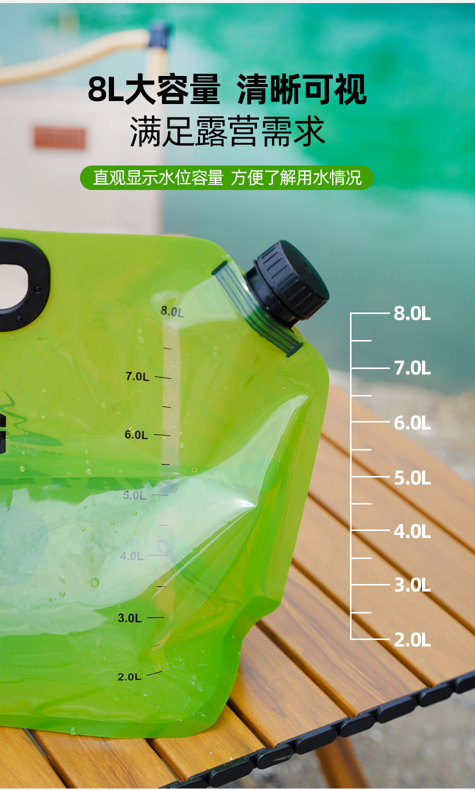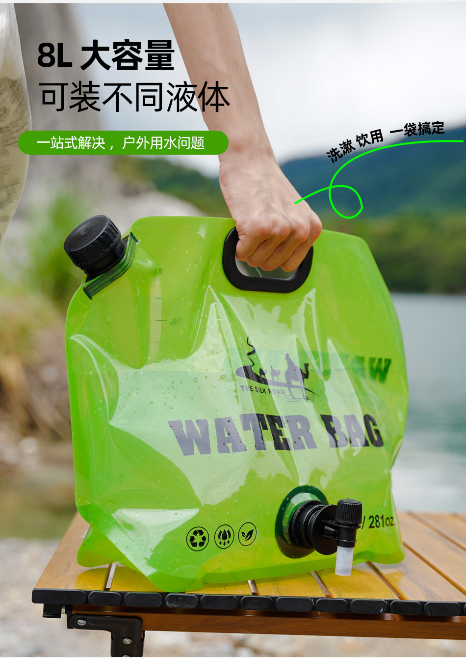 Трансграничный открытый переносной складной мешок для хранения воды большой вместимости 8L альпинизм кемпинг ручной пластиковый пакет