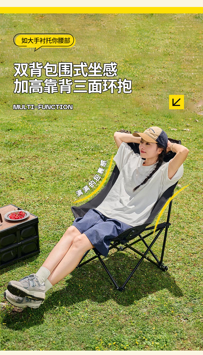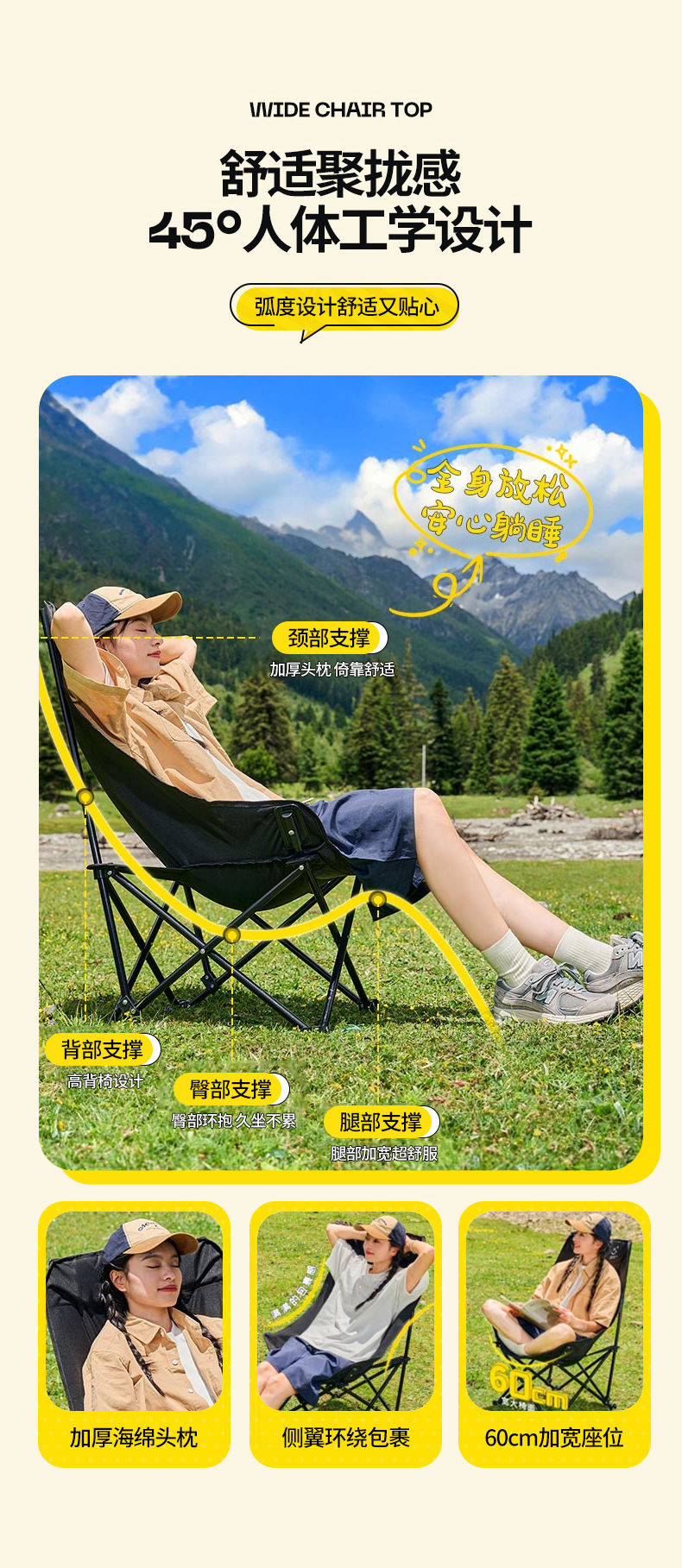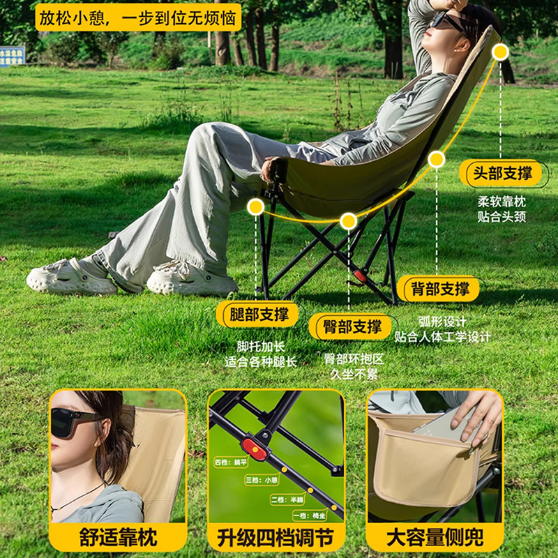 Сломанный лунный стул с открытой спинкой, регулируемый стул, шезлонг, спинка, переносной кемпинг, рыбалка, четырехступенчатый регулировочный стул.