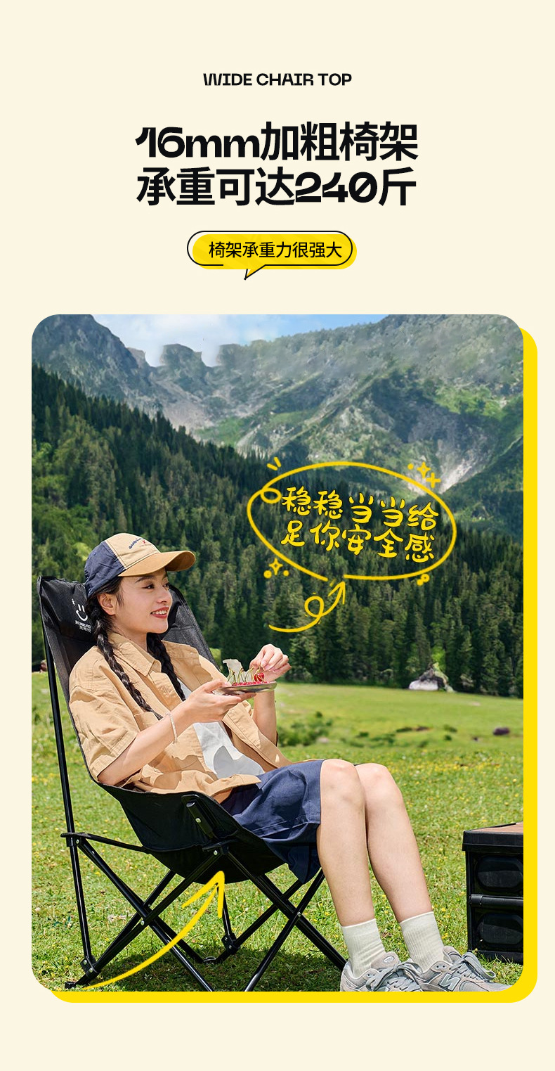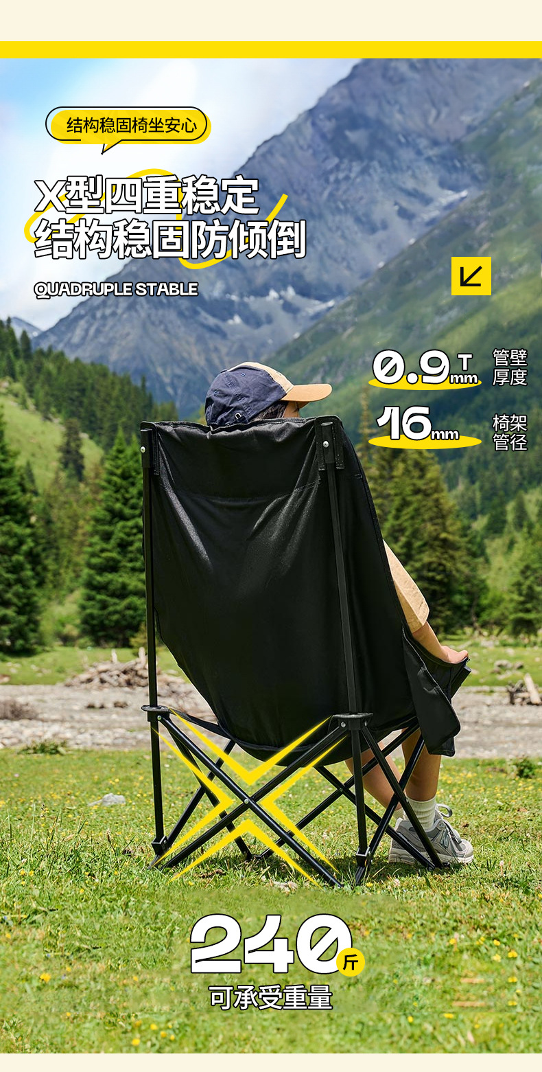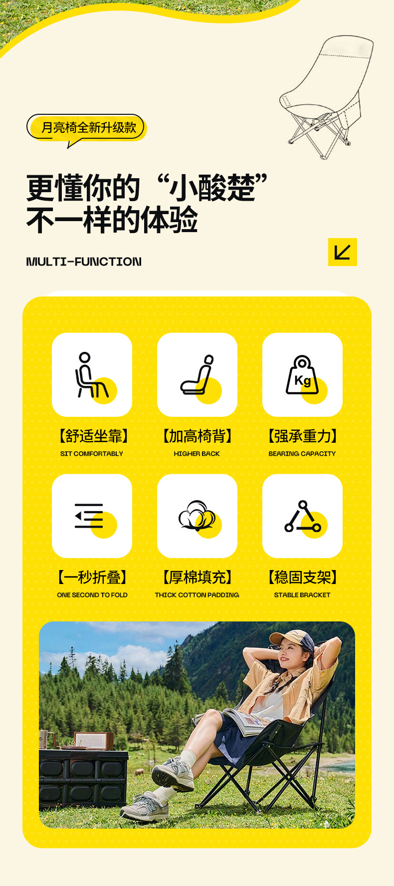 Сломанный лунный стул с открытой спинкой, регулируемый стул, шезлонг, спинка, переносной кемпинг, рыбалка, четырехступенчатый регулировочный стул.