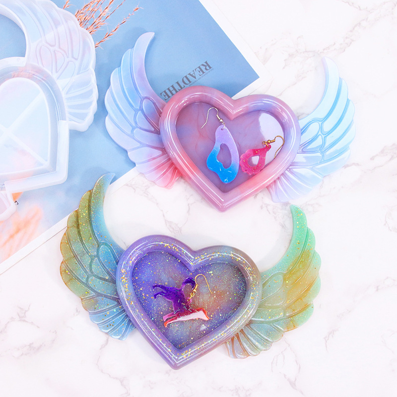 DIY dropper heart-shaped storage tray, silicone mold, earring pendant storage box, jewelry, flower geometry, heart-shaped wings