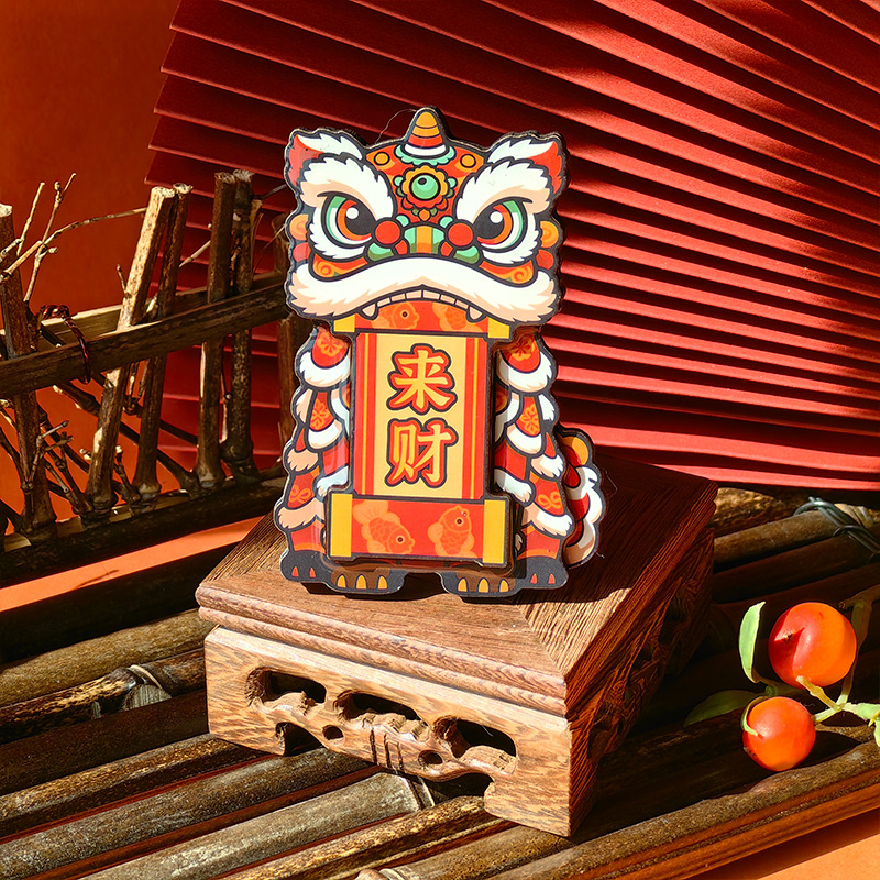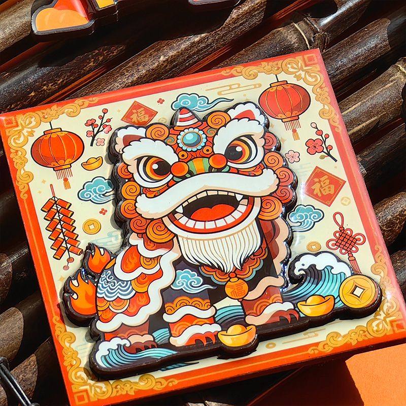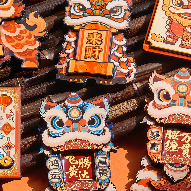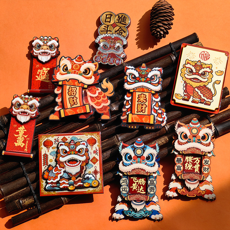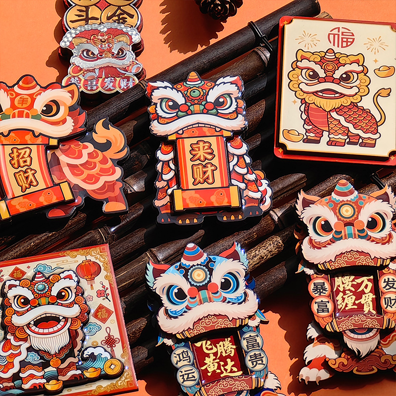 Wooden refrigerator stickers of the Year of the Horse 2026 Awakening Lion series to attract wealth and treasure China-Chic characteristic culture New Year decoration stickers