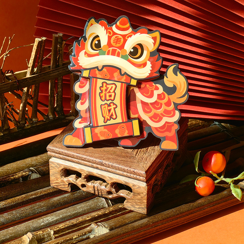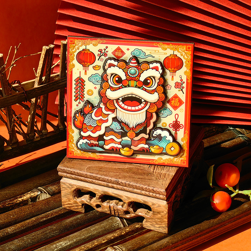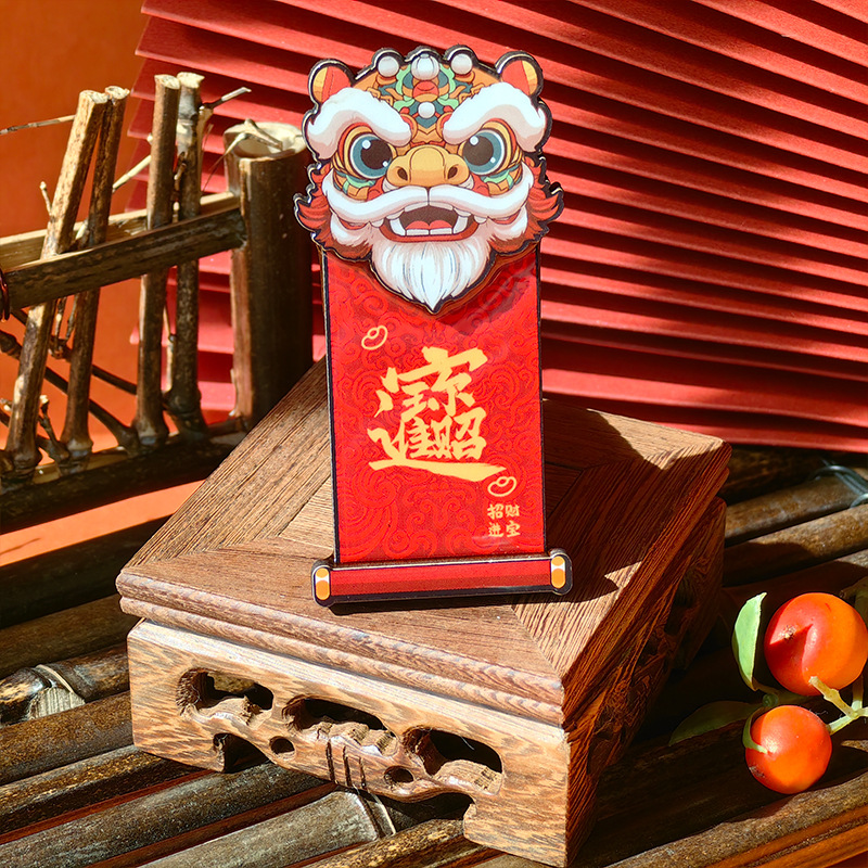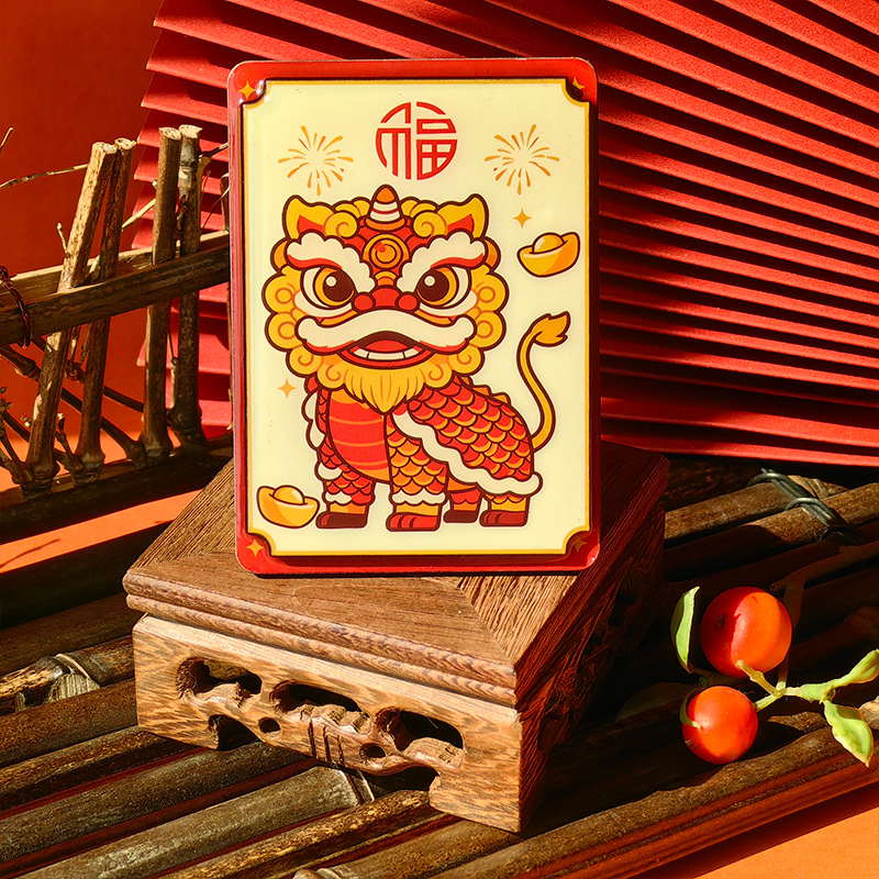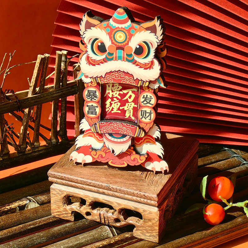 Wooden refrigerator stickers of the Year of the Horse 2026 Awakening Lion series to attract wealth and treasure China-Chic characteristic culture New Year decoration stickers