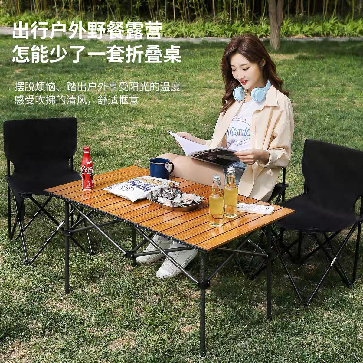 Складные столы и стулья на открытом воздухе Портативный автомобиль Самоходный стол для отдыха Супер легкий барбекю кемпинг Набор из углеродистой стали Стол