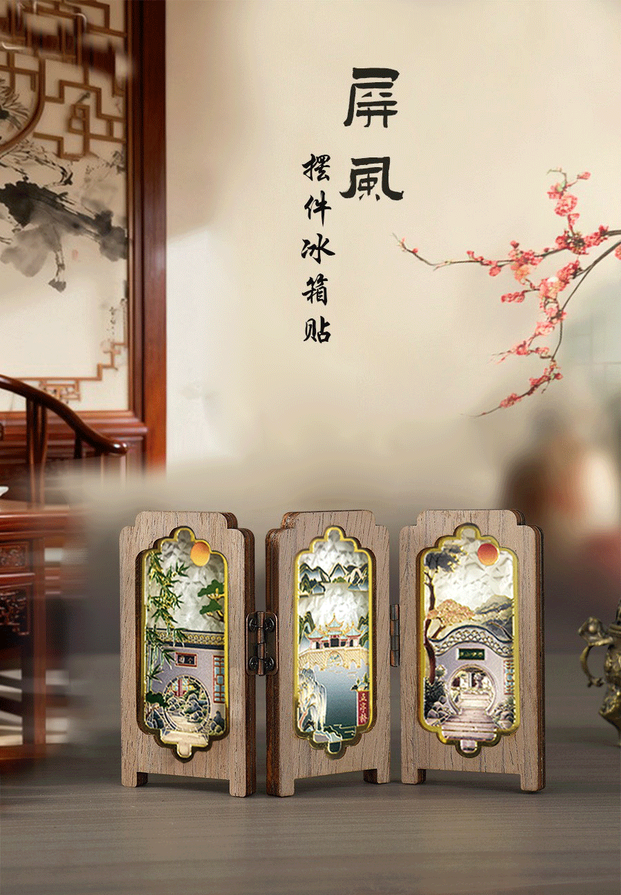 Wooden screen decorations, refrigerator stickers, Suzhou style cultural and creative souvenirs, decorations, handicrafts