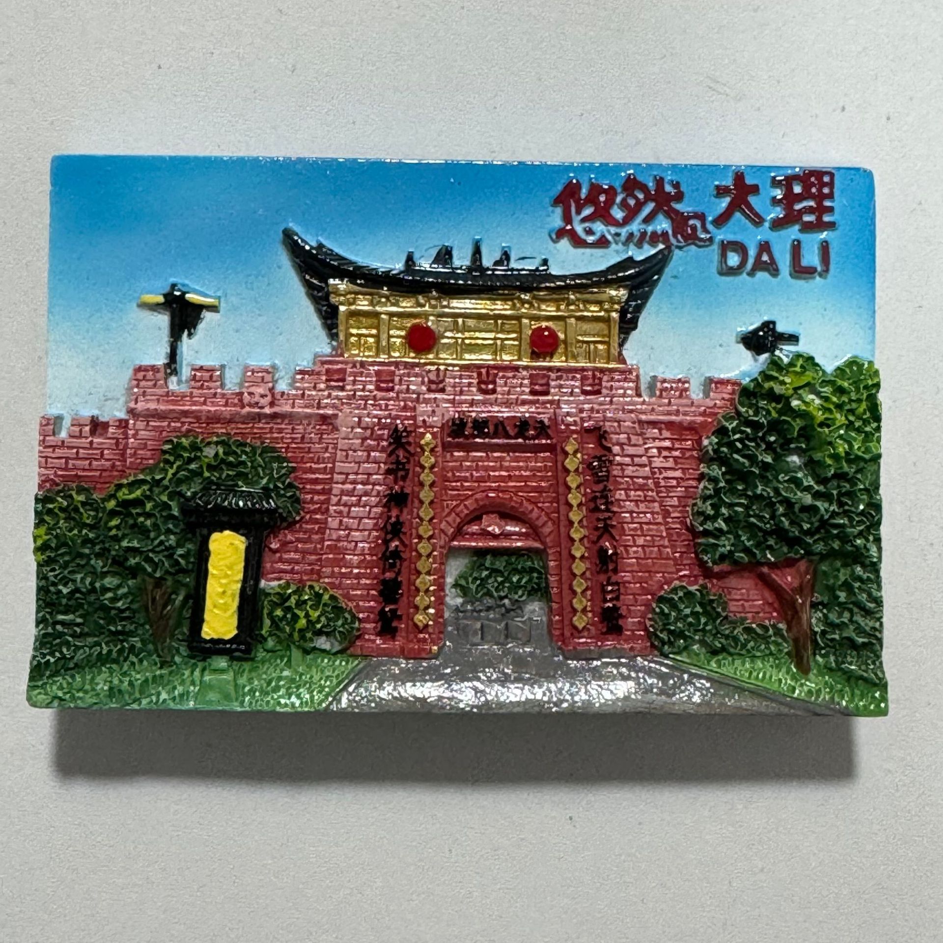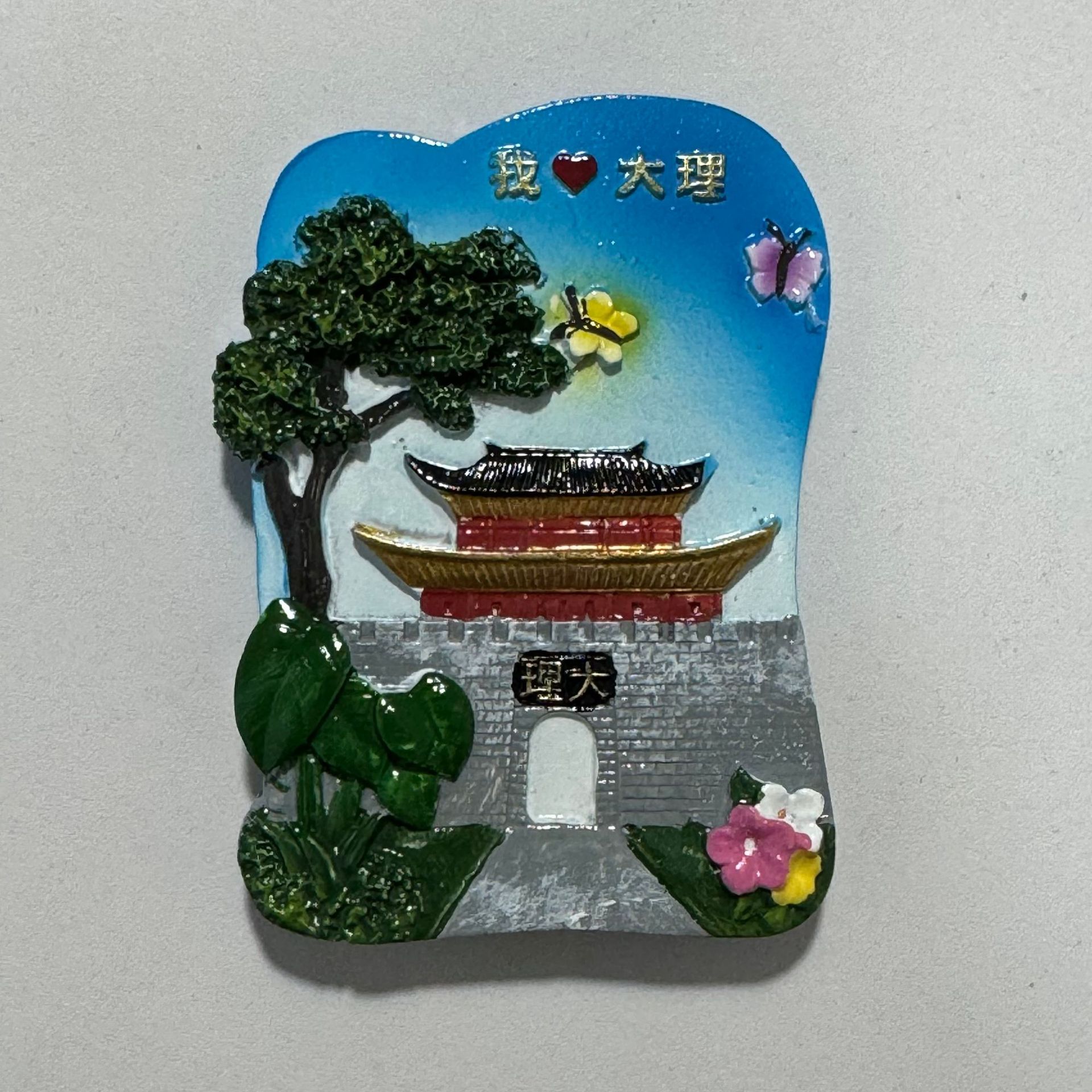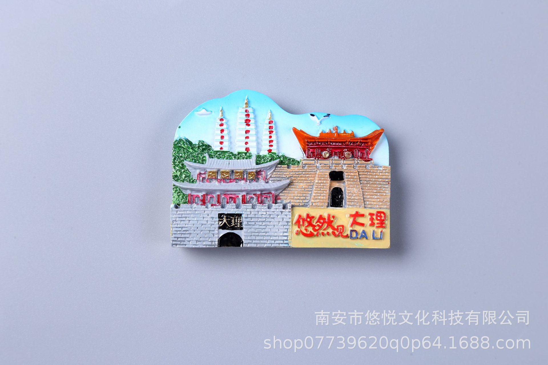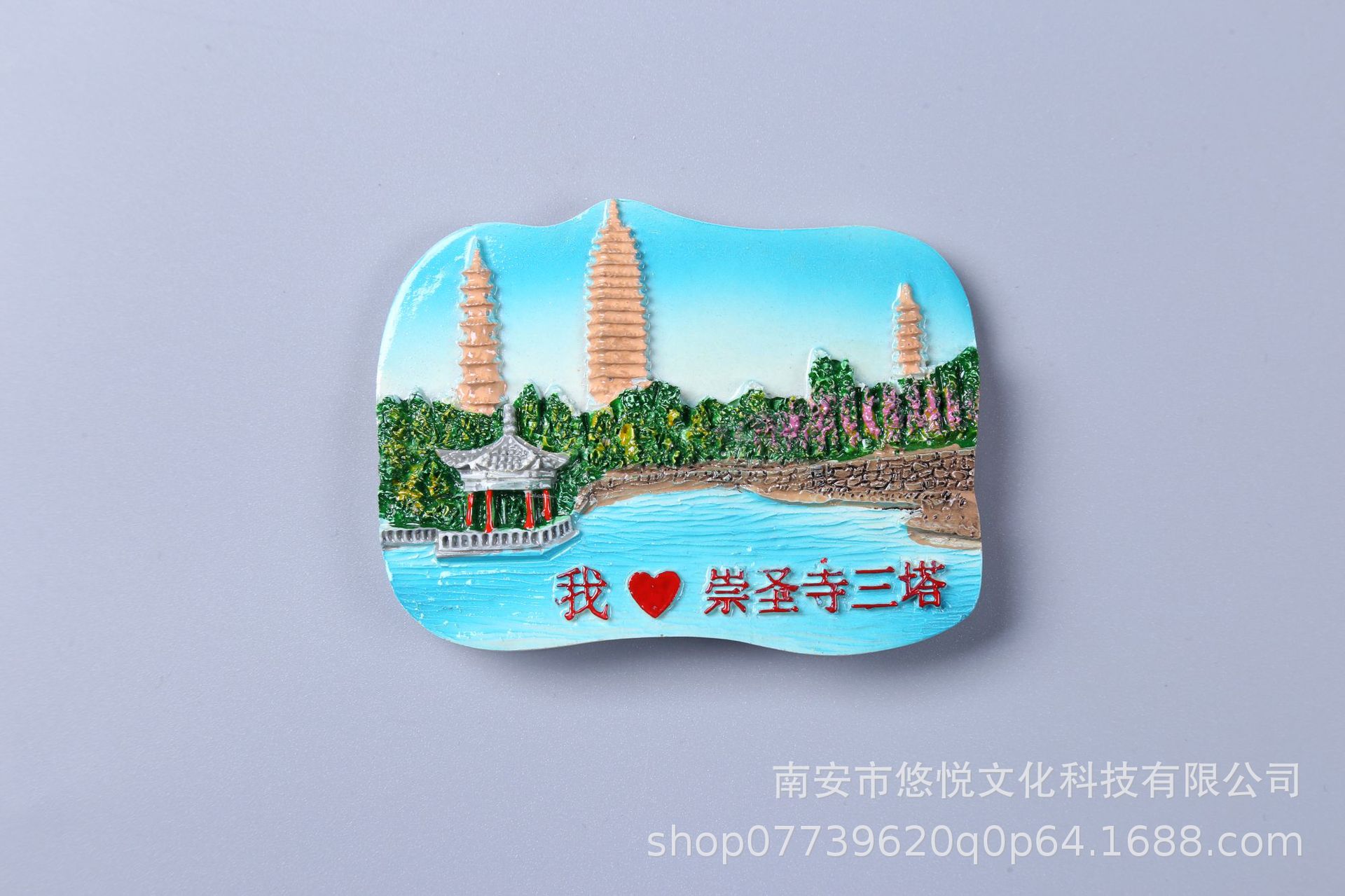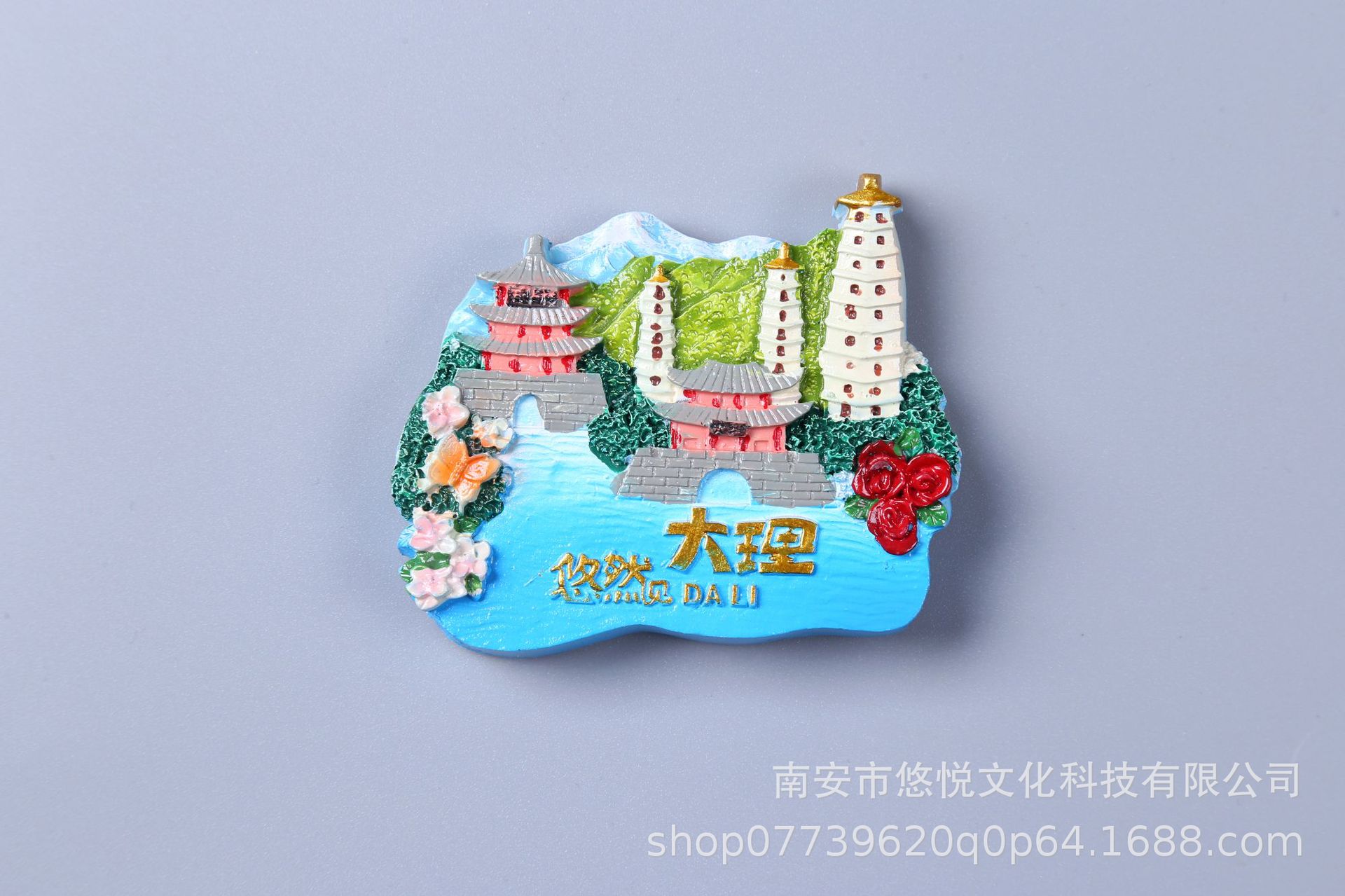 Yunnan Dali Wuhua Tower Tengchong Erhaiyang Pedestrian Street Double Corridor Three Towers Resin Workers Refrigerator Sticks Scenic Tourism Commemorative