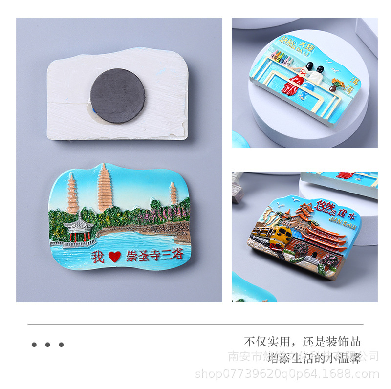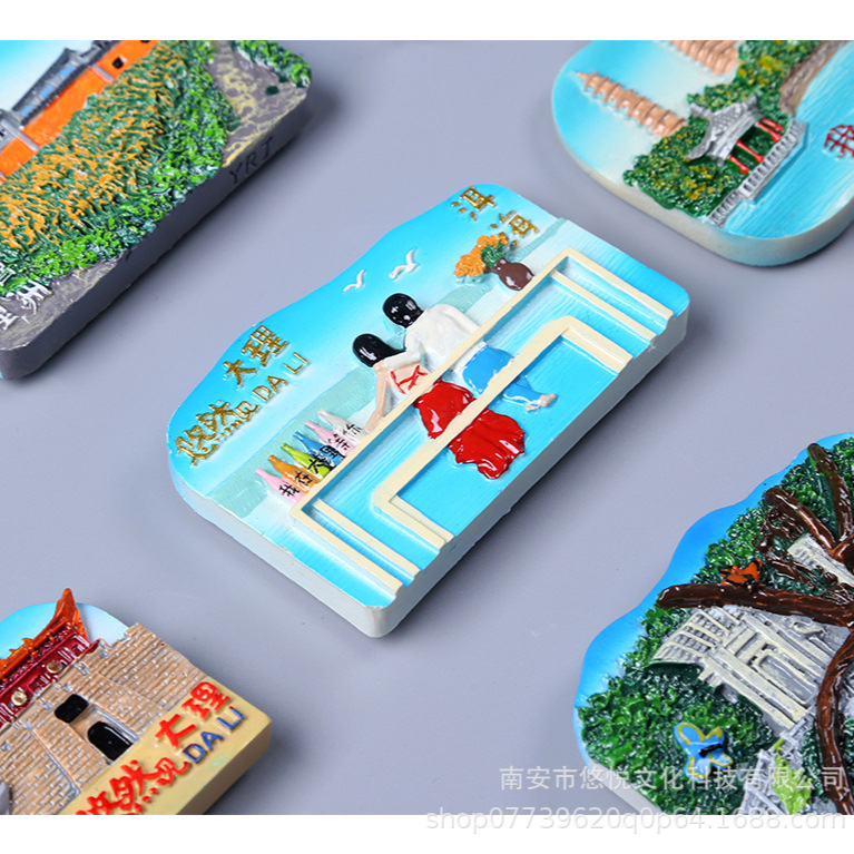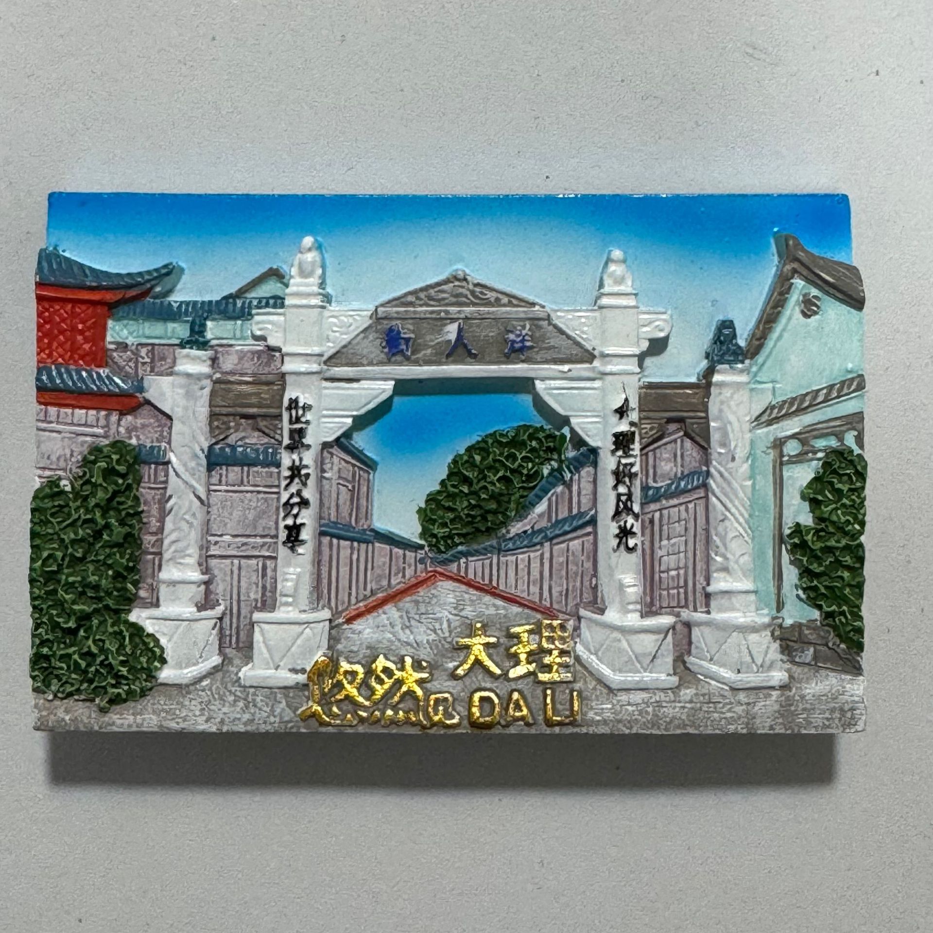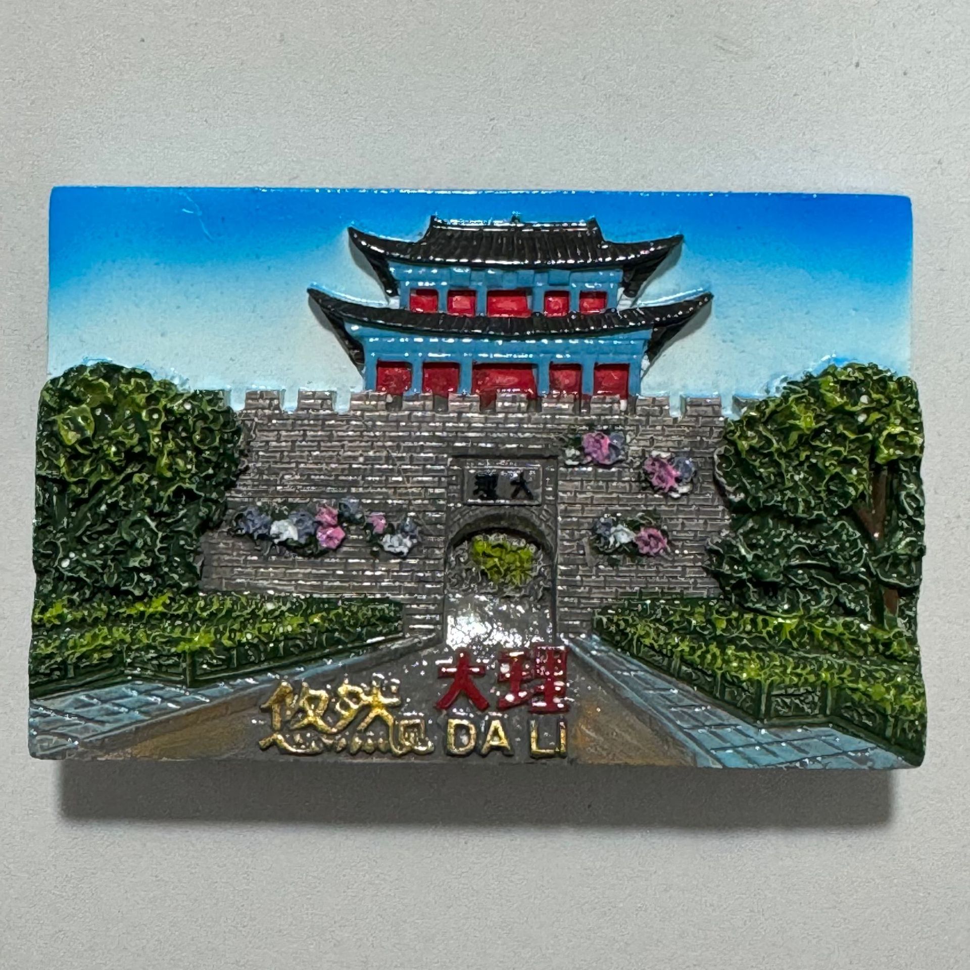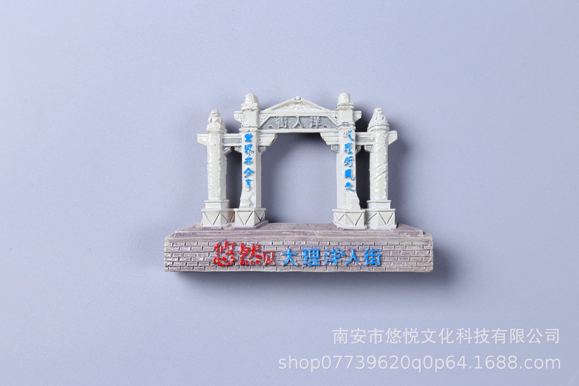Yunnan Dali Wuhua Tower Tengchong Erhaiyang Pedestrian Street Double Corridor Three Towers Resin Workers Refrigerator Sticks Scenic Tourism Commemorative