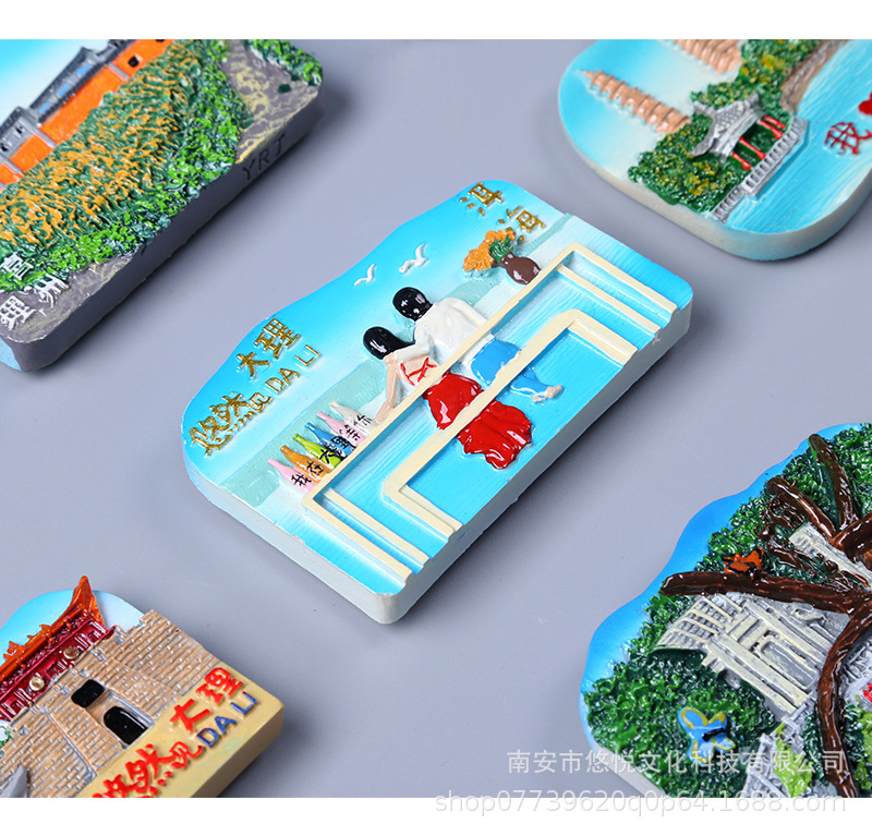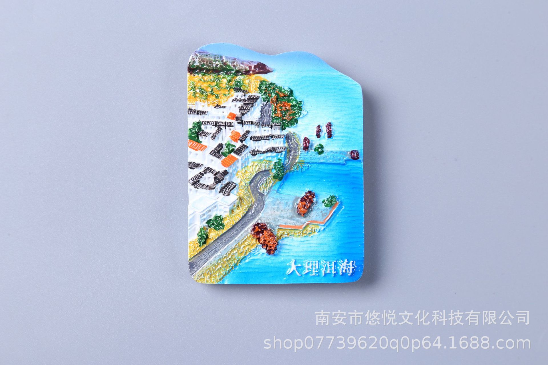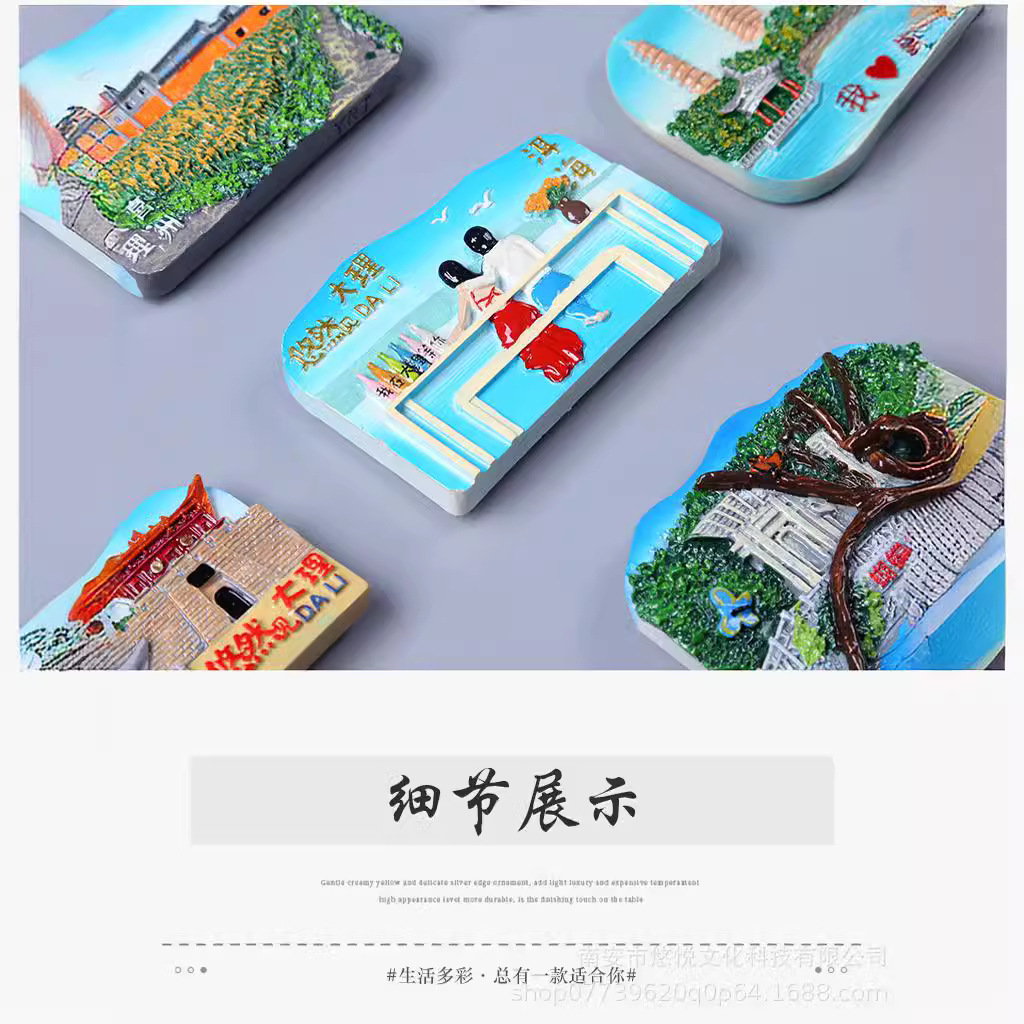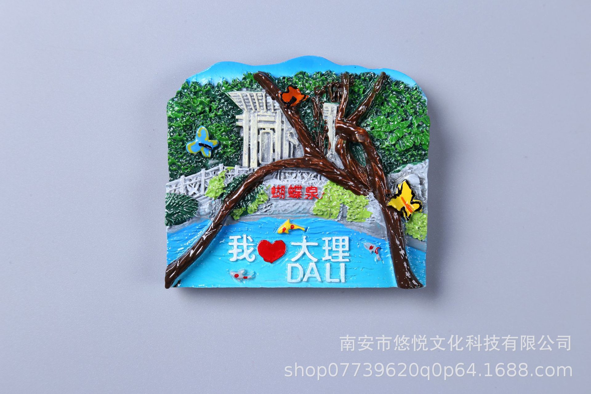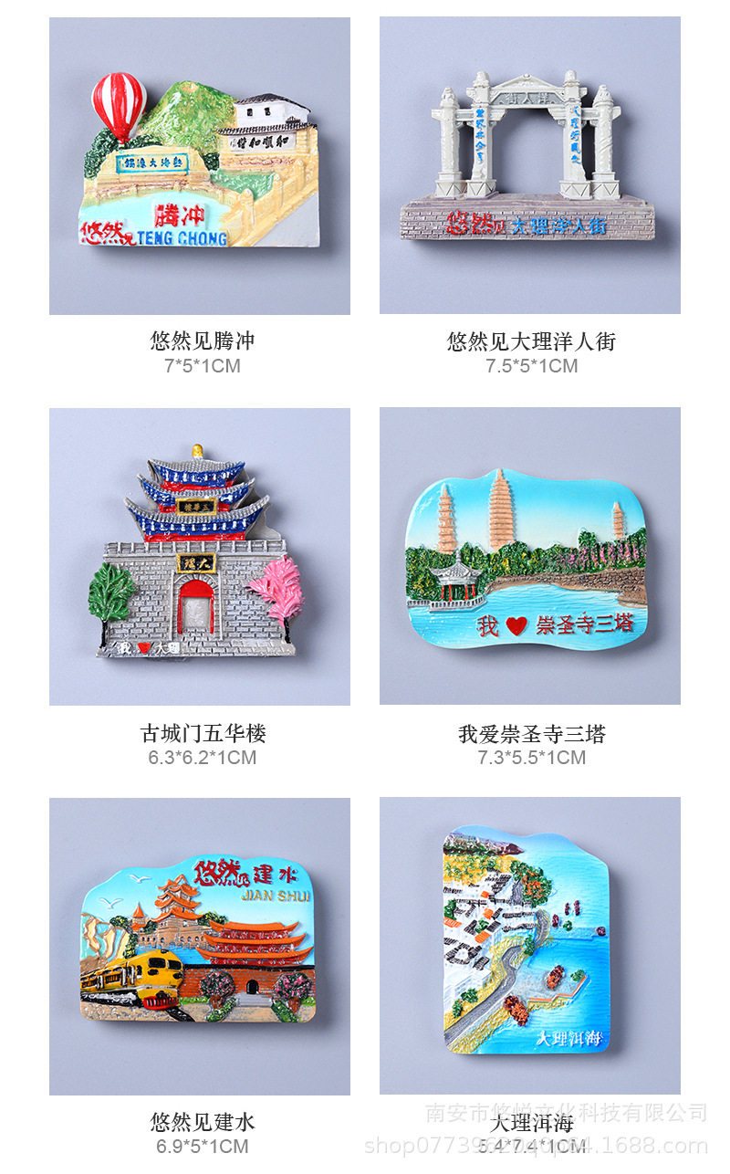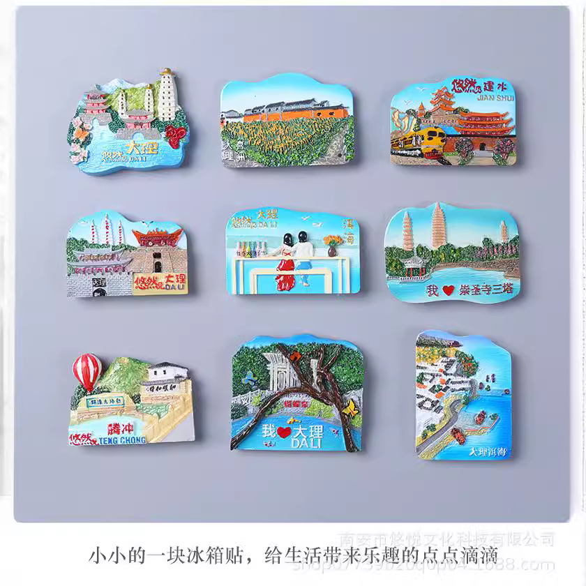 Yunnan Dali Wuhua Tower Tengchong Erhaiyang Pedestrian Street Double Corridor Three Towers Resin Workers Refrigerator Sticks Scenic Tourism Commemorative