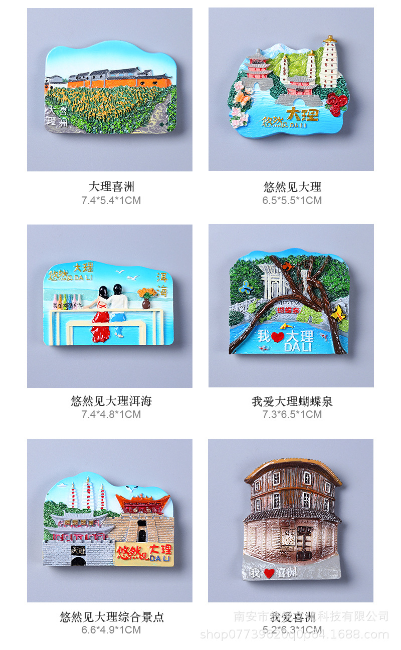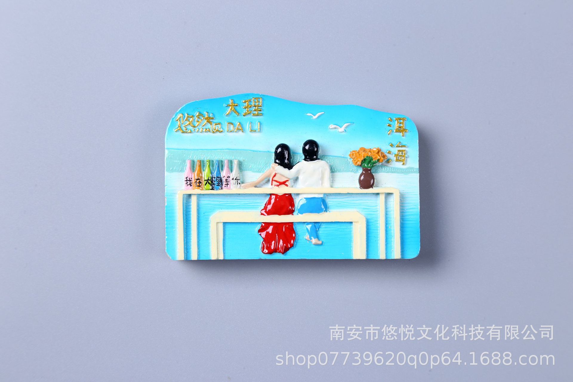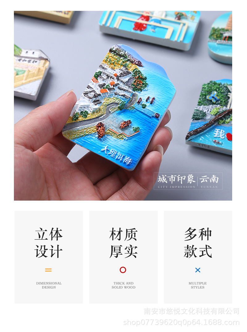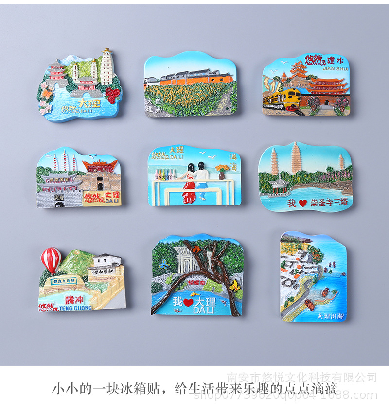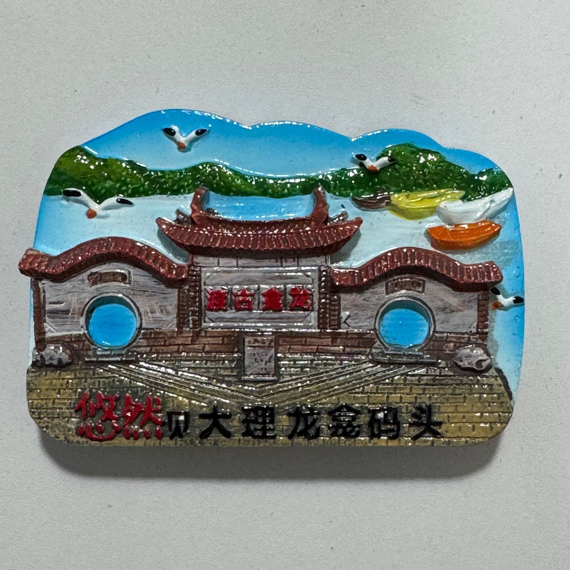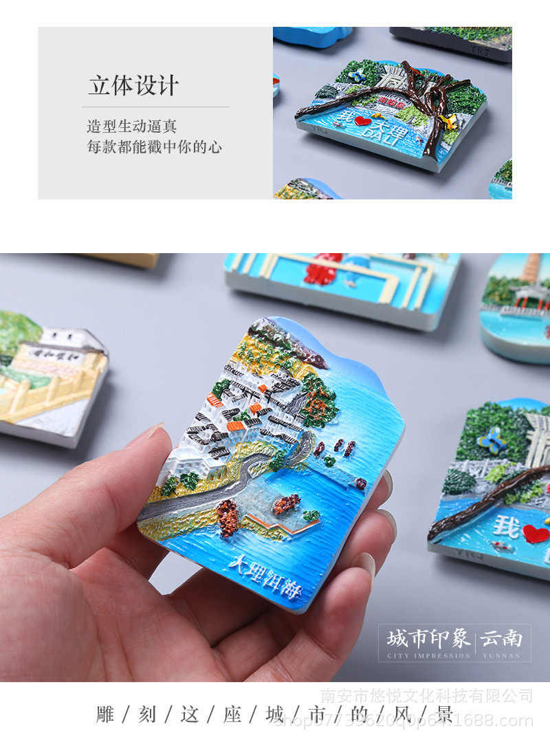 Yunnan Dali Wuhua Tower Tengchong Erhaiyang Pedestrian Street Double Corridor Three Towers Resin Workers Refrigerator Sticks Scenic Tourism Commemorative