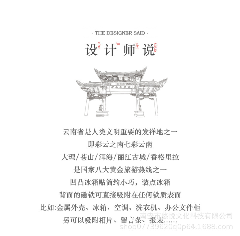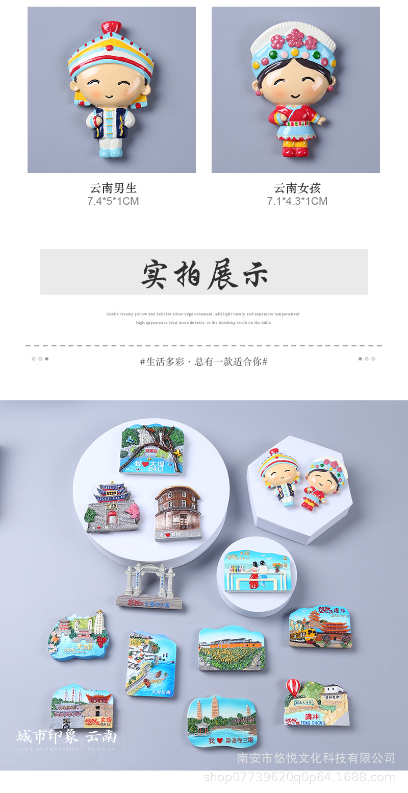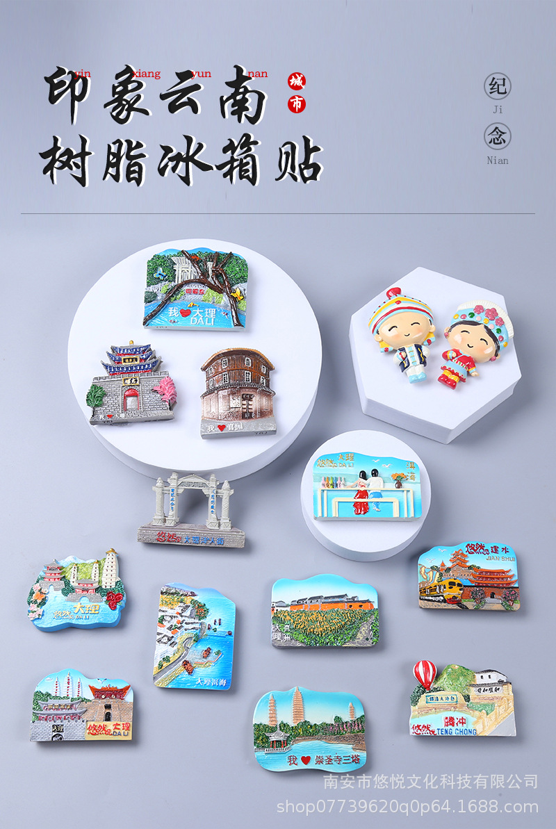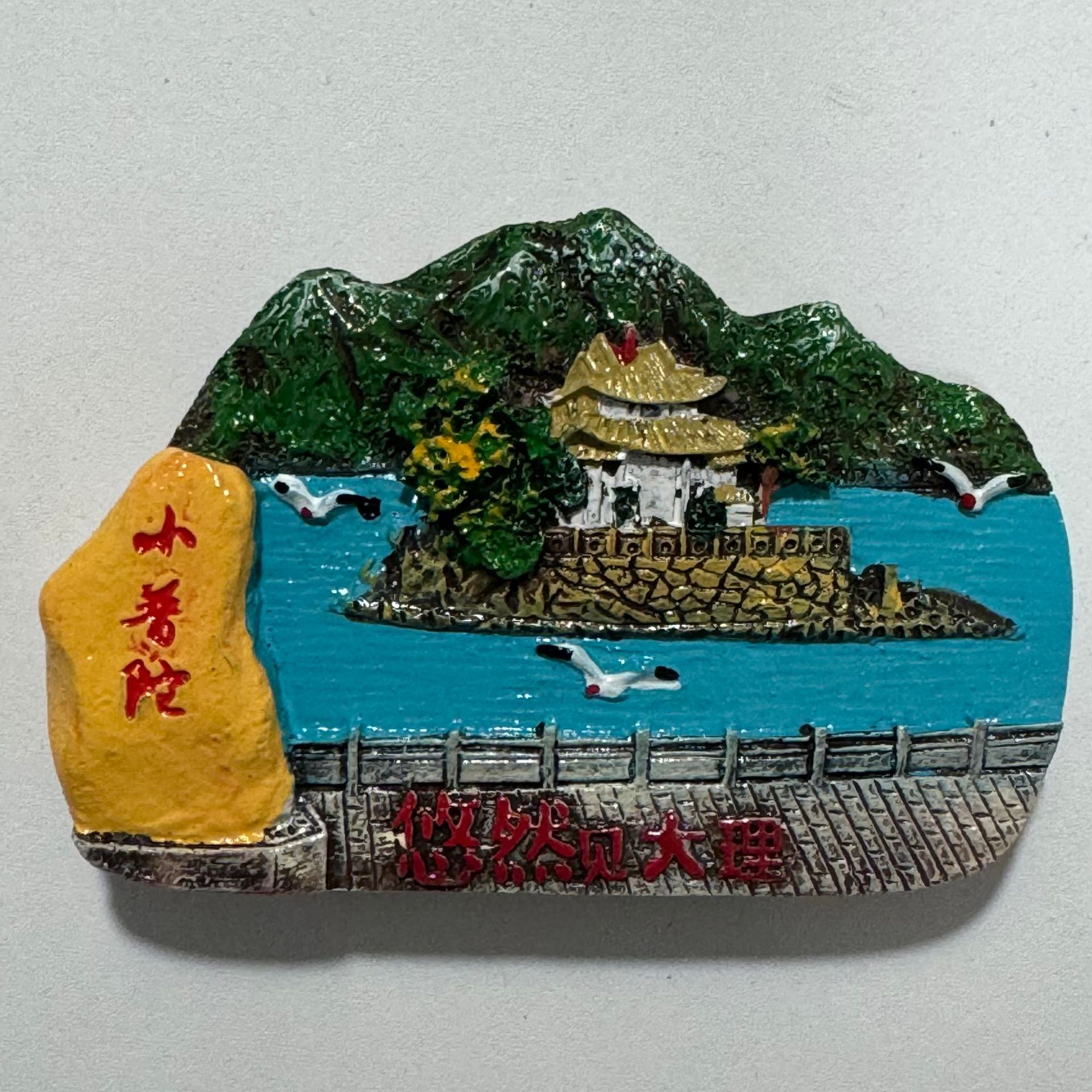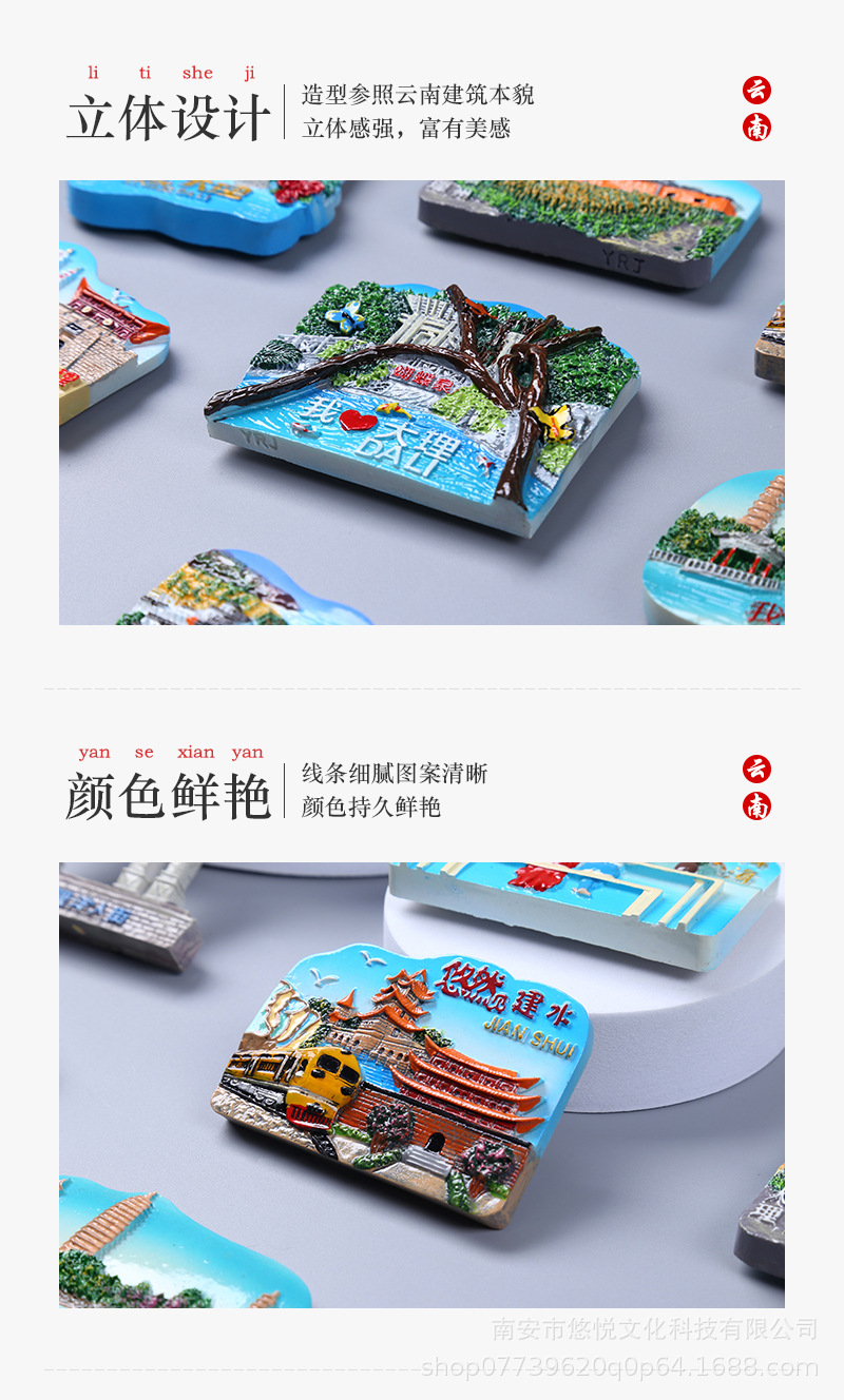 Yunnan Dali Wuhua Tower Tengchong Erhaiyang Pedestrian Street Double Corridor Three Towers Resin Workers Refrigerator Sticks Scenic Tourism Commemorative