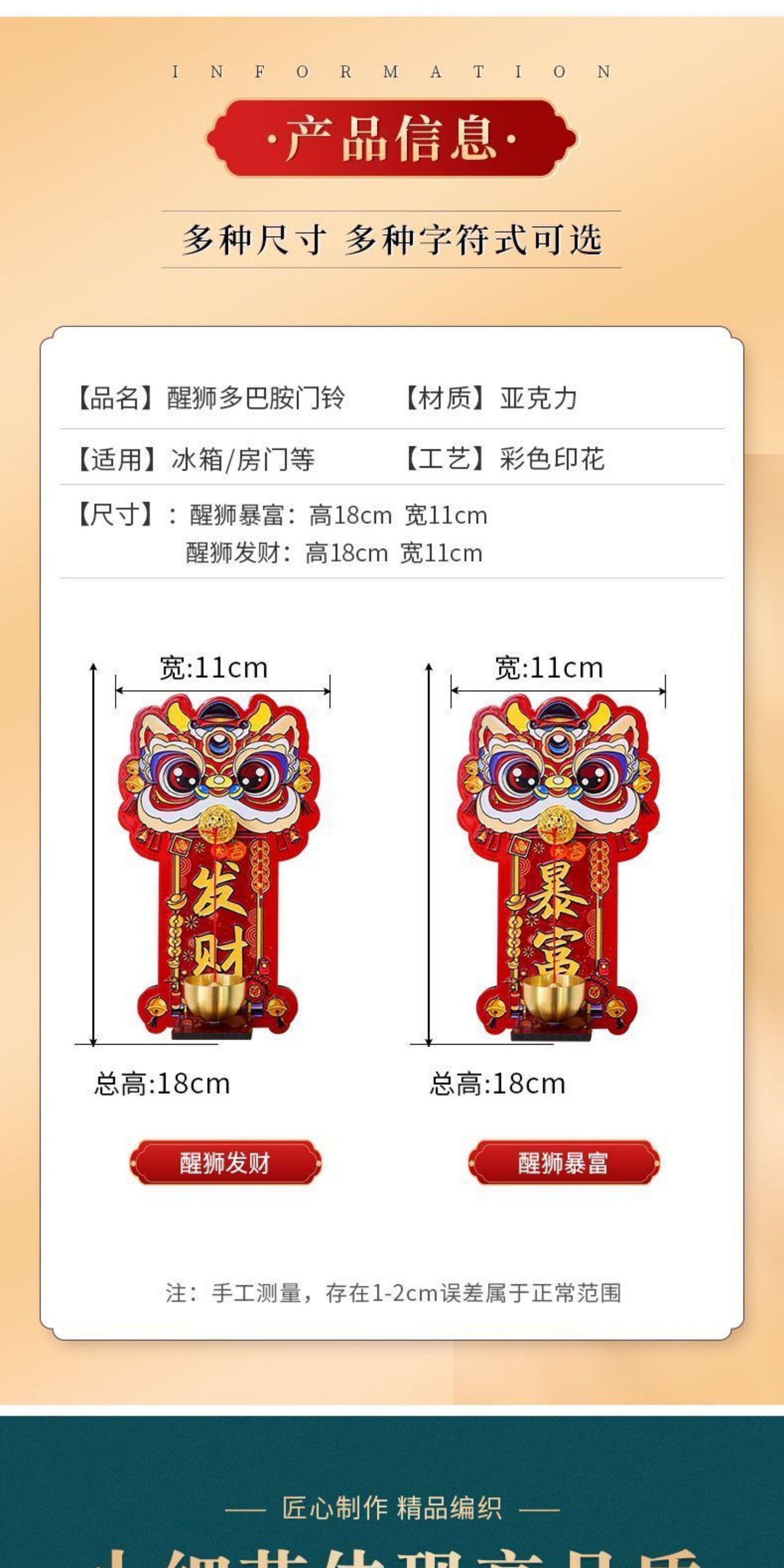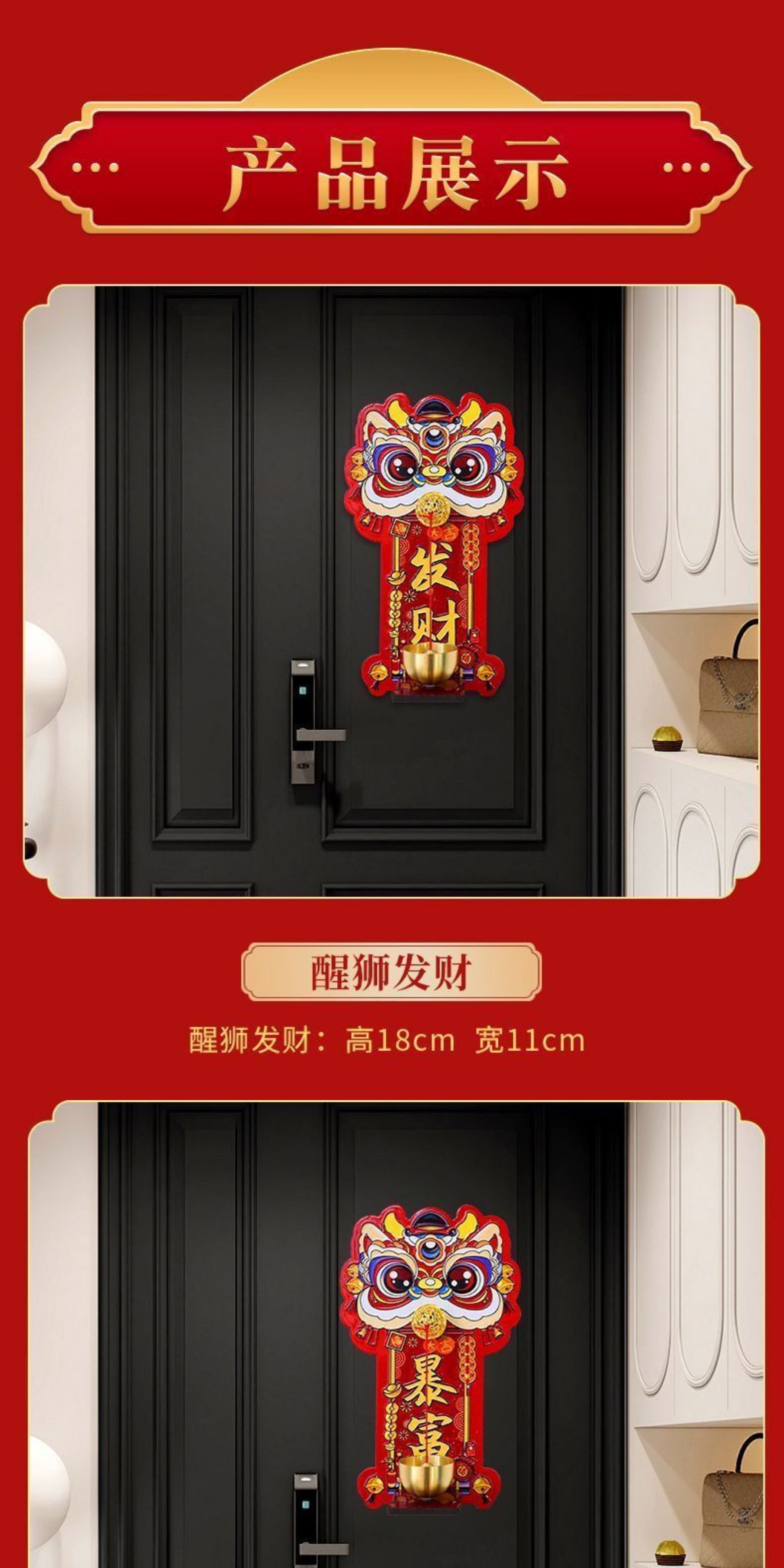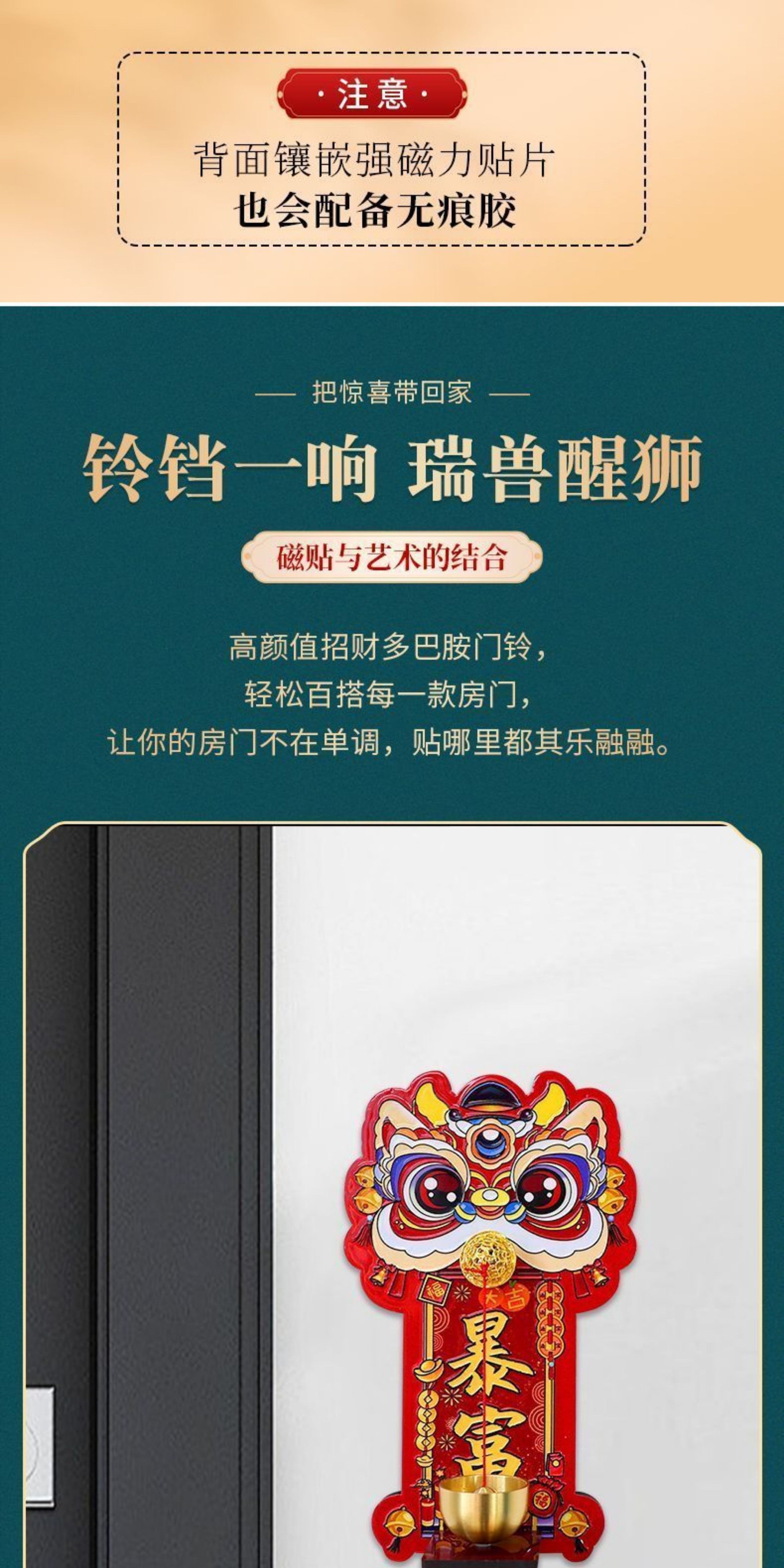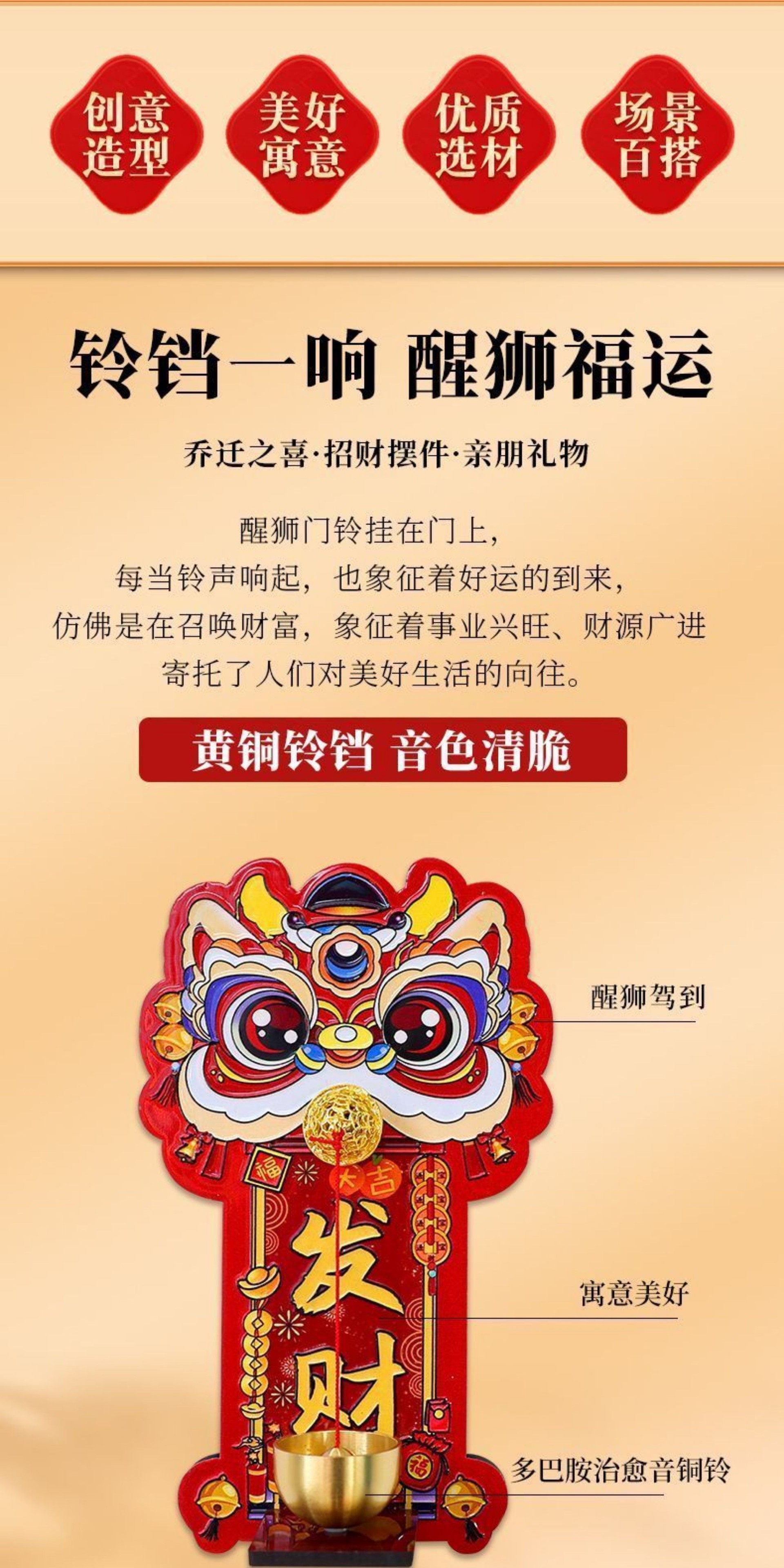 New Lion Awakening Magnetic Doorbell New Year Entrance Door Decoration Copper Bell Refrigerator Paste New Year Atmosphere Decoration Pendant