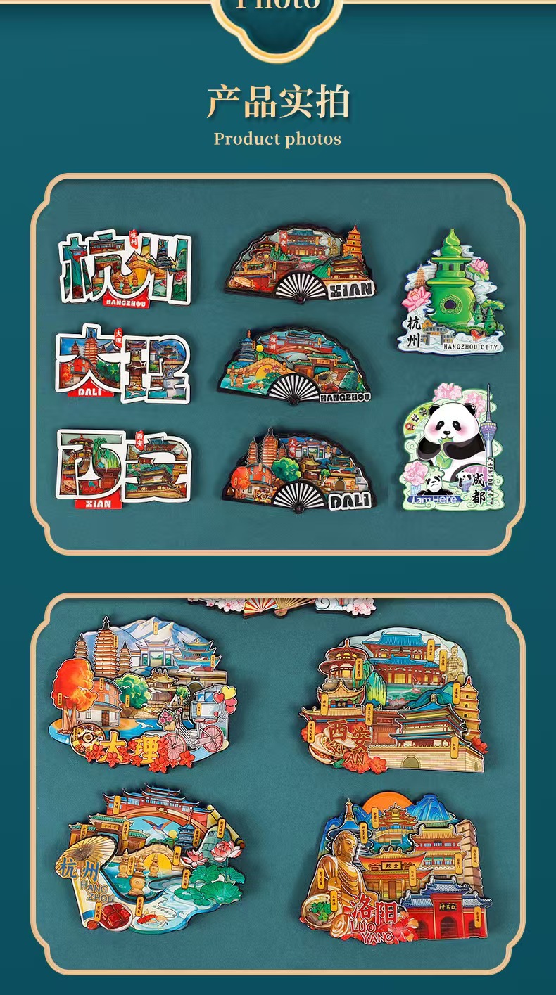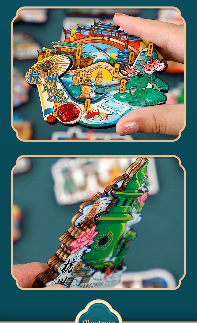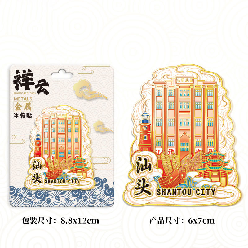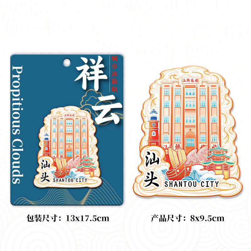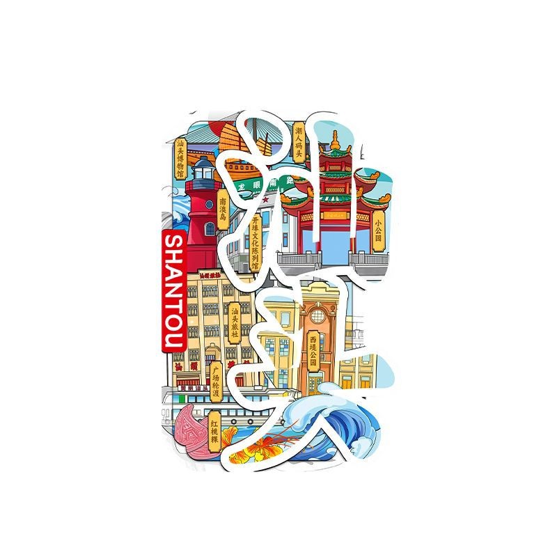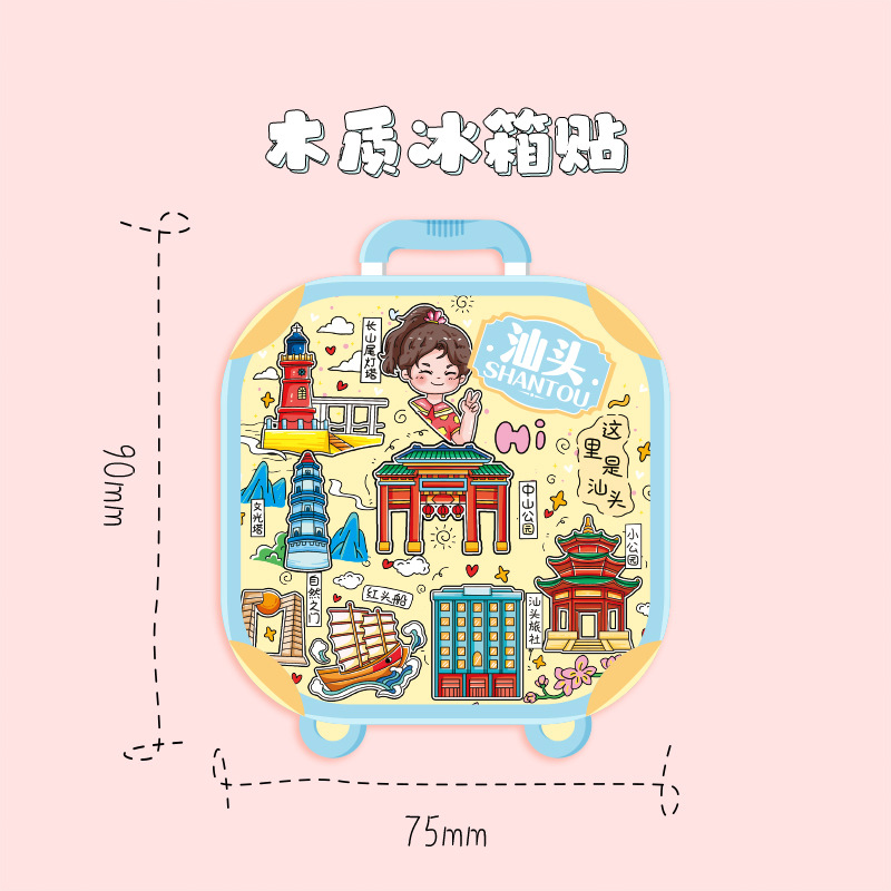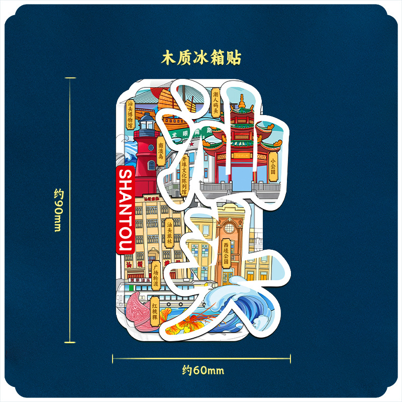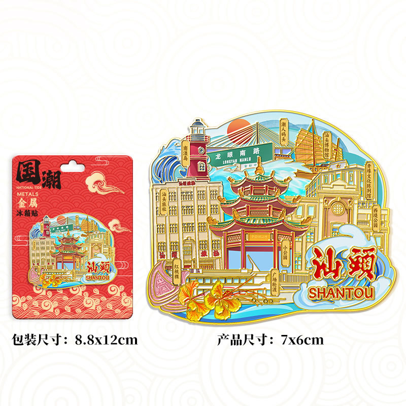 Guangdong Shantou Old Town Pier Nan'ao Island Wooden Metal Cultural and Creative Magnetic Tourism Memorial Building City Refrigerator Sticker