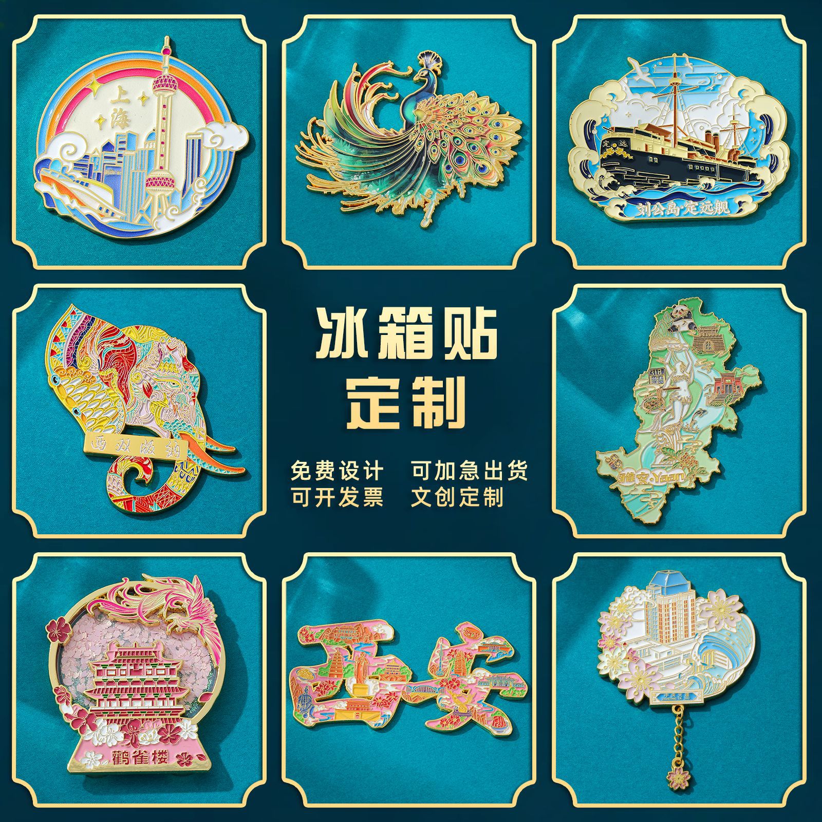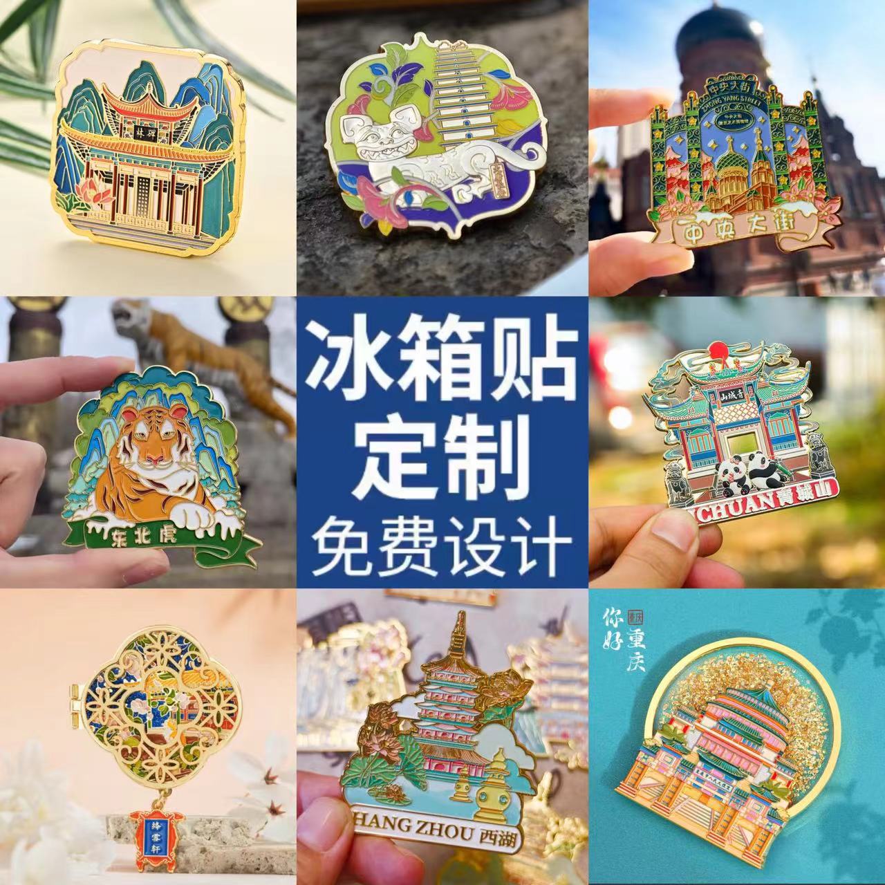 Customized metal refrigerator stickers, cultural and creative commemorative gifts, cartoon patterns, architecture, scenic spots, magnetic stickers