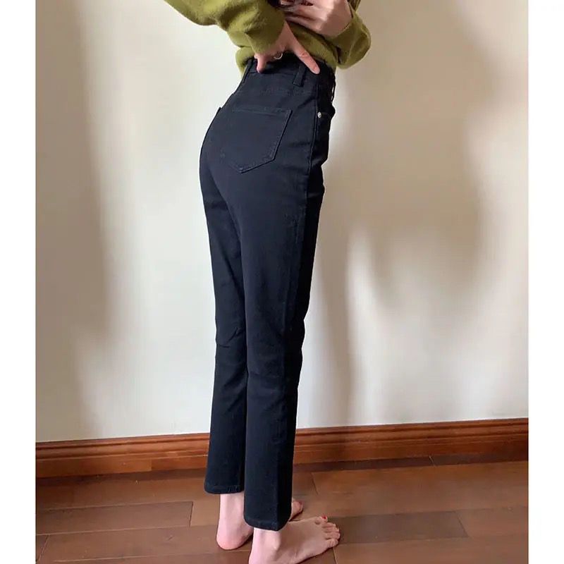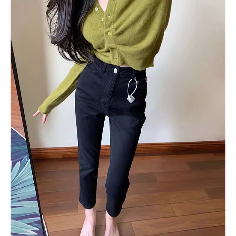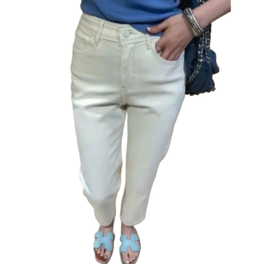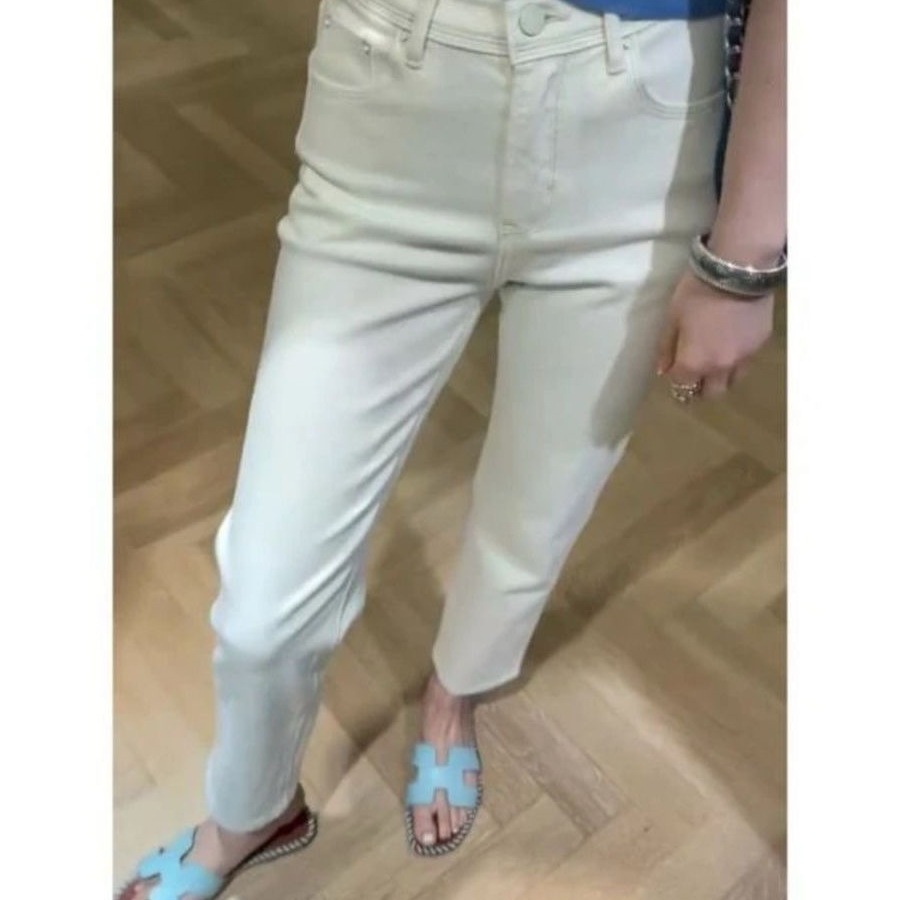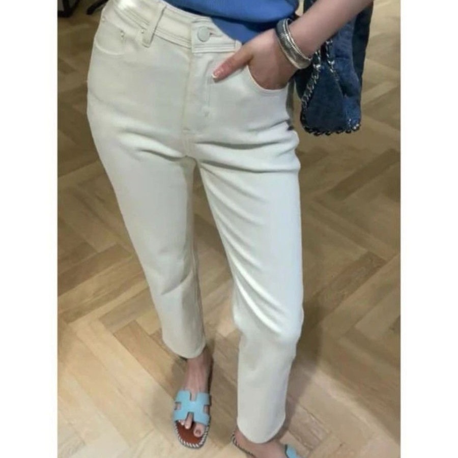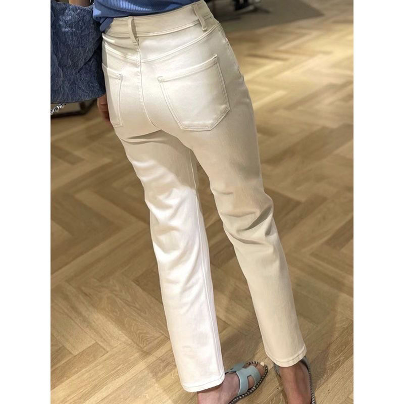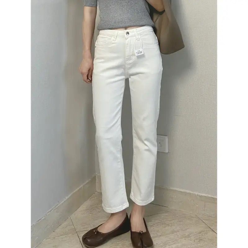 2025年秋季新款欧货高腰显瘦九分烟管窄版裤法棍直筒白色牛仔裤女