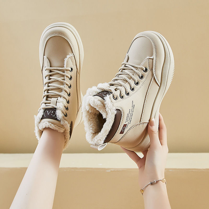 Winter new women's shoes with plush high top shoes, children's Korean version, thick soled sports, thick and warm cotton shoes, short boots, snow boots