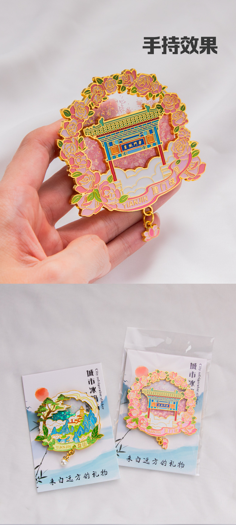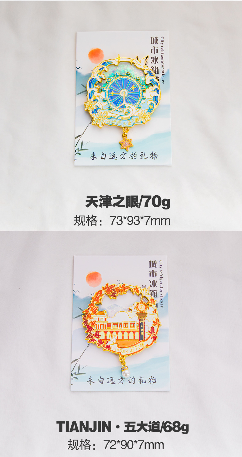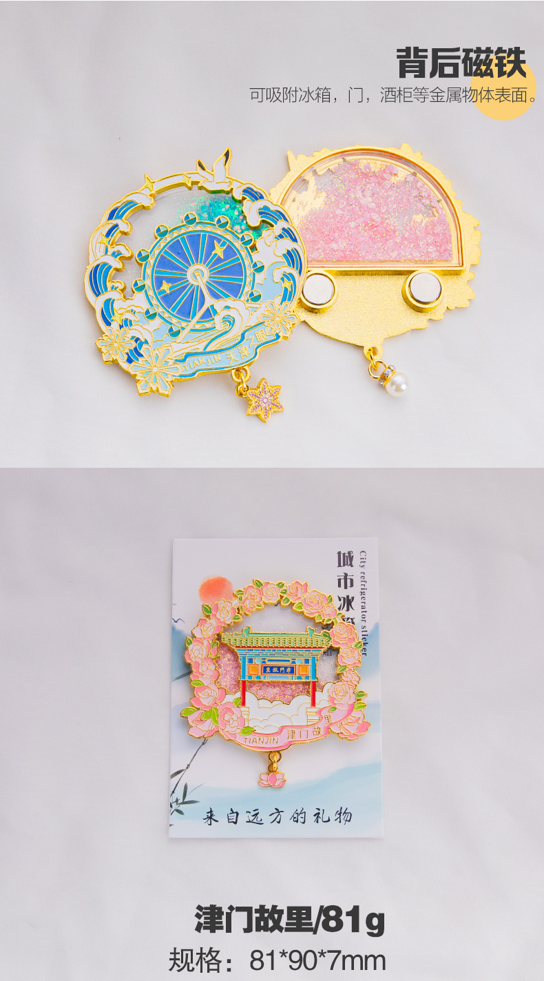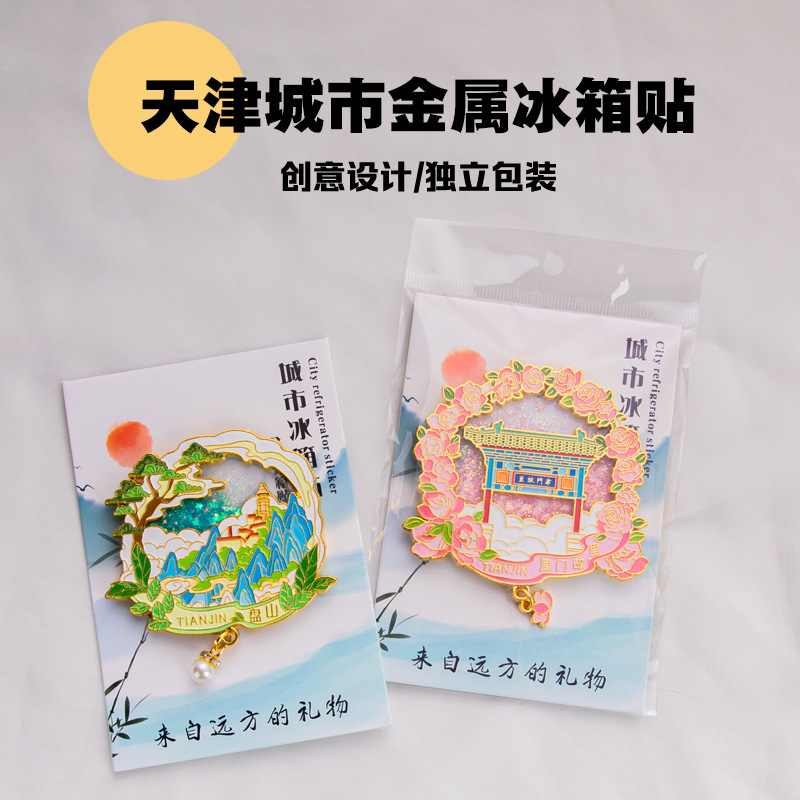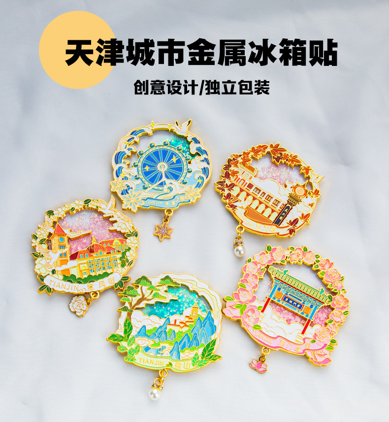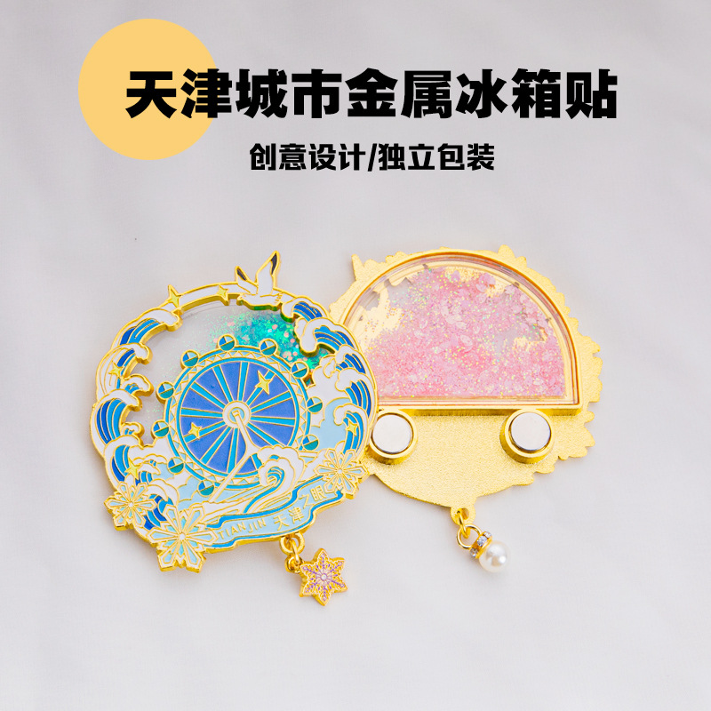 Tianjin Flowing Sand Style Metal Refrigerator Sticker in Stock Supply Magnetic Attraction City Tourism Scenic Area Cultural and Creative Gift Customization