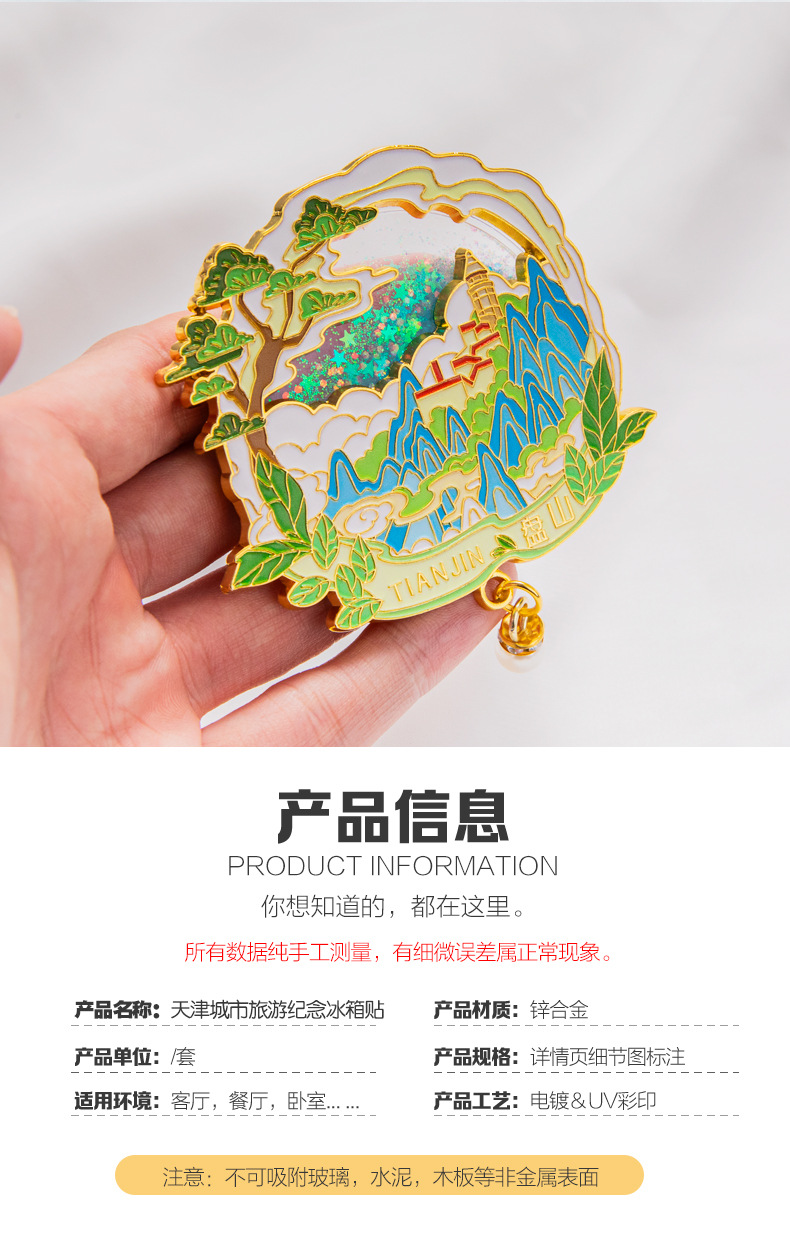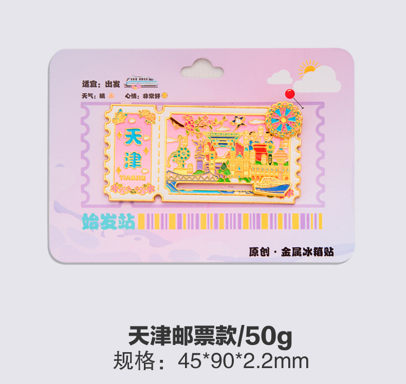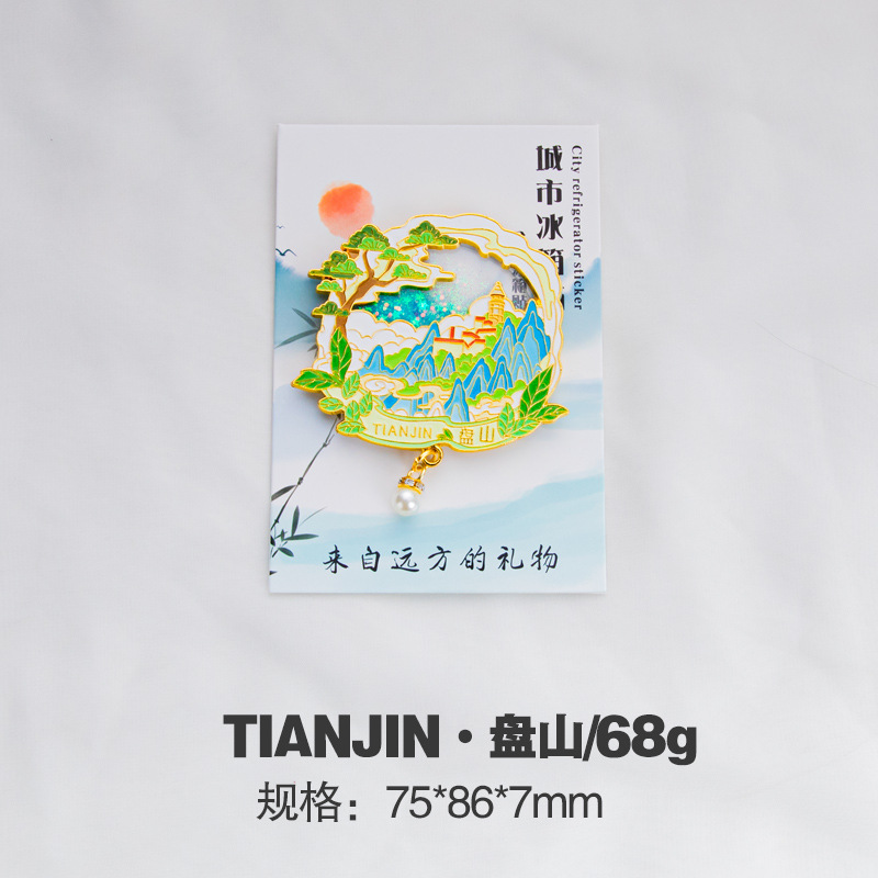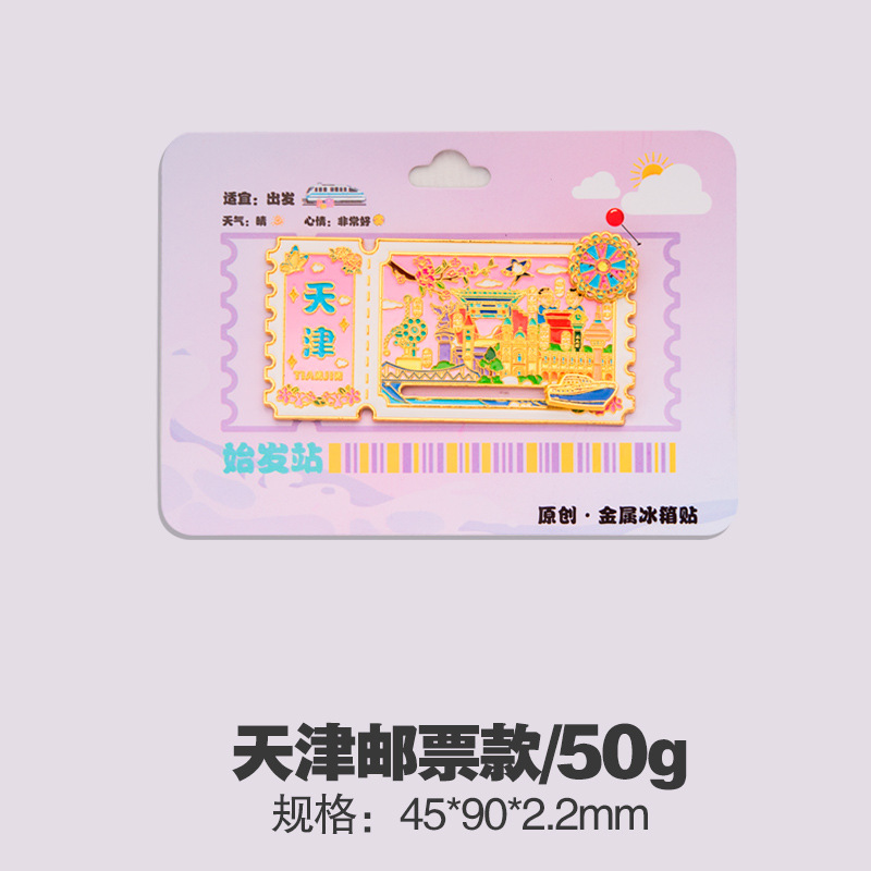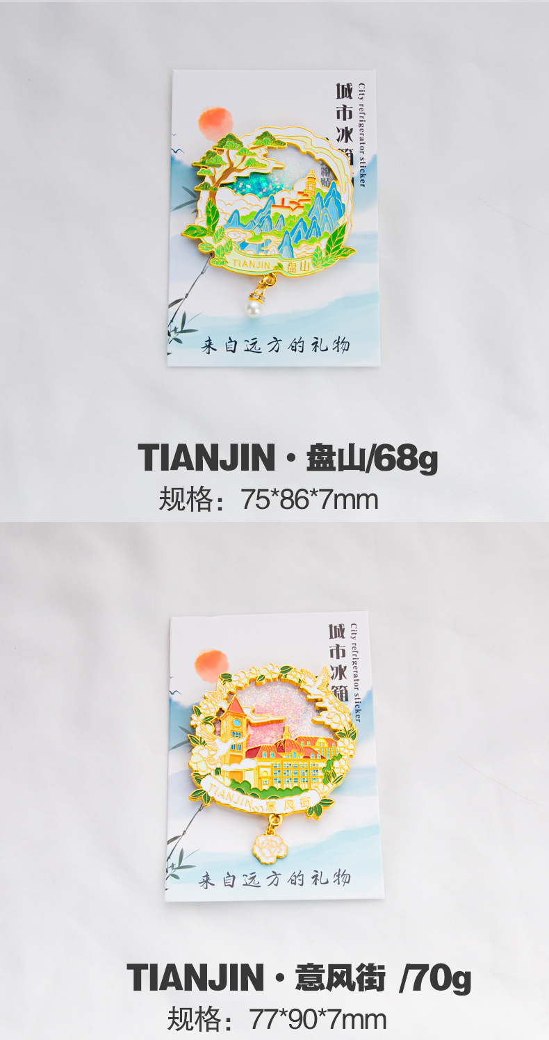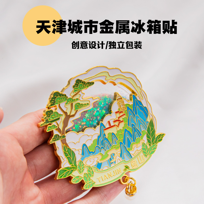 Tianjin Flowing Sand Style Metal Refrigerator Sticker in Stock Supply Magnetic Attraction City Tourism Scenic Area Cultural and Creative Gift Customization