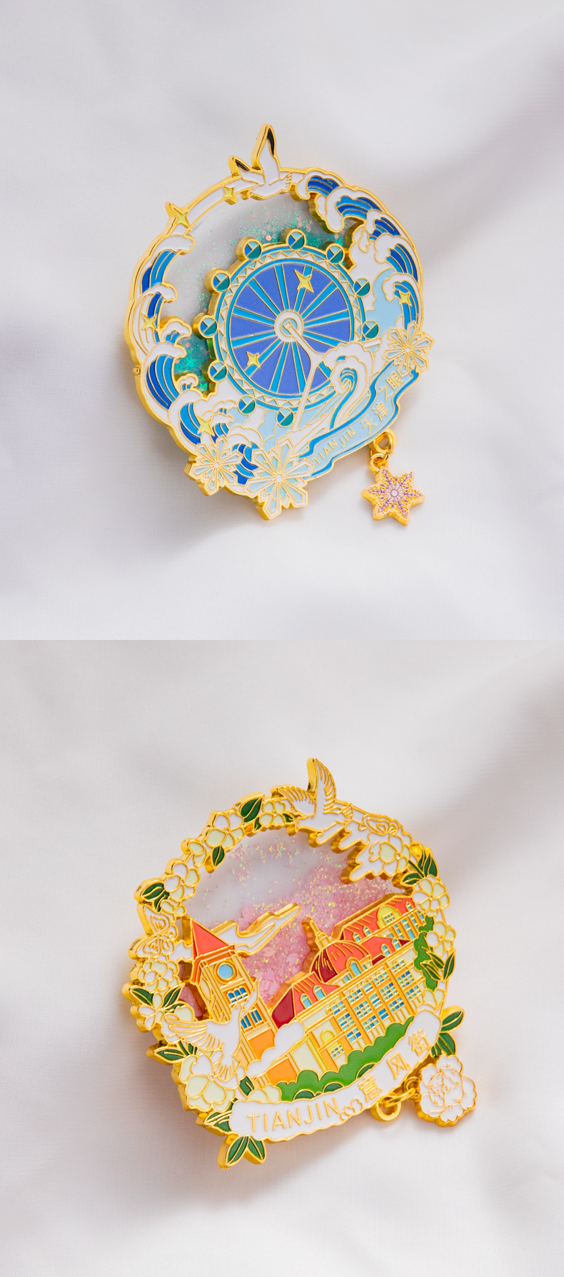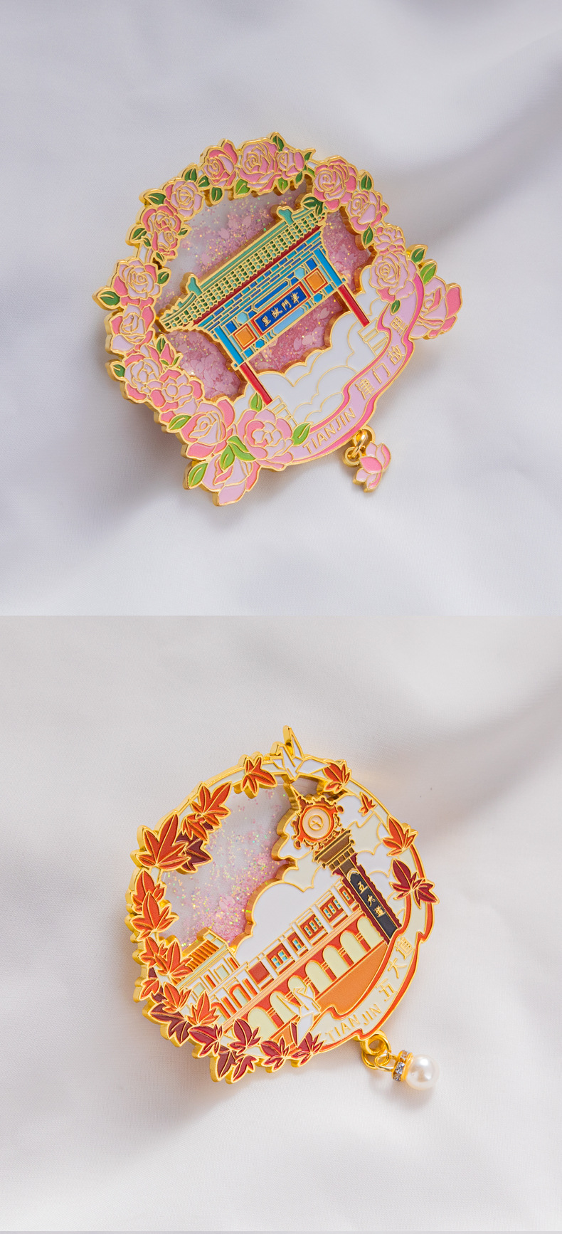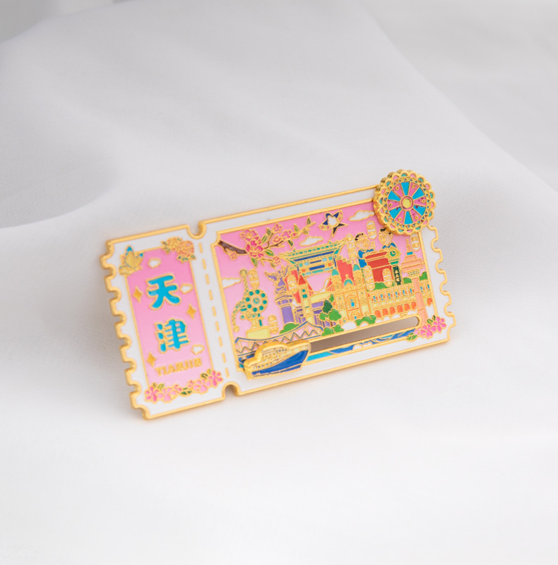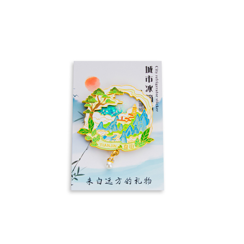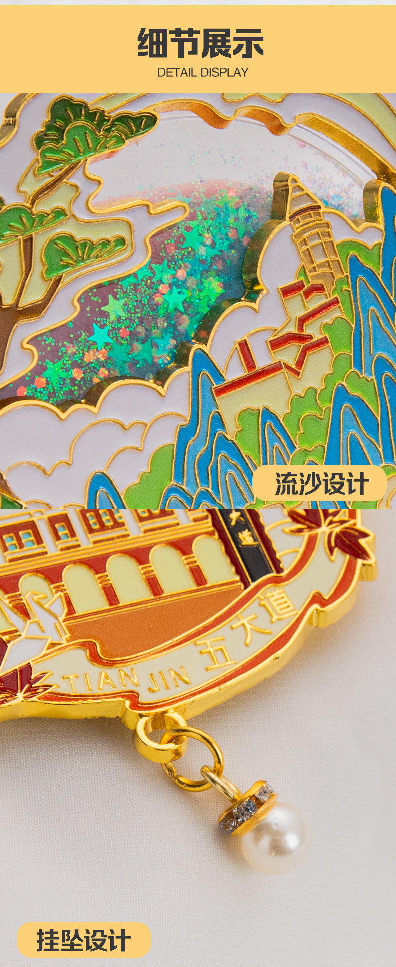 Tianjin Flowing Sand Style Metal Refrigerator Sticker in Stock Supply Magnetic Attraction City Tourism Scenic Area Cultural and Creative Gift Customization