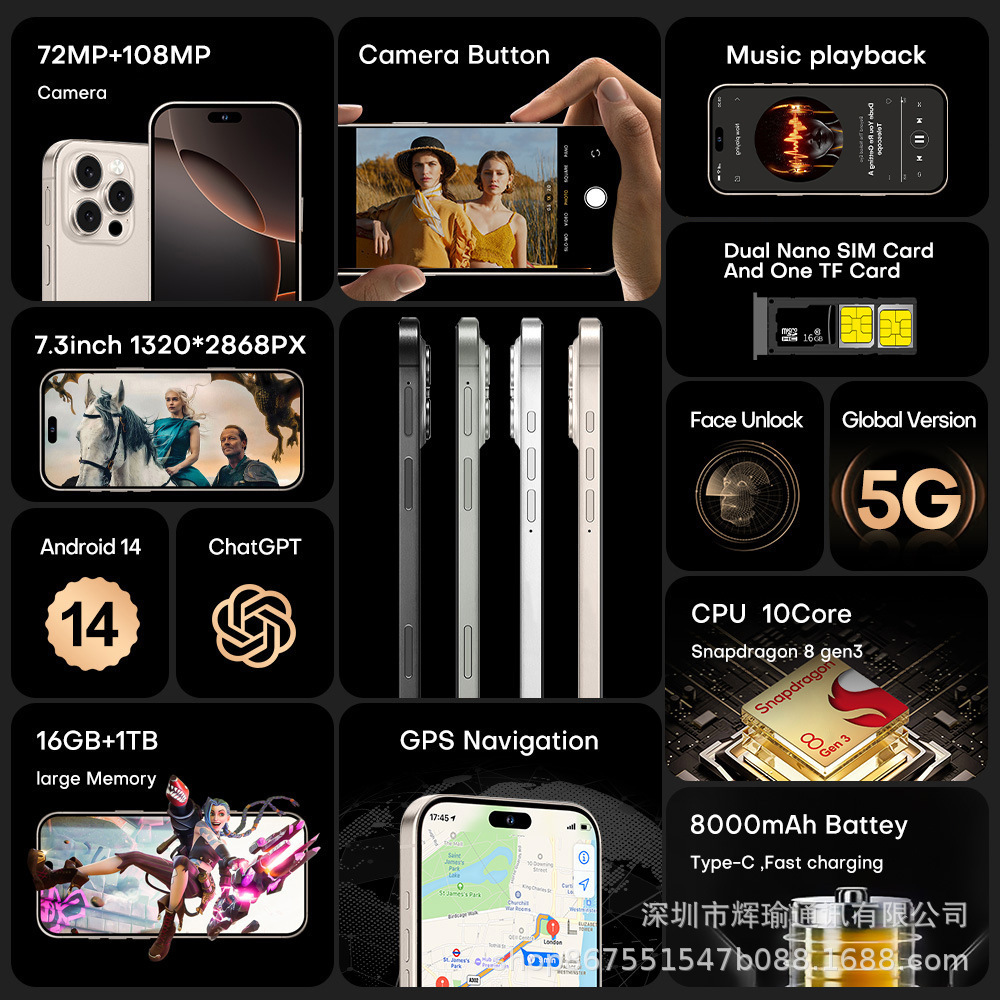 Трансграничная горячая модель смартфона 16Promax, обработанная на заводе и изготовленная по индивидуальному заказу, готовая продукция от производителя в Шэньчжэне, отечественный элитный бренд