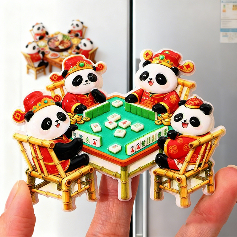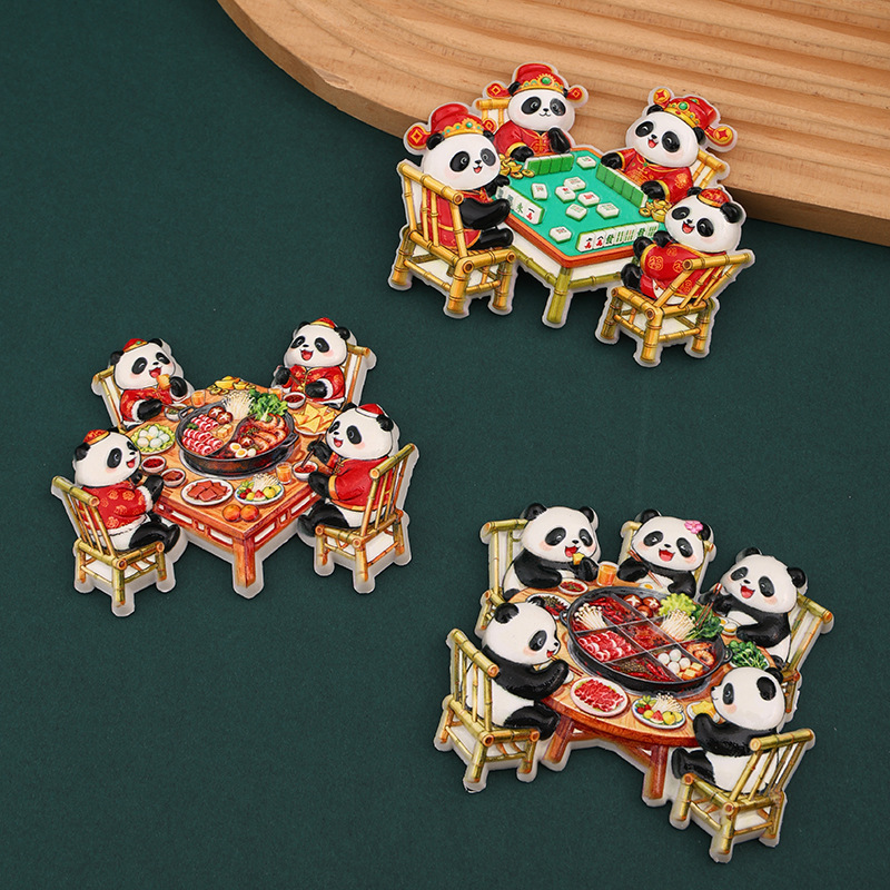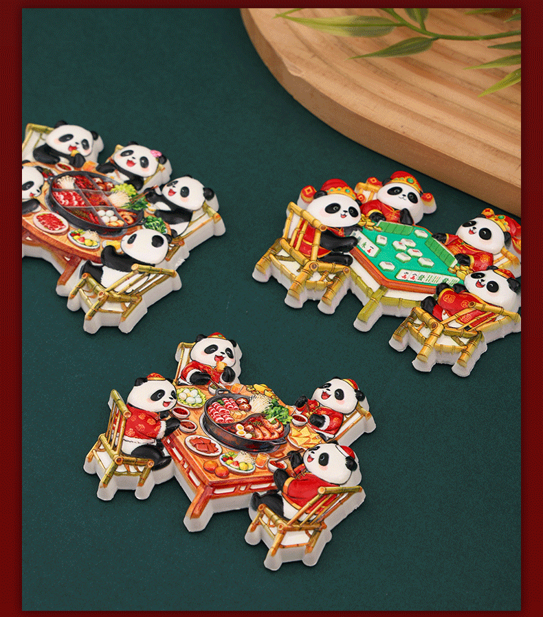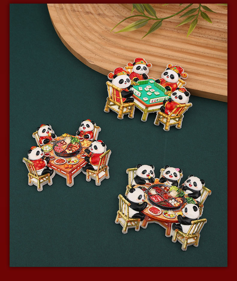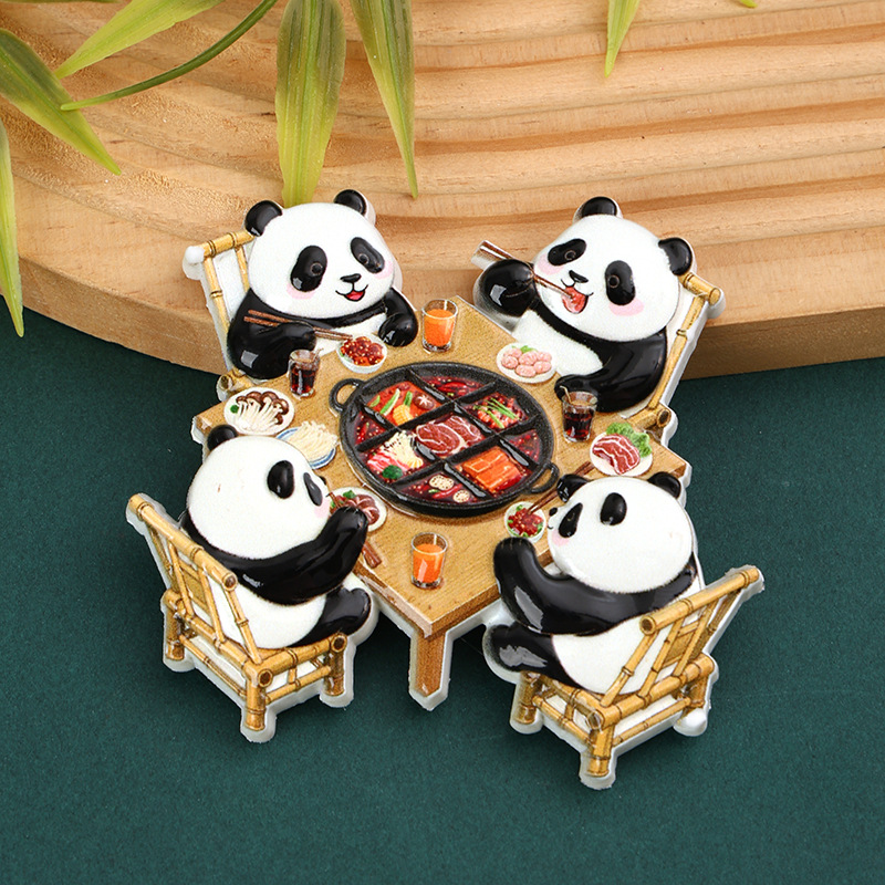 New Year's Sichuan giant pandas eat hotpot, magnetic refrigerator stickers, Chengdu clear tourism commemorative creative gifts, souvenirs