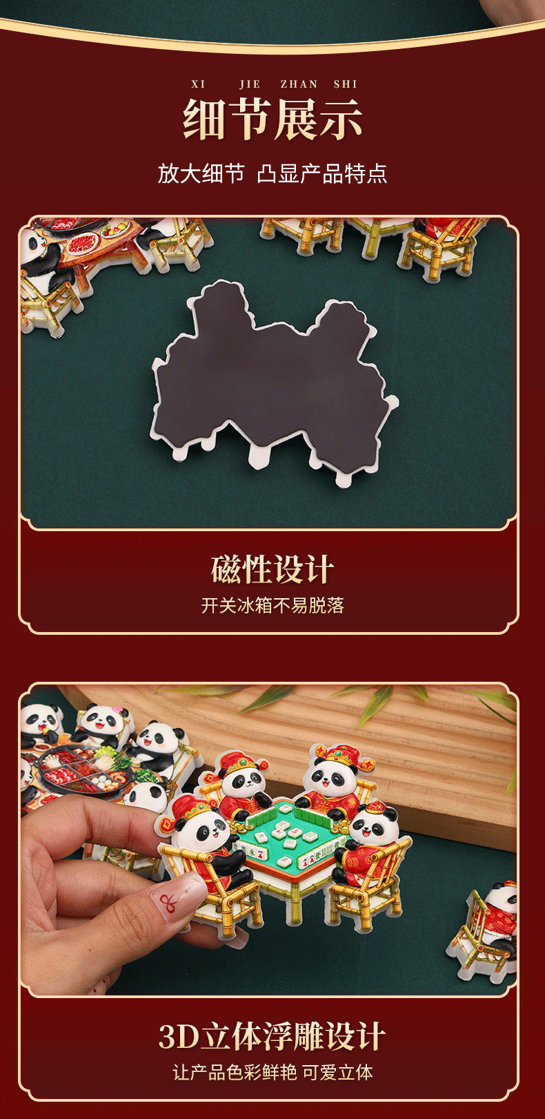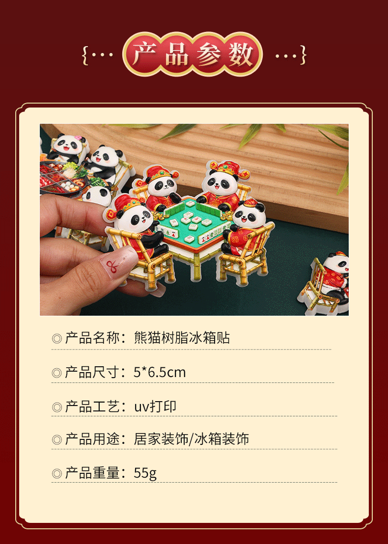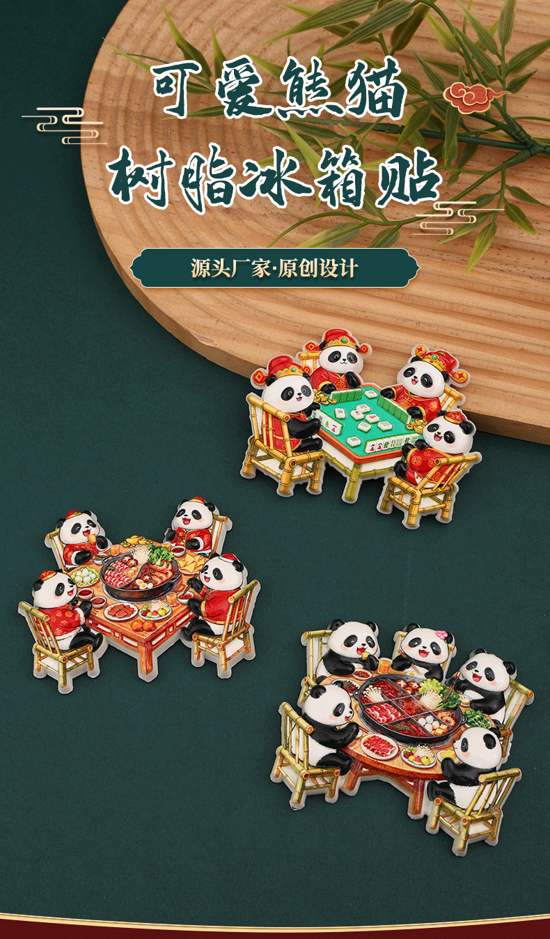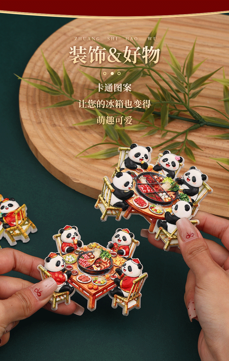 New Year's Sichuan giant pandas eat hotpot, magnetic refrigerator stickers, Chengdu clear tourism commemorative creative gifts, souvenirs