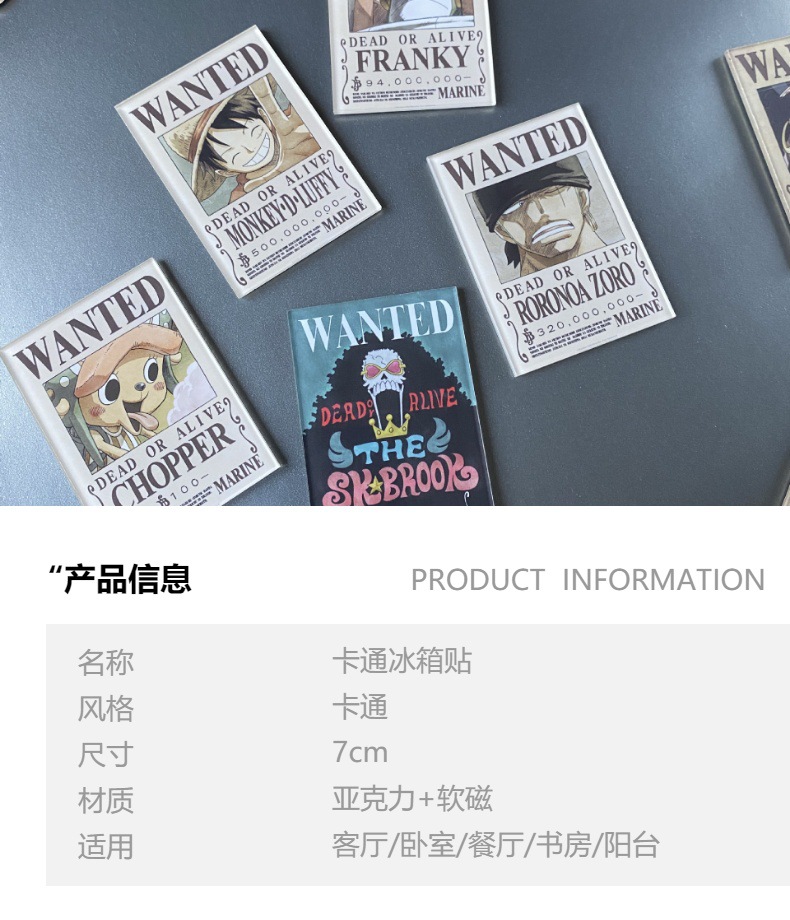 Creative cartoon anime One Piece peripheral bounty refrigerator sticker magnetic sticker decoration magnetic sticker magnet stone message sticker