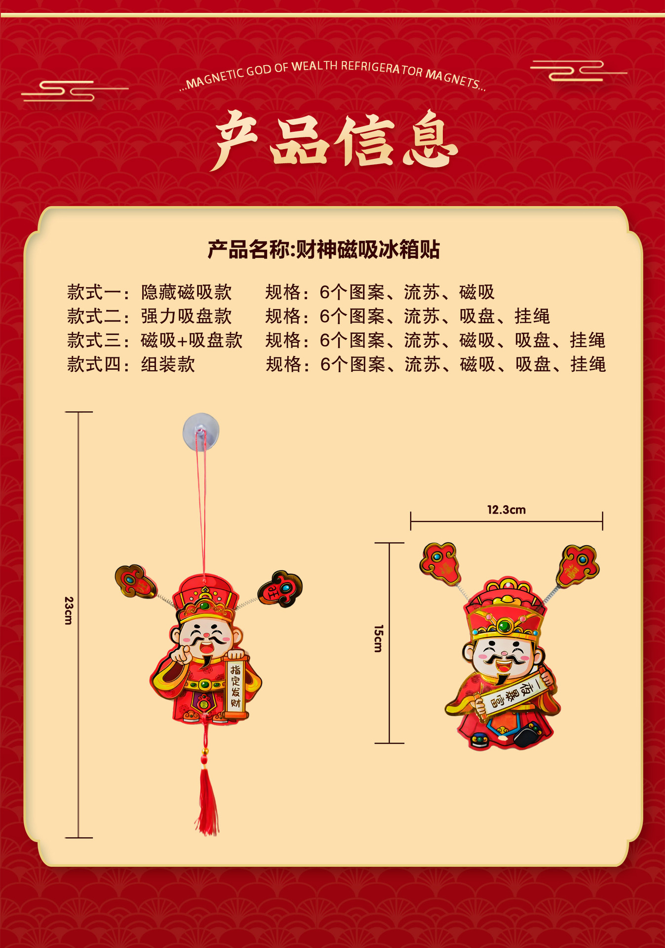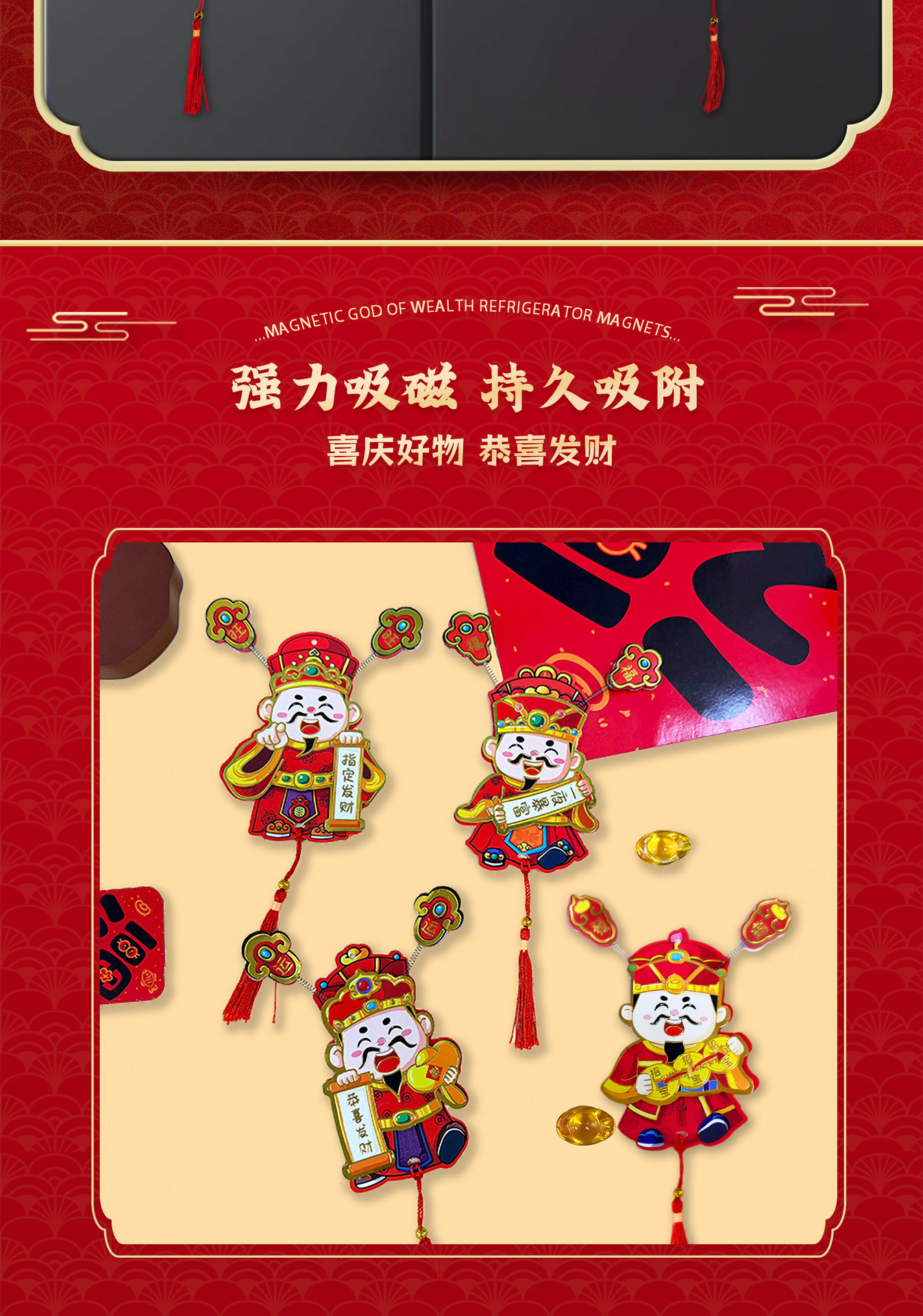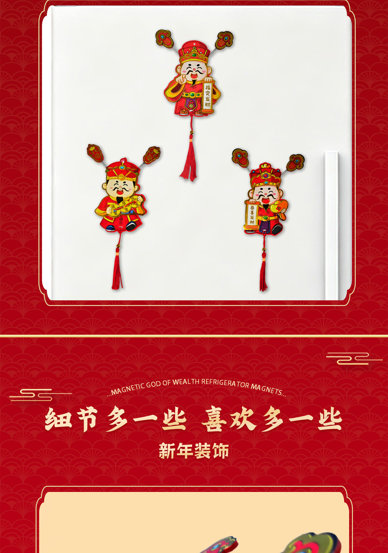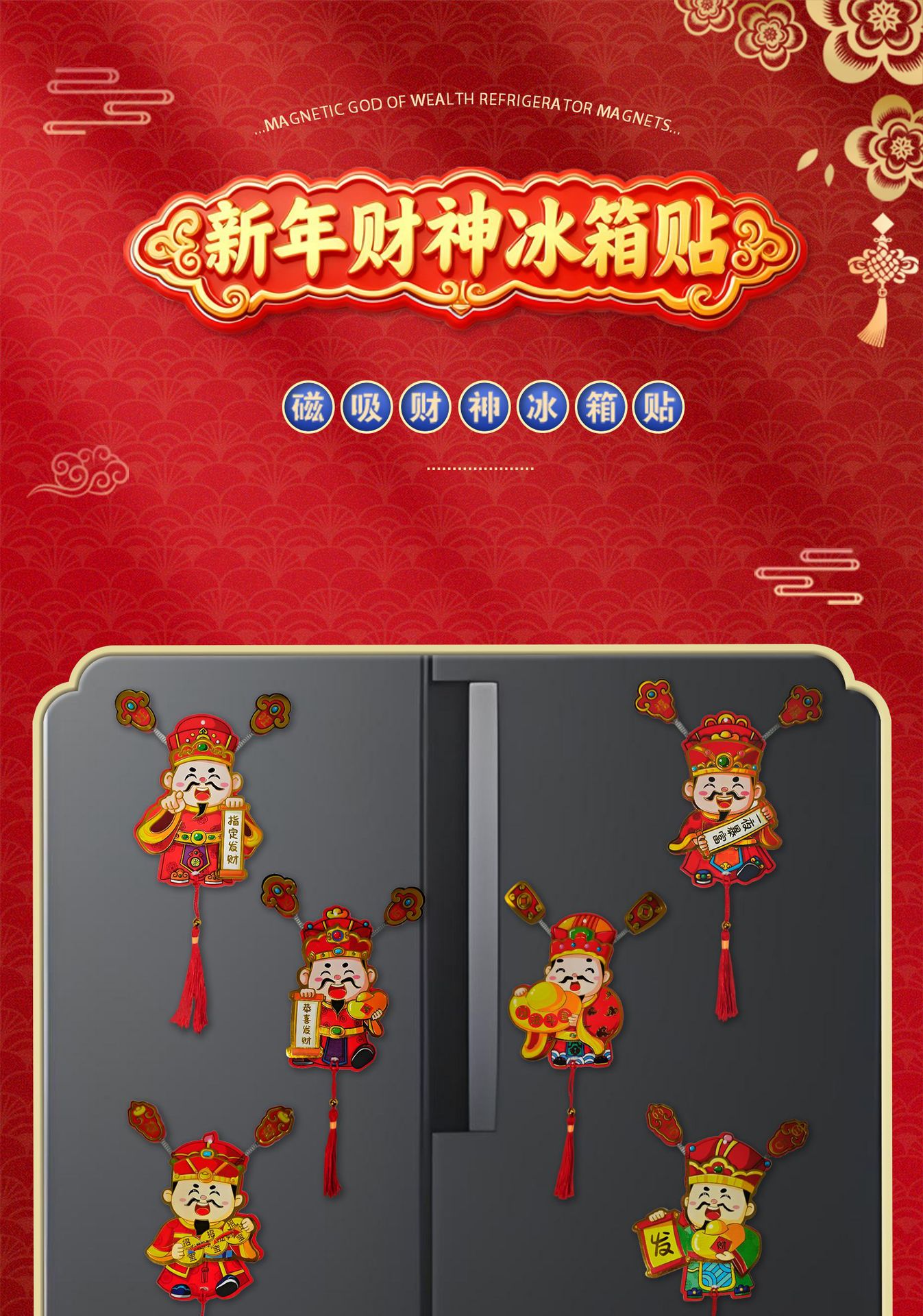 Magnetic god of wealth refrigerator sticker fun Spring Festival festive shake ear New Year creative cute decoration China-Chic