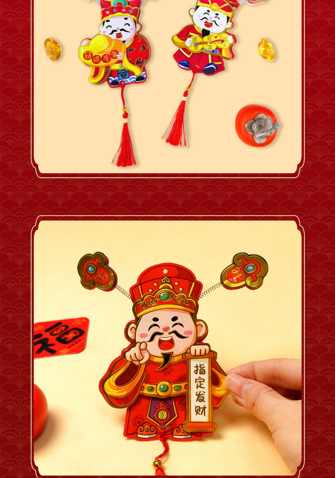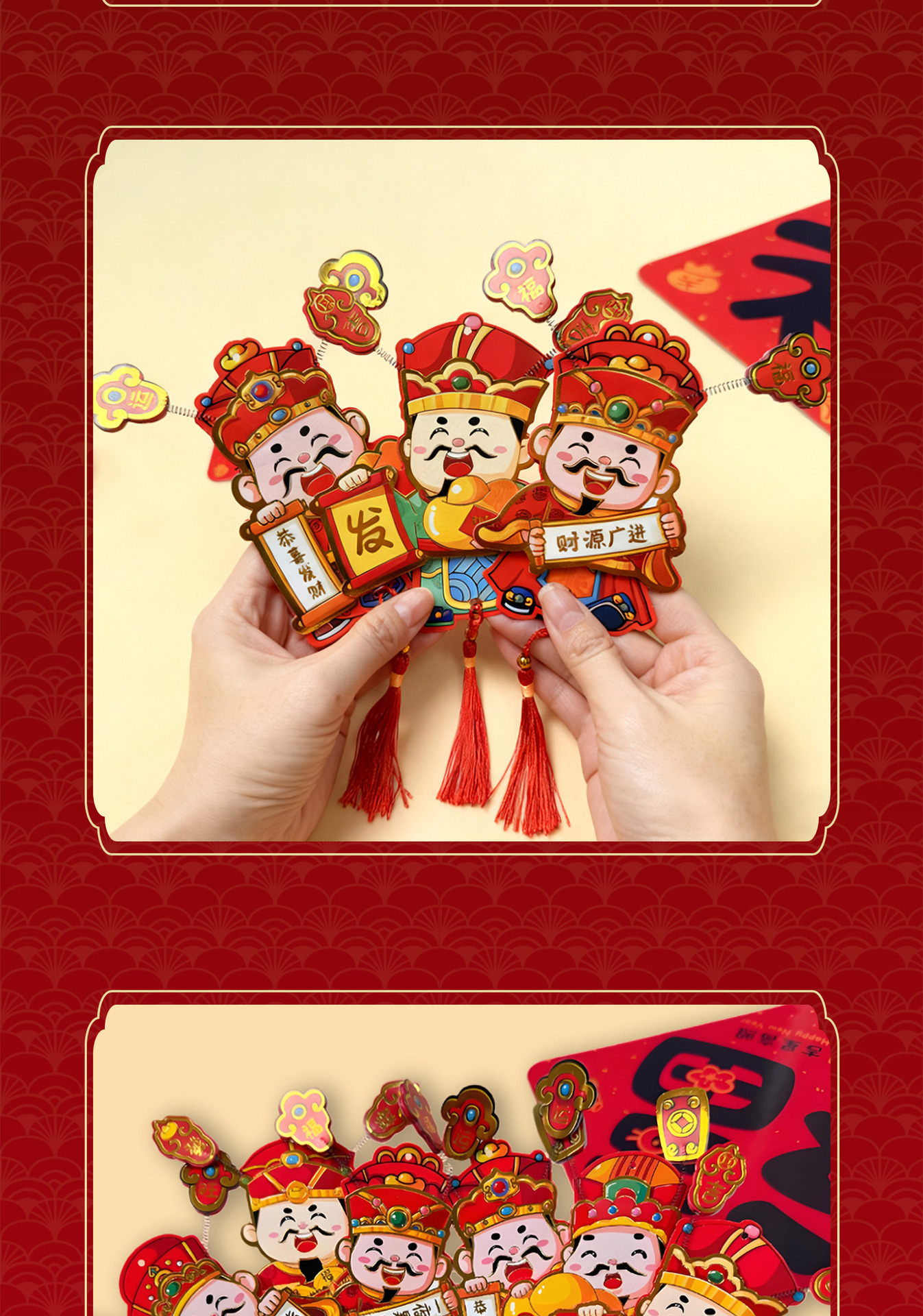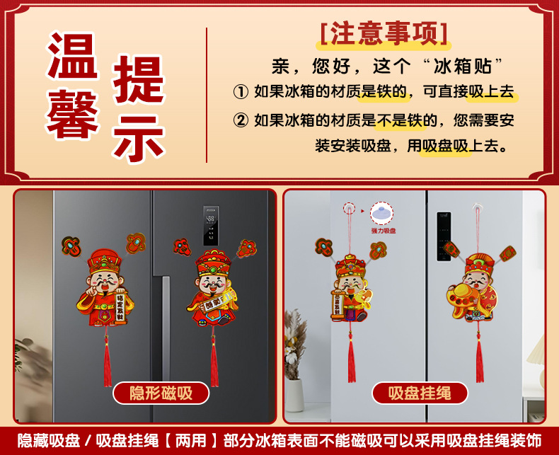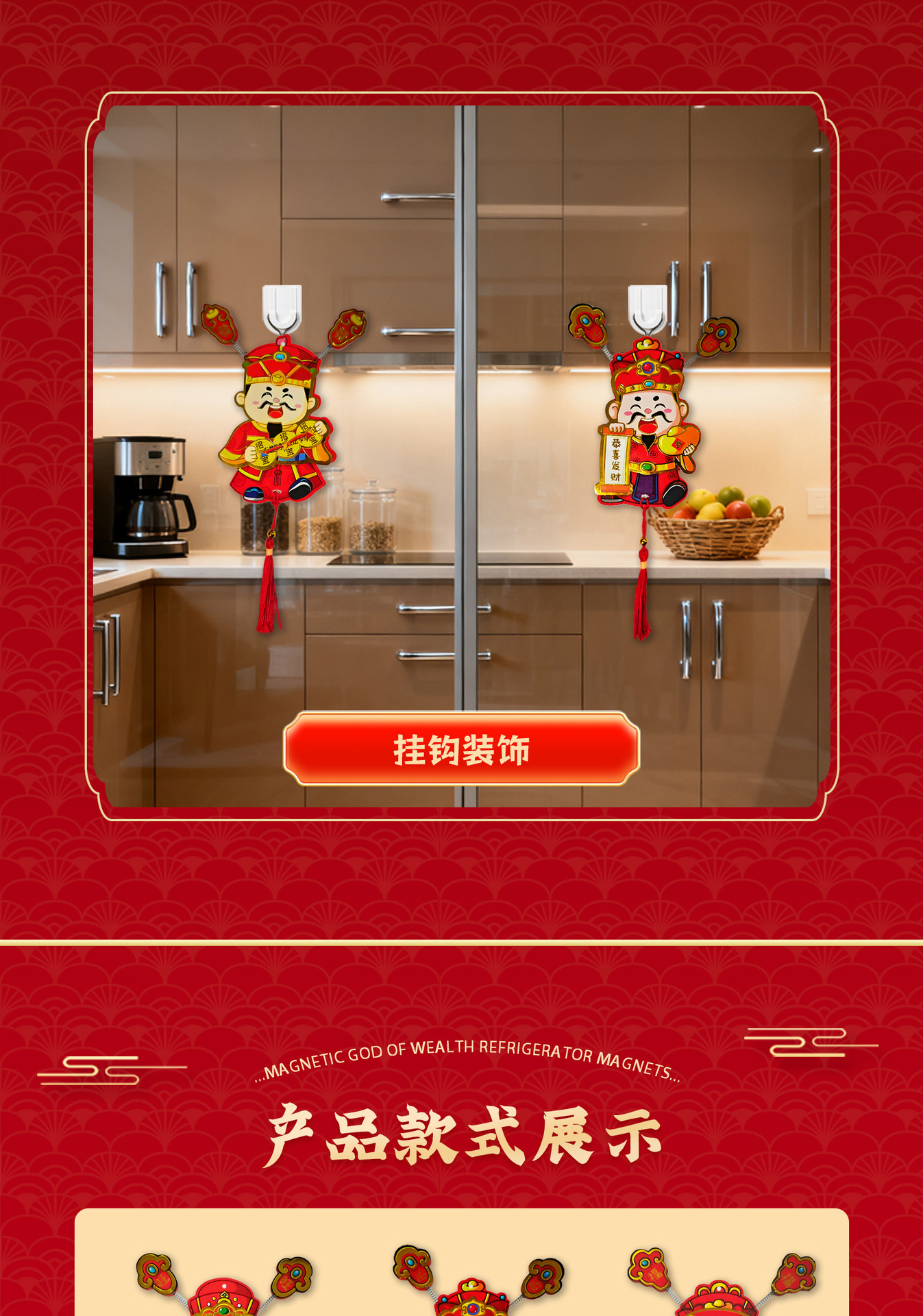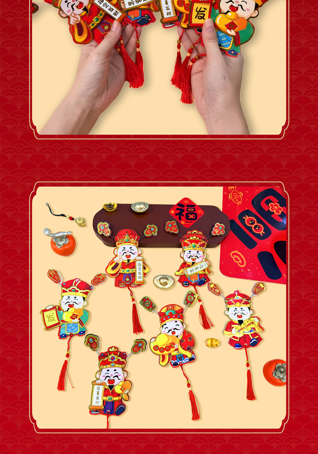Magnetic god of wealth refrigerator sticker fun Spring Festival festive shake ear New Year creative cute decoration China-Chic